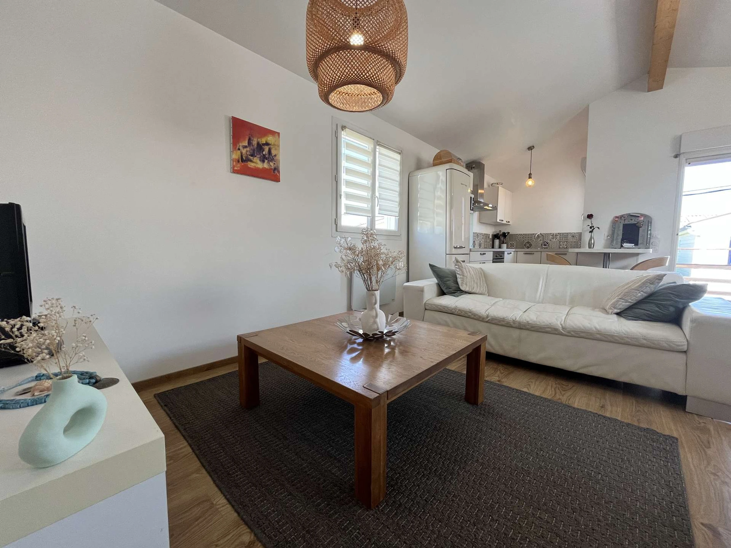 Le chalet idéalement situé à Gruissan, à seulement quelques mètres de la célèbre plage des Chalets. Parfait pour des vacances en famille ou entre amis, ce cocon lumineux peut accueillir confortablement jusqu’à 4 personnes. Il dispose de deux chambres chacune équipée d'un lit en 160, d’une salle d'eau, et d’un espace de vie agréable avec cuisine toute équipée, baigné de lumière naturelle. rangements optimisés, et décoration soignée.