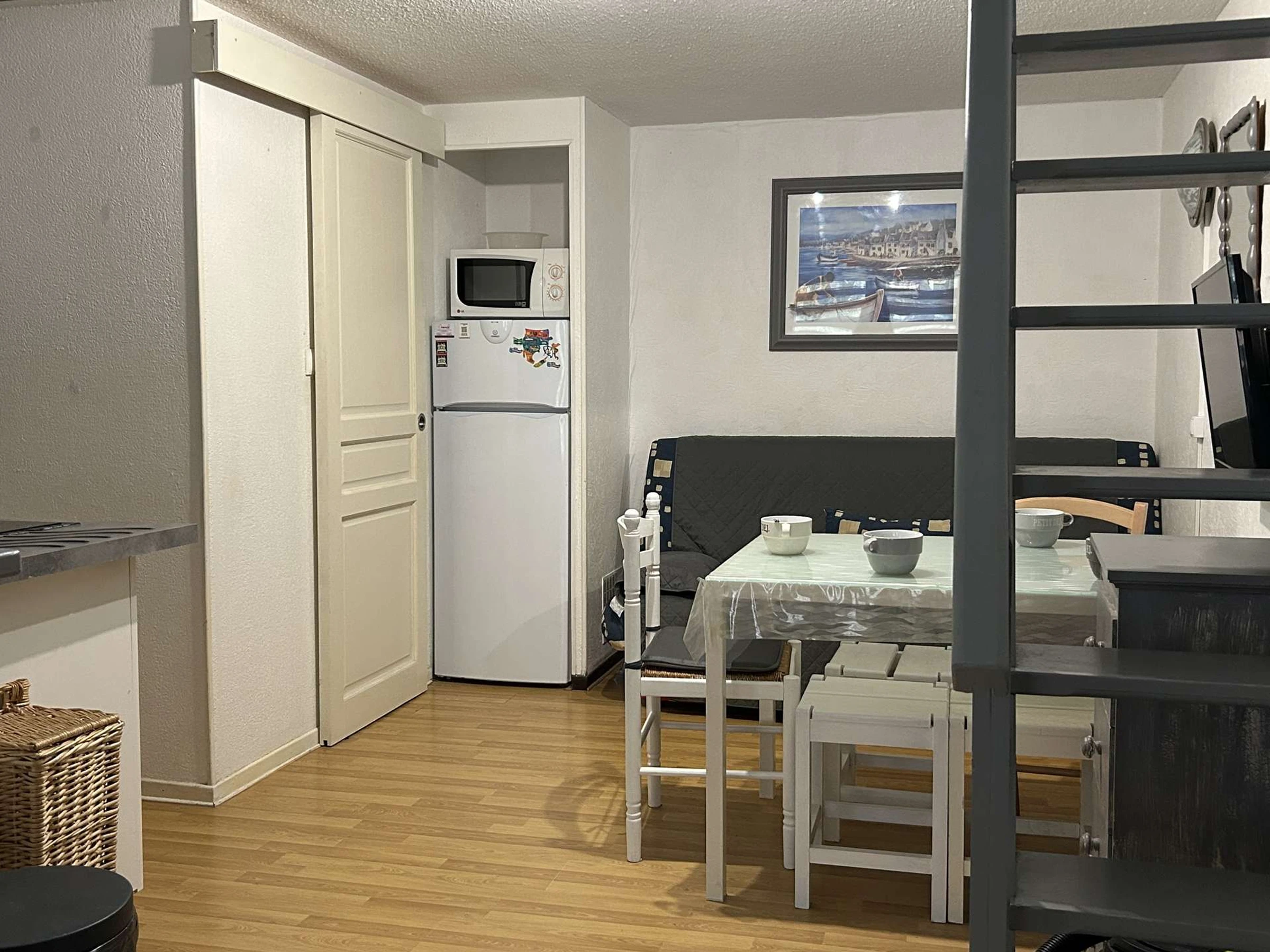 Cette location de maison de vacances bénéficiant d’une grande et agréable terrasse clôturée à l’abri des regards se compose d'une pièce de vie climatisée avec kitchenette et coin repas et d'un séjour avec un canapé convertible. Vous profiterez également d'une coquette chambre équipée d'un lit double en 140. A l'étage une mezzanine meublée d’un lit deux places (literie en 140) avec fenêtre. Salle d’eau avec wc.