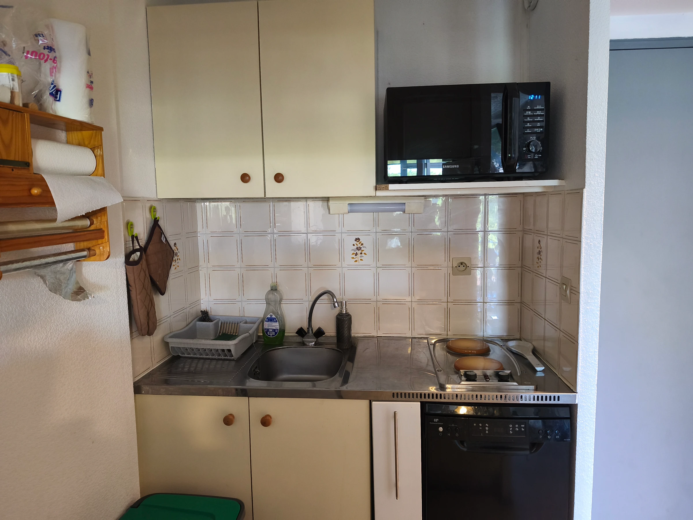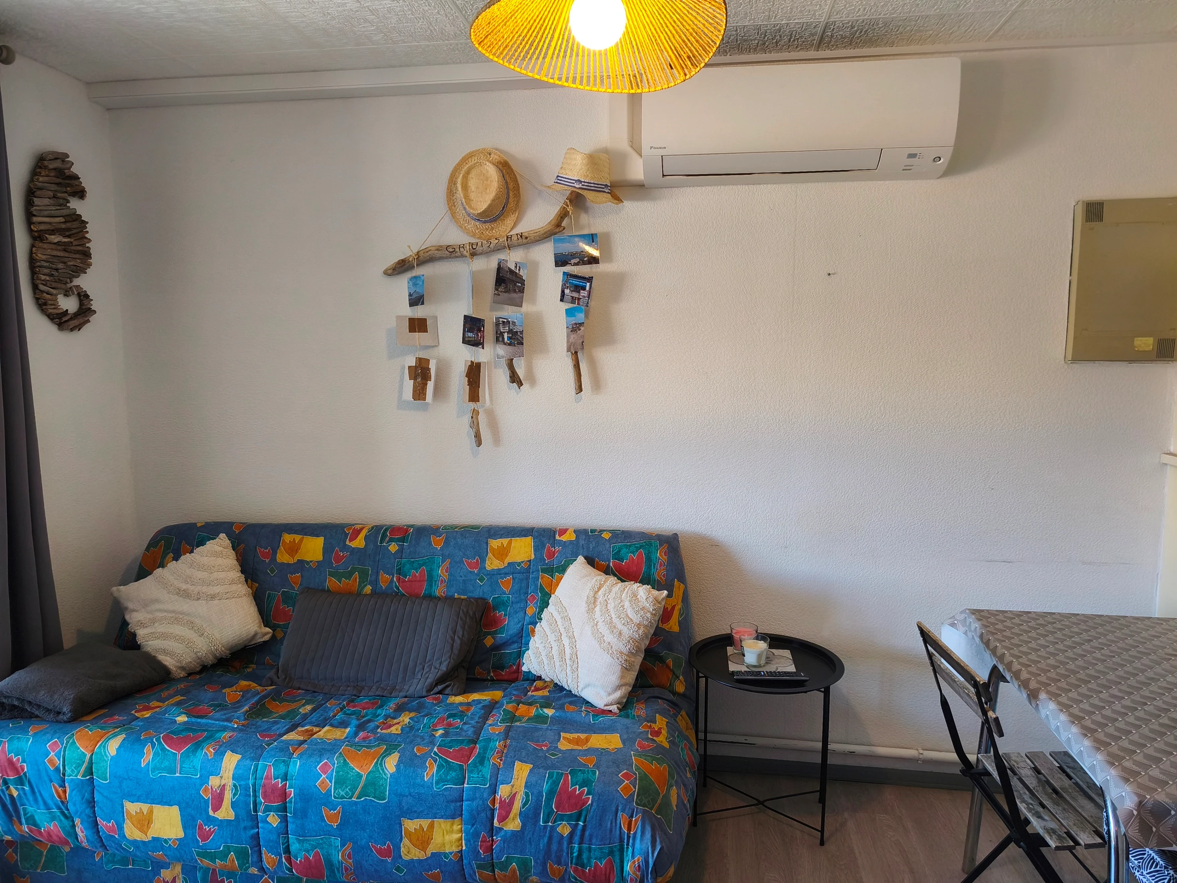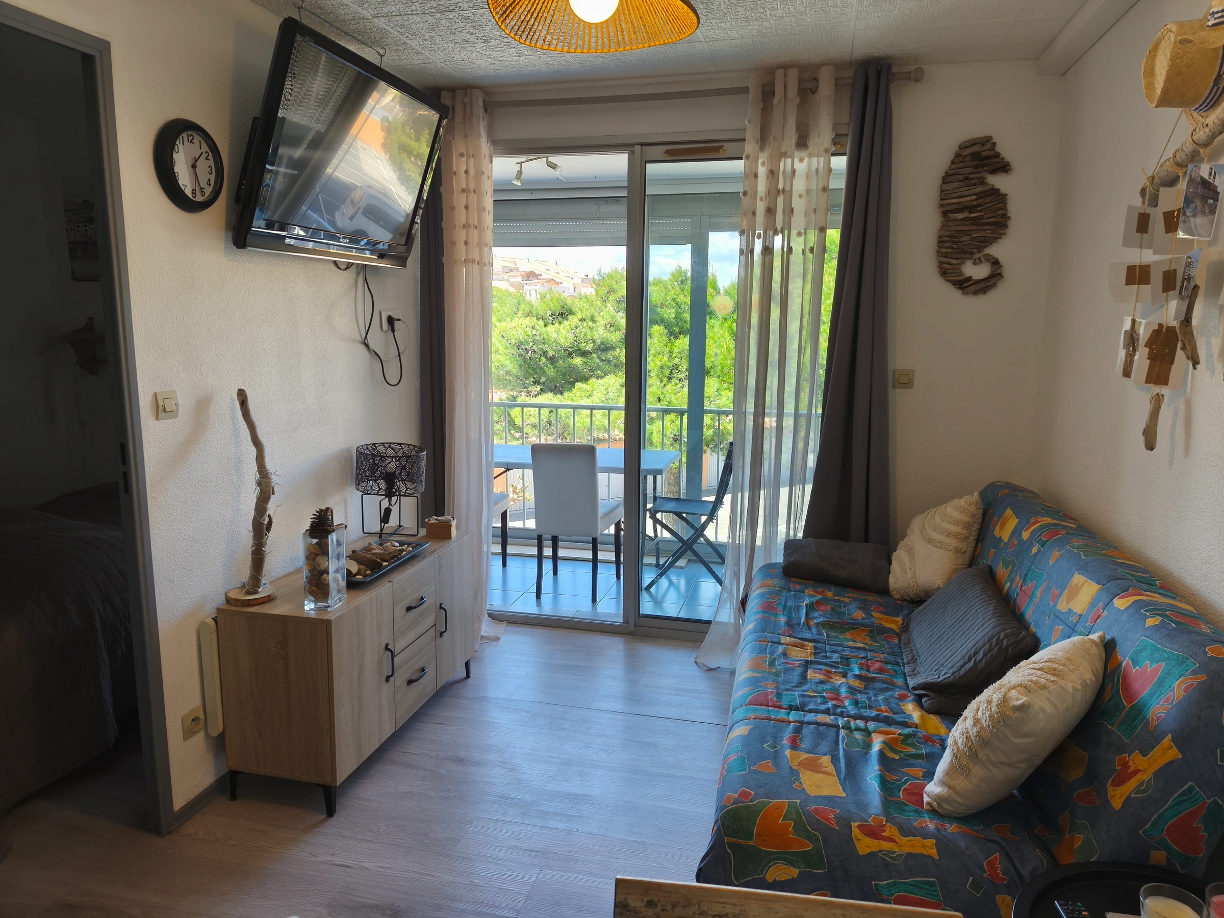 Composé d'un séjour (convertible de 2 pers) et d'un coin cuisine équipé, 1 chambre( ouverte sur loggia (lit 2 pers).