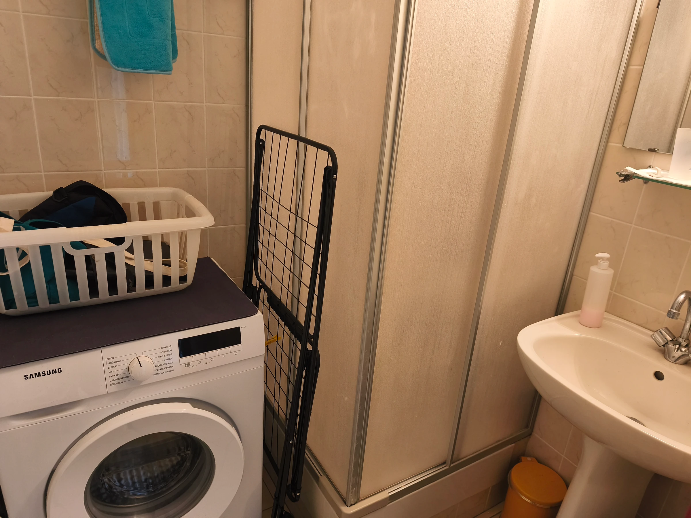 Salle d'eau (douche - lave linge) WC. Loggia vitrée (salon de jardin).