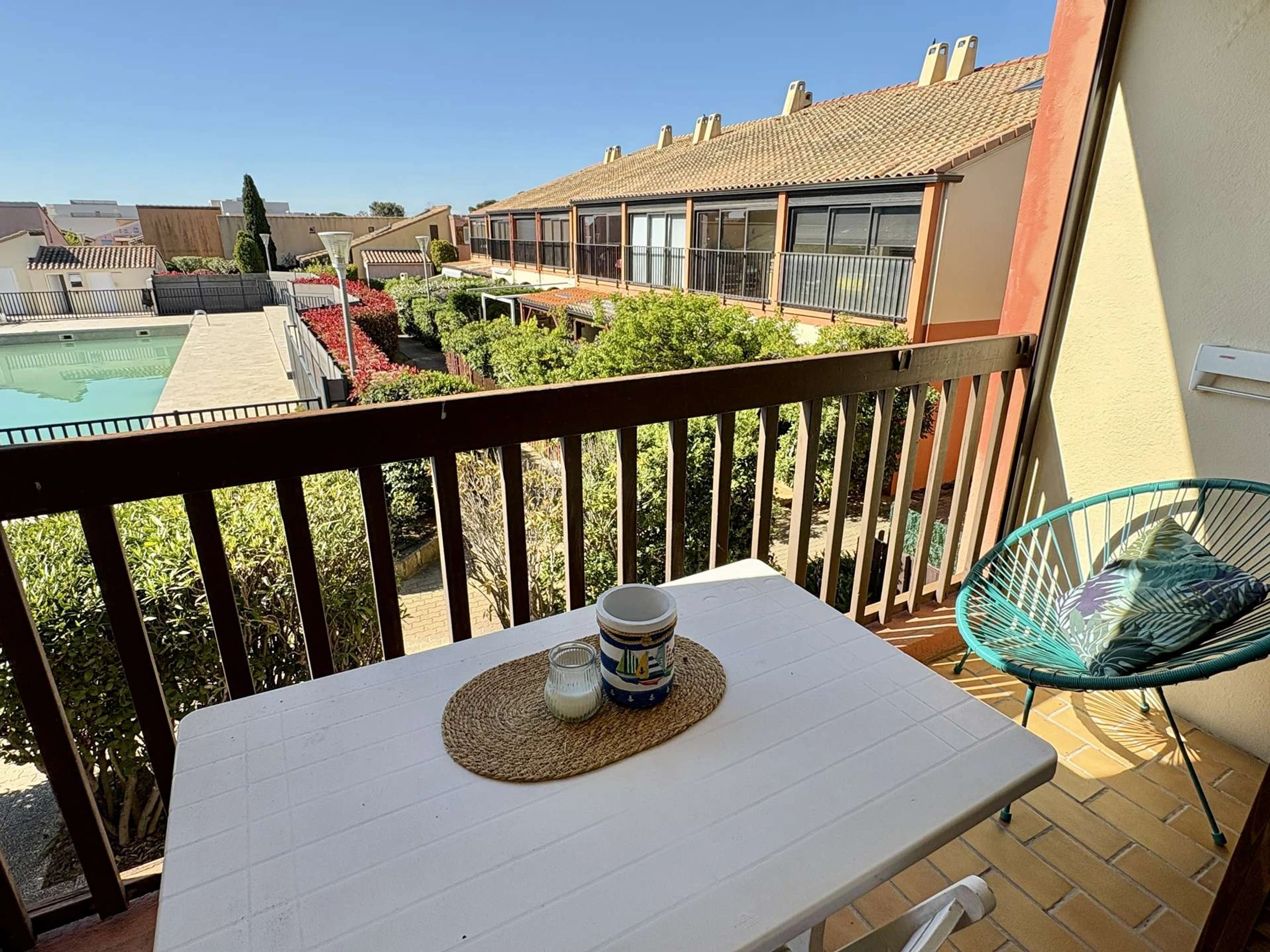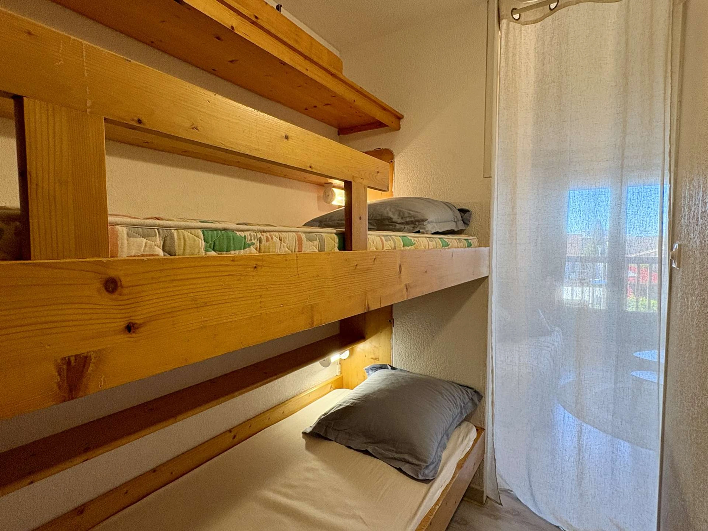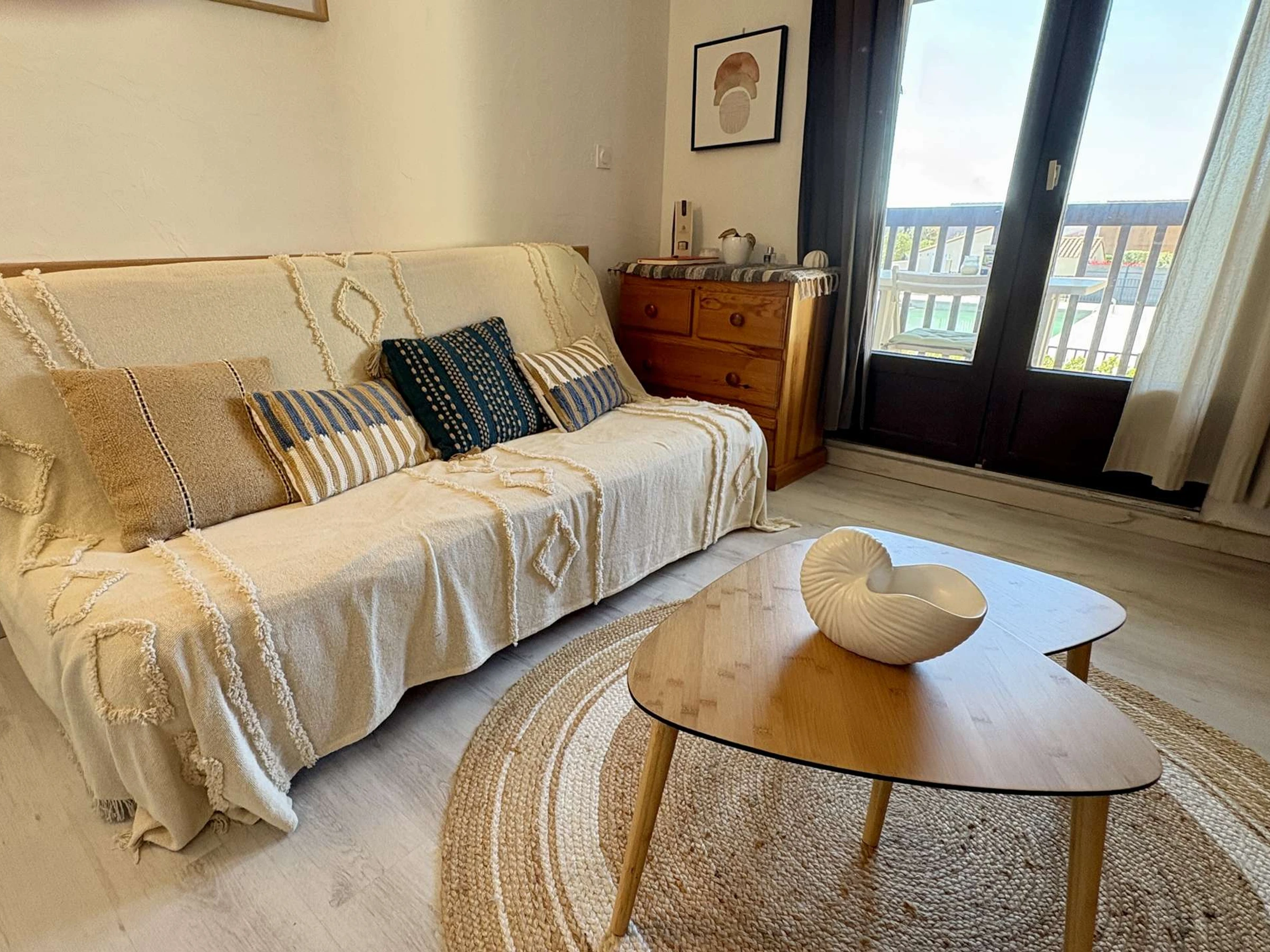 Ce coquet appartement de vacance climatisée et idéal pour 2 adultes et 2 enfants, est composé d'un séjour avec canapé clic clac deux places, télévision, coin cuisine équipé, salle d'eau avec wc et une cabine équipée de deux lits superposés. Petite terrasse avec mobilier de jardin.