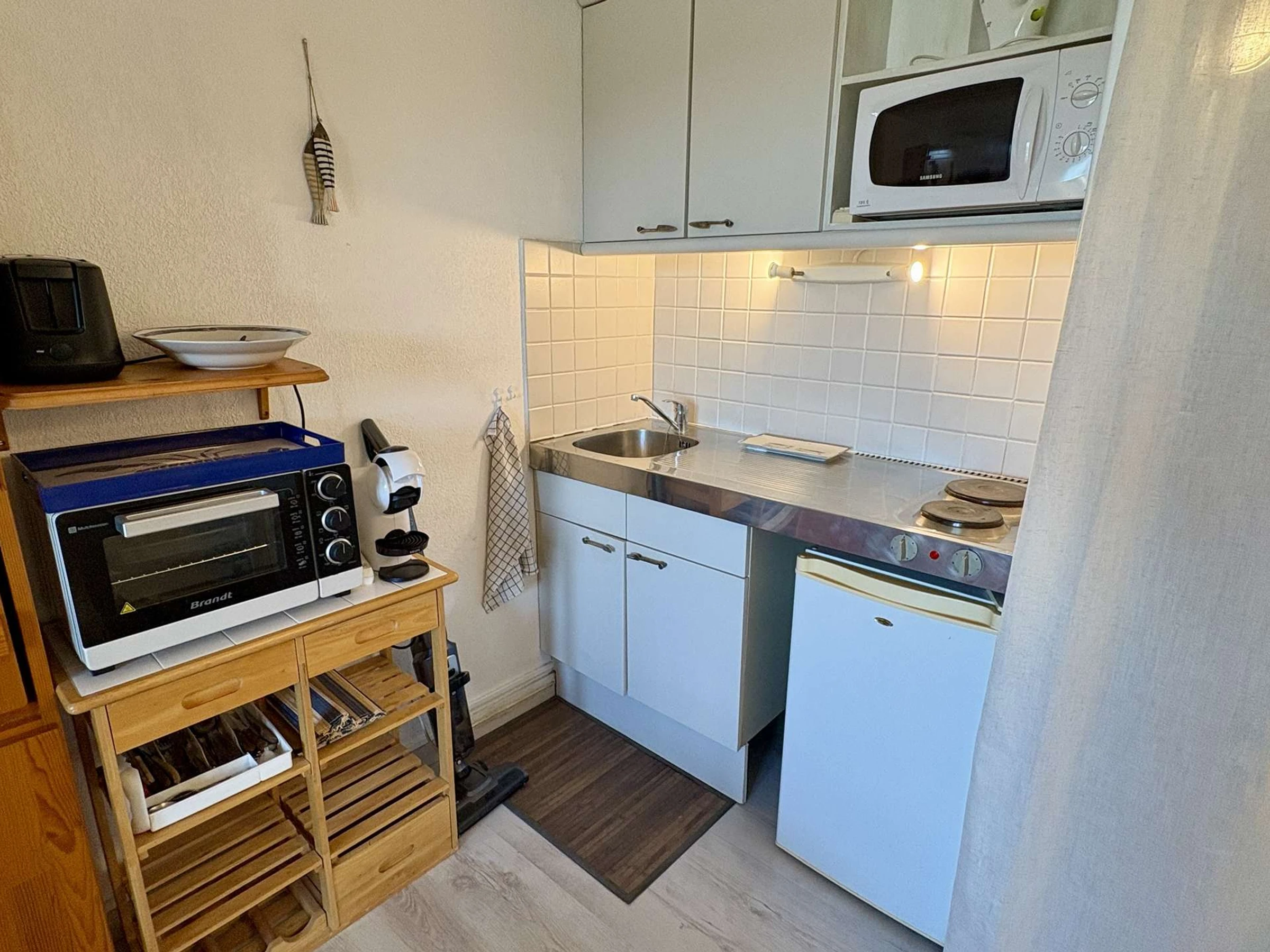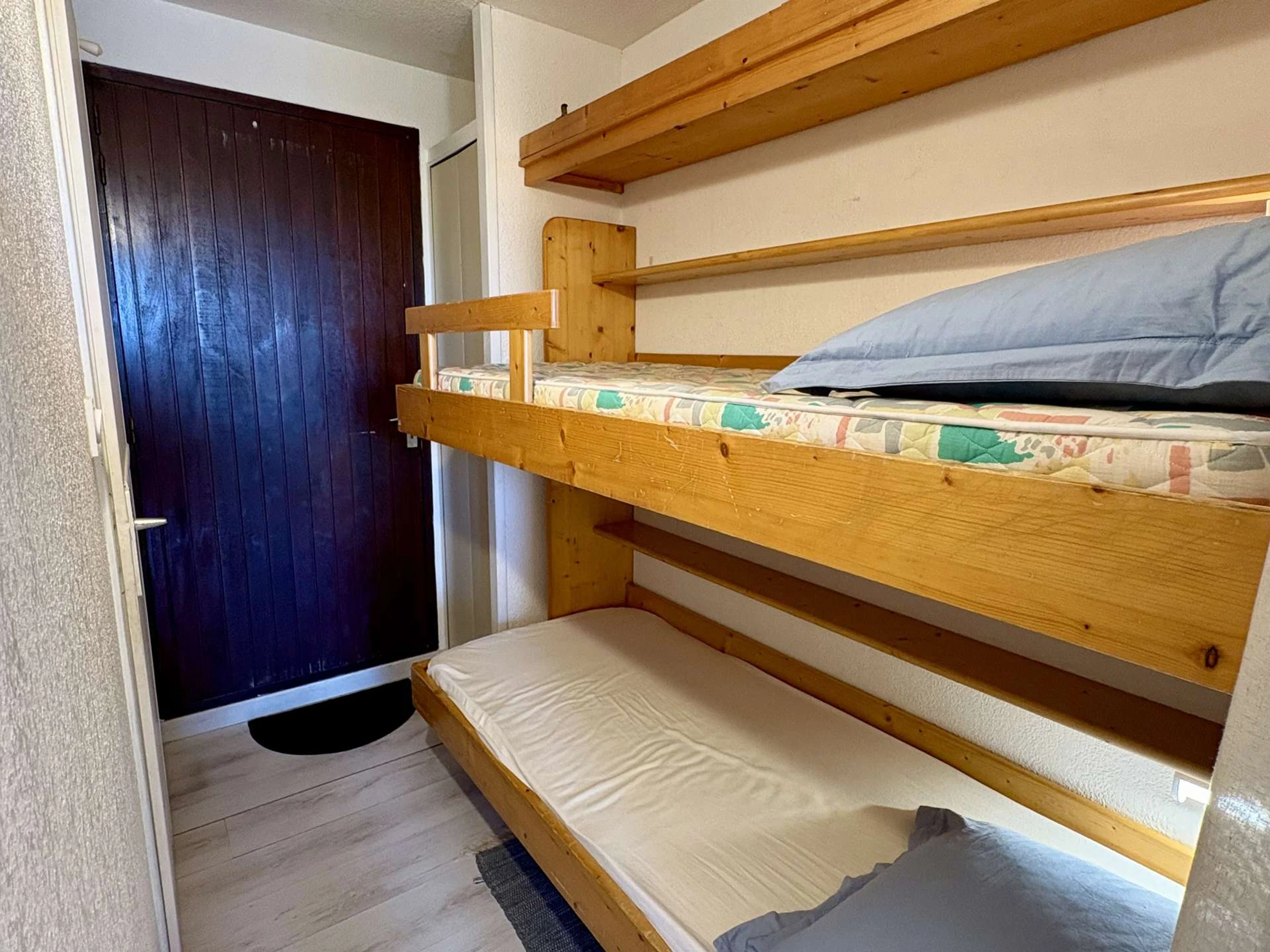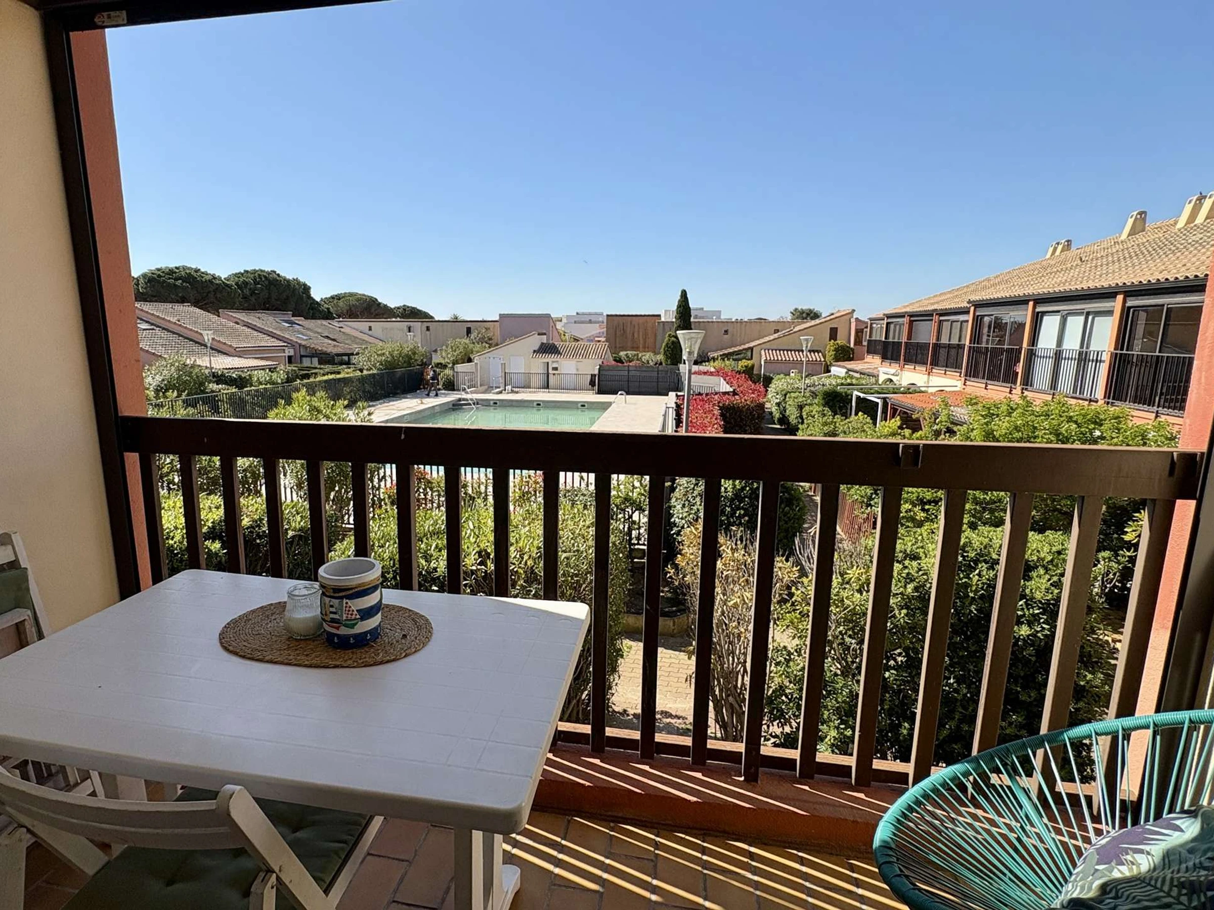 Ce coquet appartement de vacance climatisée et idéal pour 2 adultes et 2 enfants, est composé d'un séjour avec canapé clic clac deux places, télévision, coin cuisine équipé, salle d'eau avec wc et une cabine équipée de deux lits superposés. Petite terrasse avec mobilier de jardin.