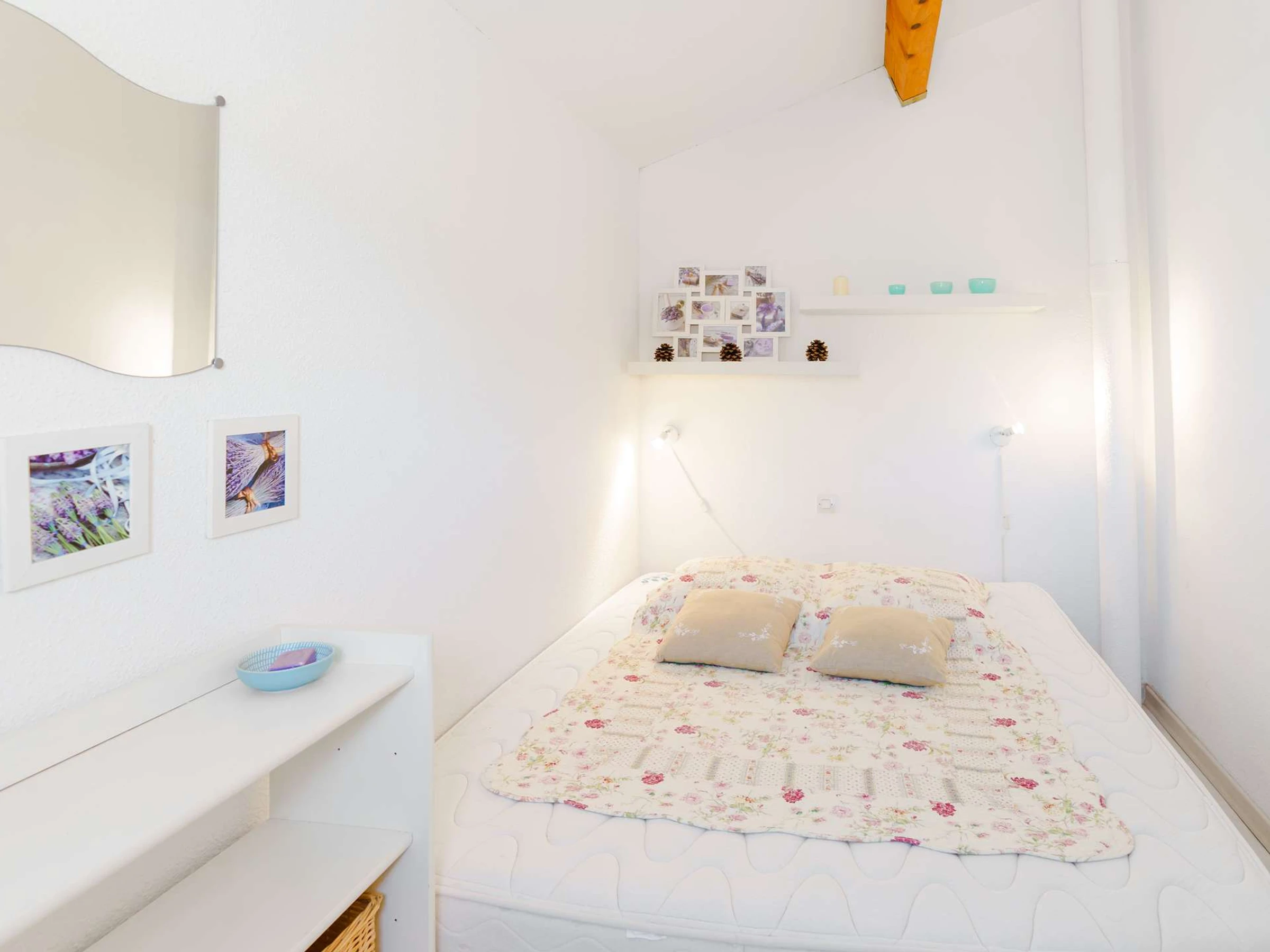 À l'étage : une chambre avec un lit double (160x200), une chambre mansardée avec un lit double (160x200).