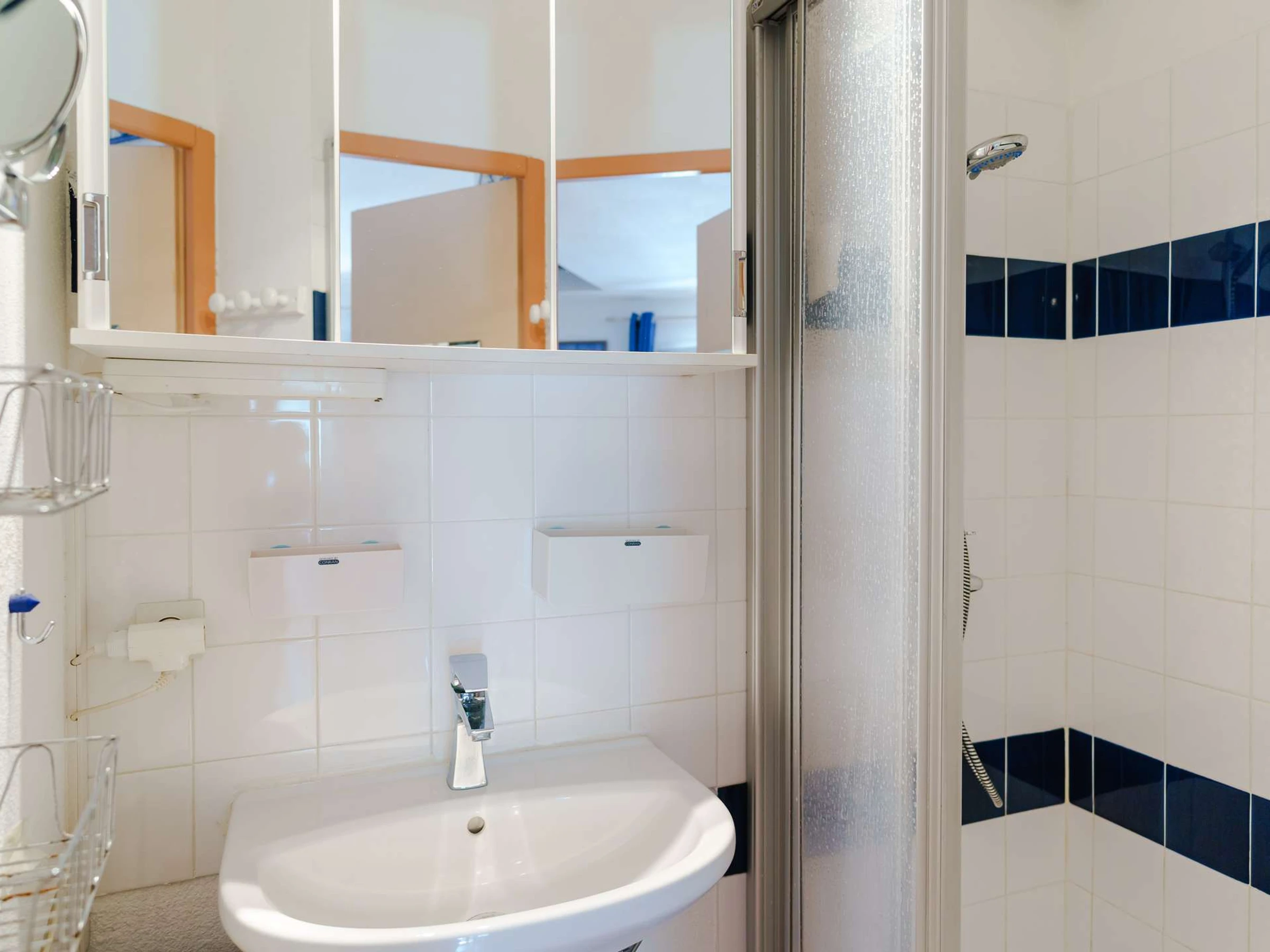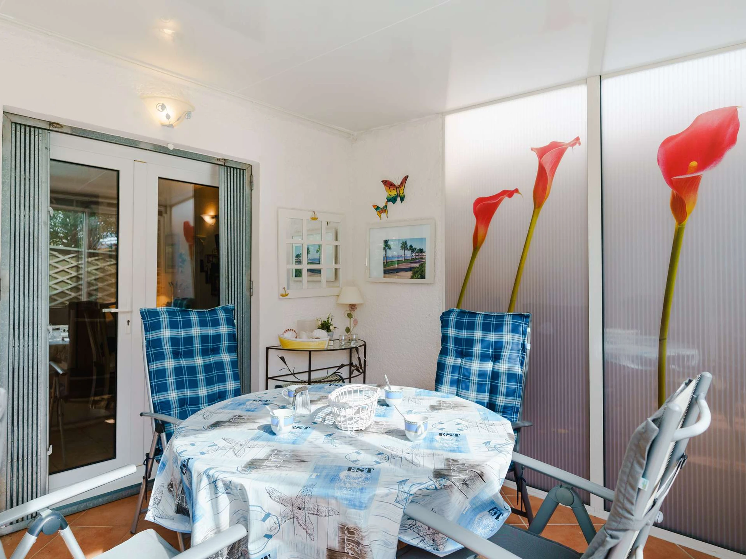 RDC: Entrée avec TV (chaines allemandes uniquement), coin cuisine équipée (plaque de cuisson électrique, cafetière, réfrigérateur sans freezer, micro-ondes, mini-four, lave-vaisselle), une chambre avec un lit simple 90x190, une salle d'eau et WC séparés. Véranda et terrasse.