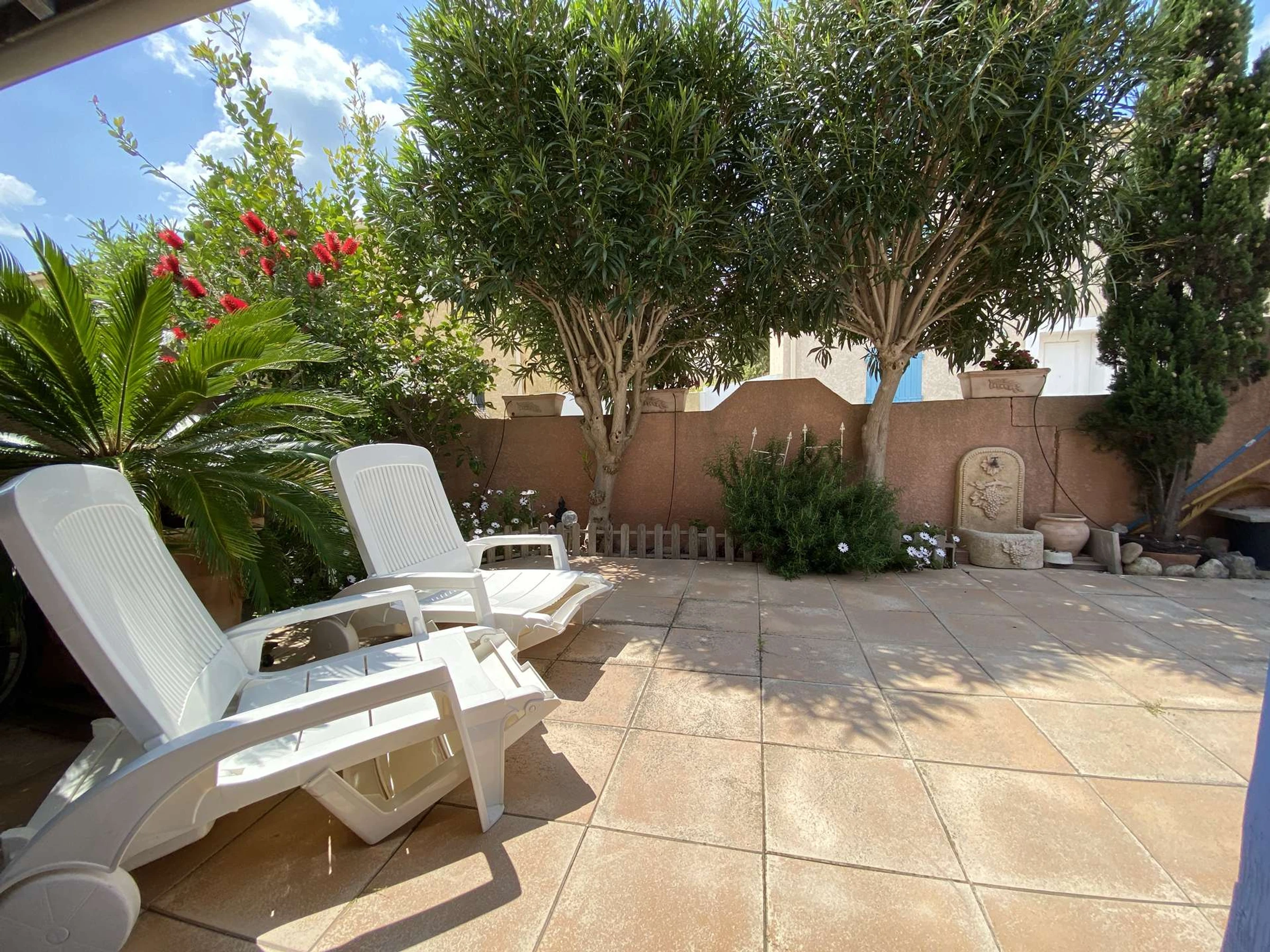 Terrasse clôturée avec mobilier de jardin et plancha . PLace de parking sur la terrasse