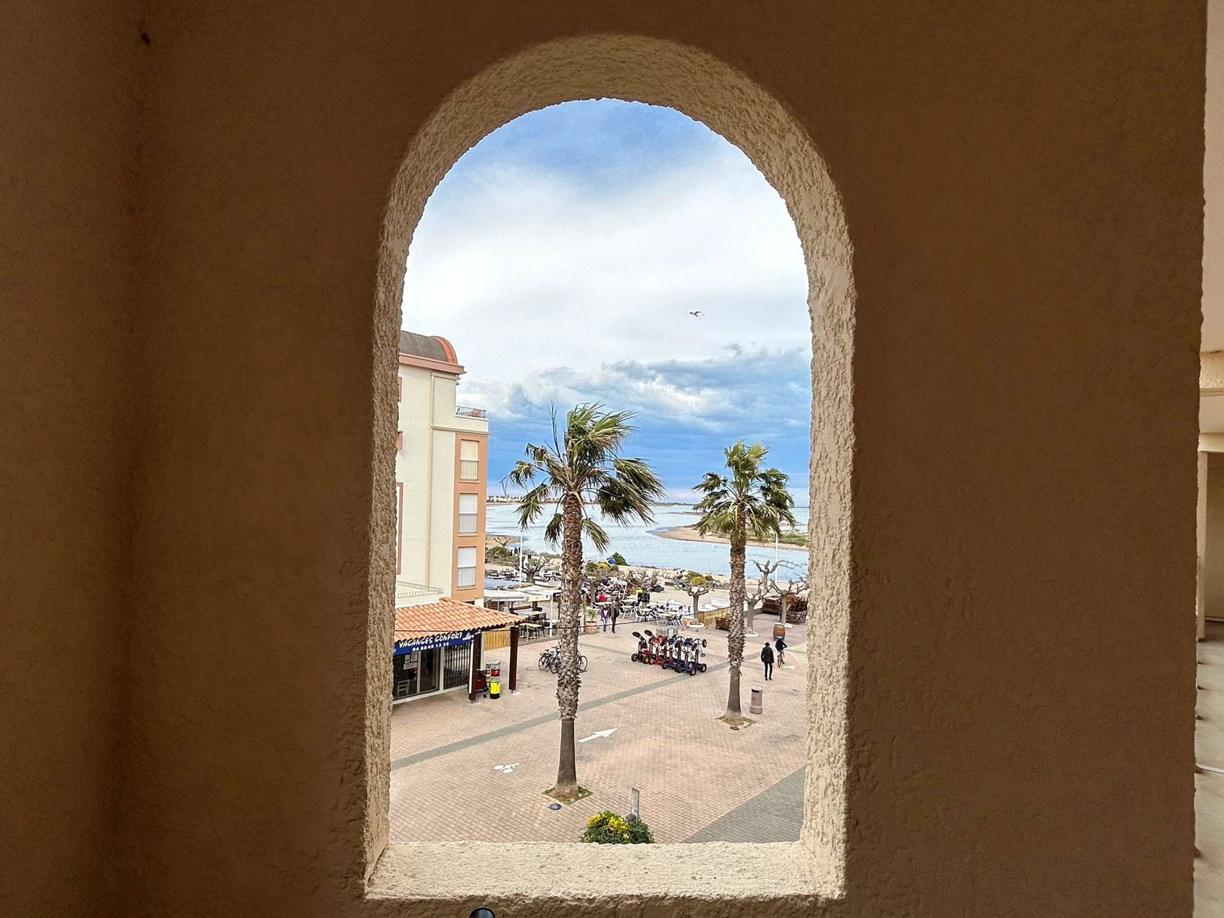 Vous profiterez également d'une jolie terrasse équipée de son mobilier de jardin avec une jolie vue sur les palmiers, la piscine de la résidence et la plage du grazel.