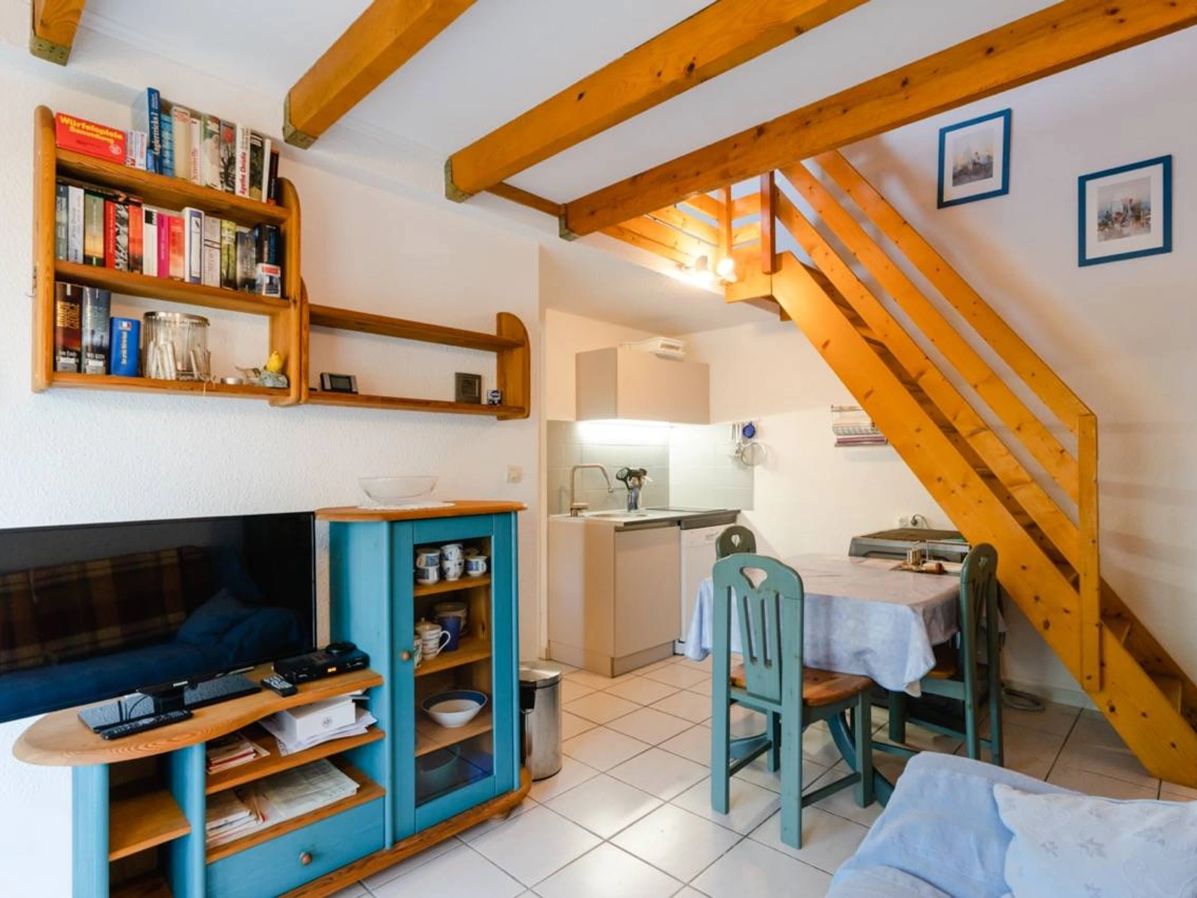 Le pavillon dispose au rez-de-chaussée d'un espace salon/kitchenette avec canapé, TV (chaines françaises et allemandes), buffet, table pour 4, lave-linge, lave-vaisselle, plaque de cuisson 2 feux vitro-céramique, mini-four, bouilloire, réfrigérateur top avec freezer, cafetière classique. Accès Wifi inclus (Fibre).