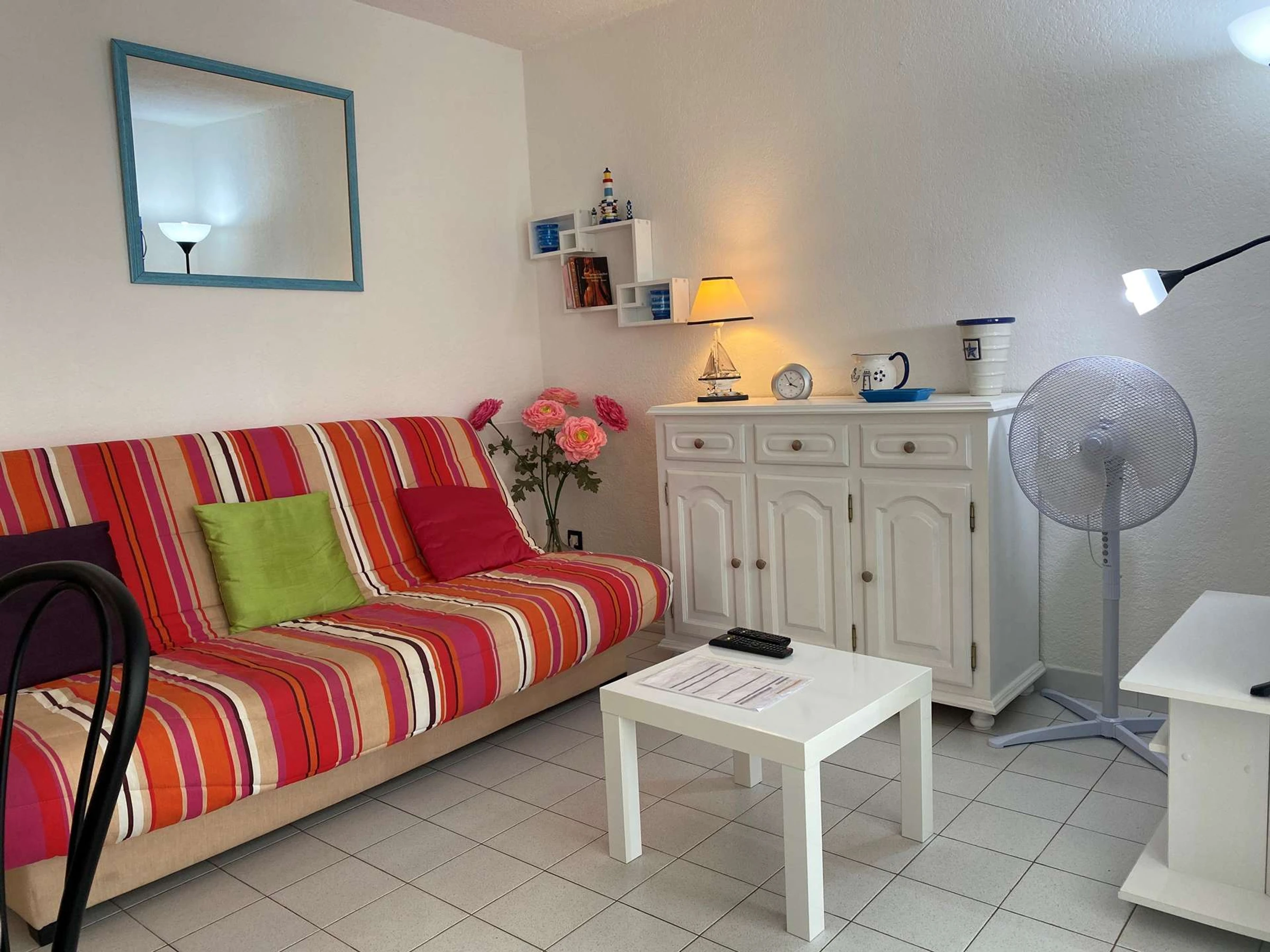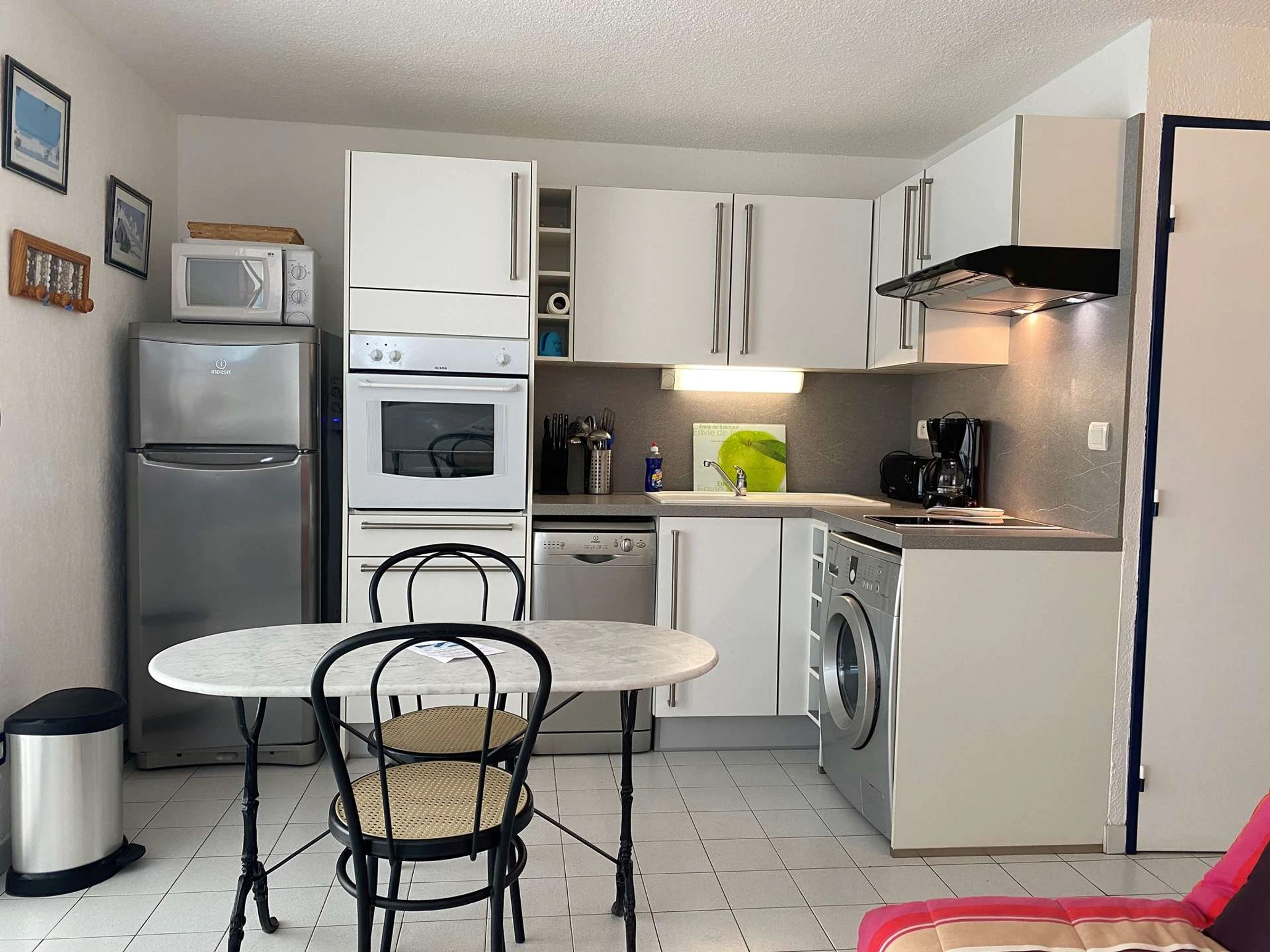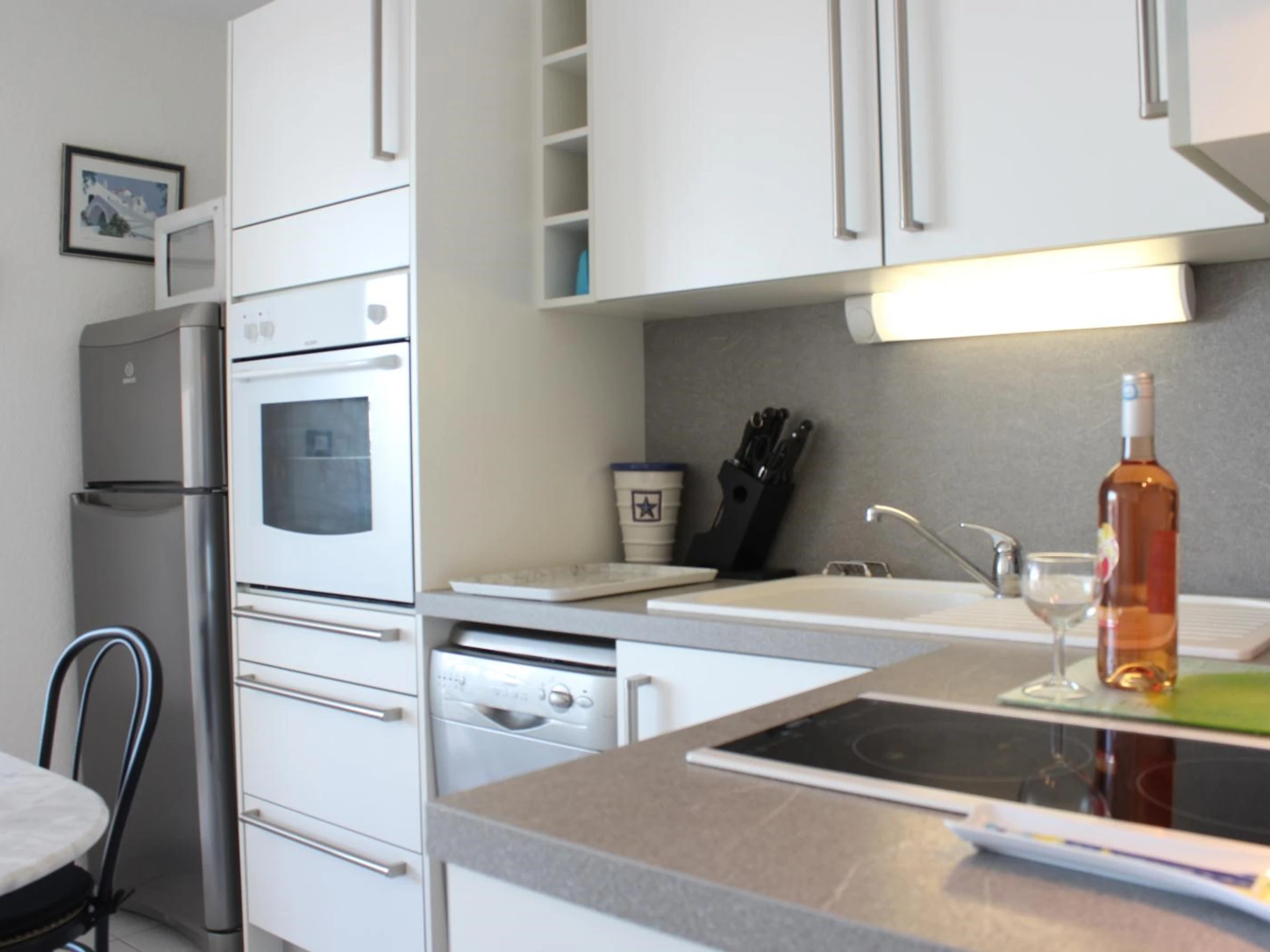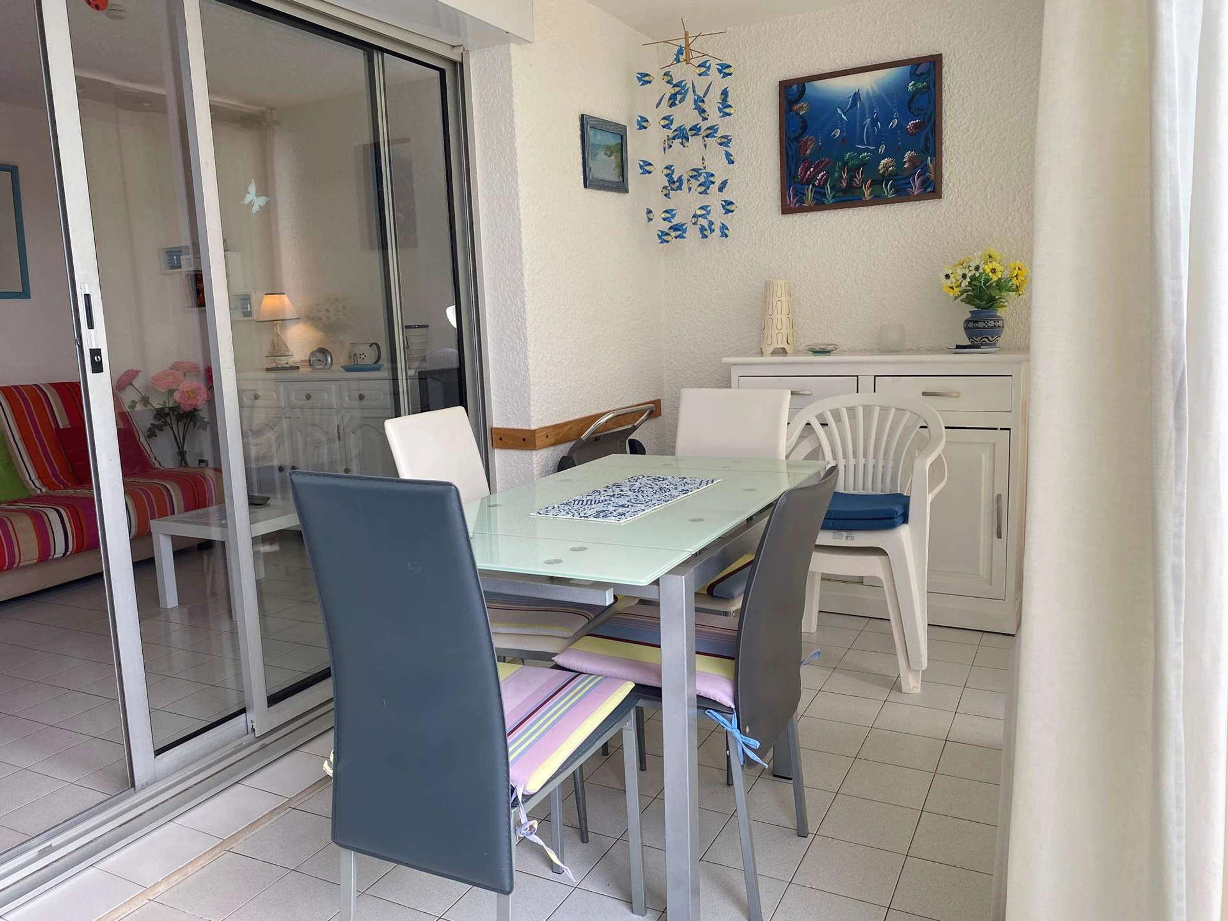 Cet appartement les pieds dans l'eau , confortablement aménagé, présente un séjour avec télévision et clic-clac, une cuisine bien équipée (lave-vaiselle, lave-linge, frigo-congélateur, micro-ondes), une chambre avec lit double, une salle d'eau avec douche et un WC séparé. Véranda avec salon de jardin et chaises longues. Terrasse clôturée.