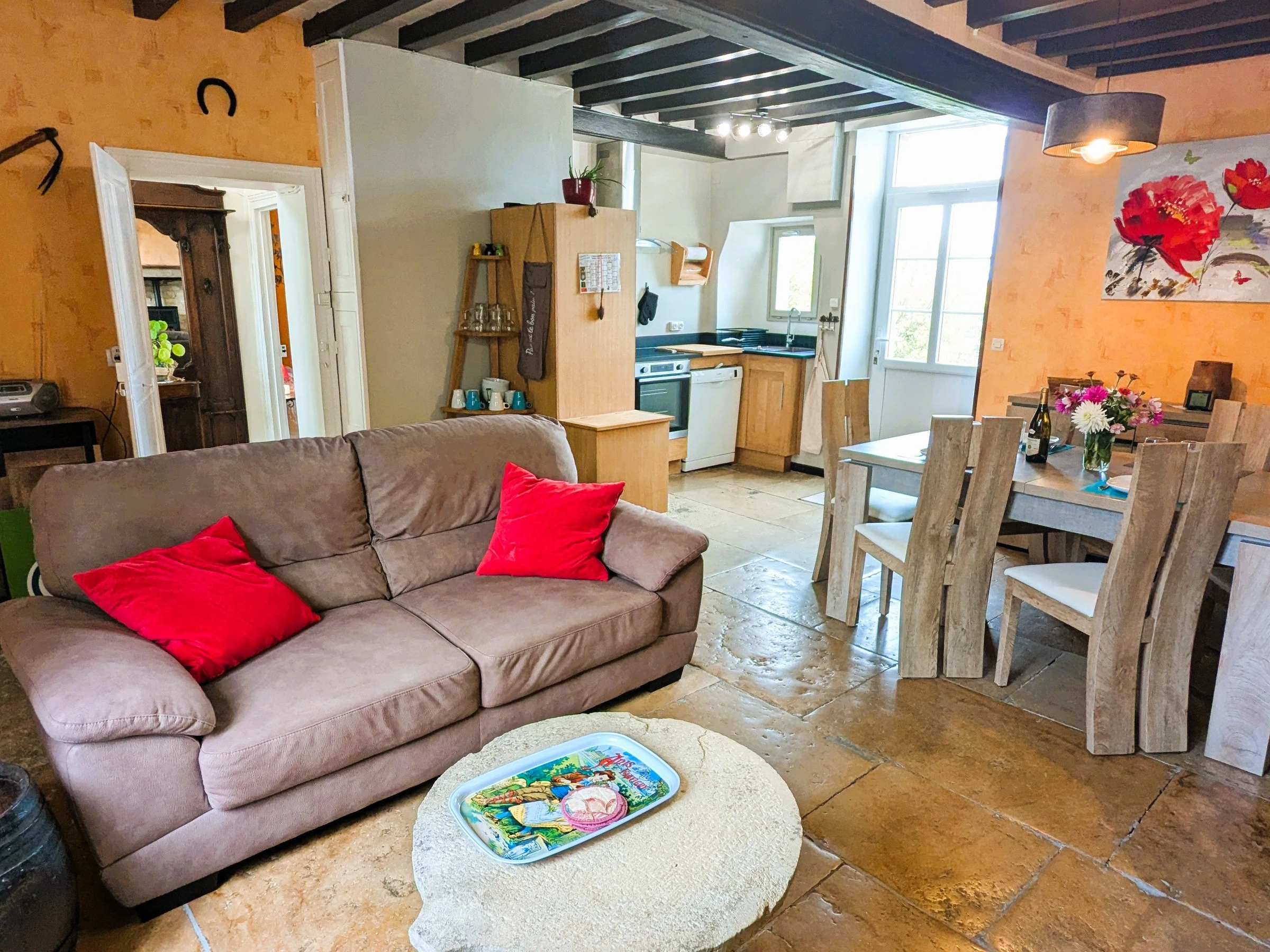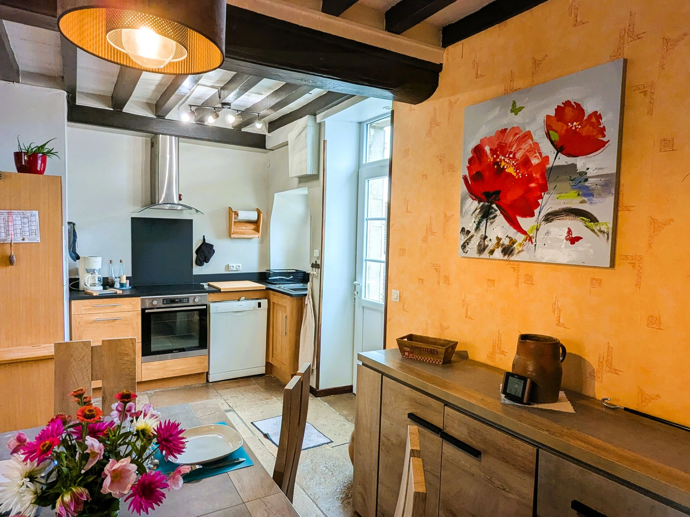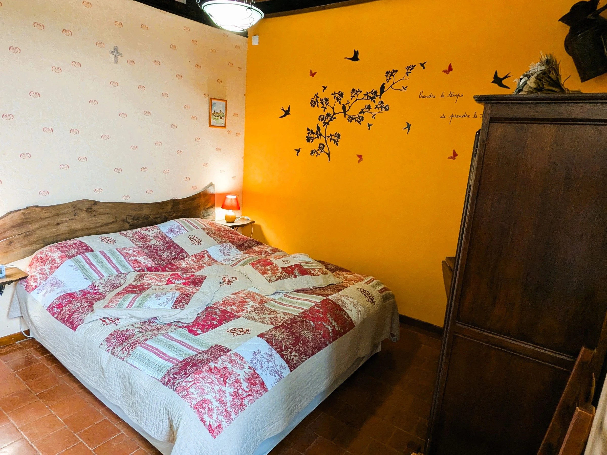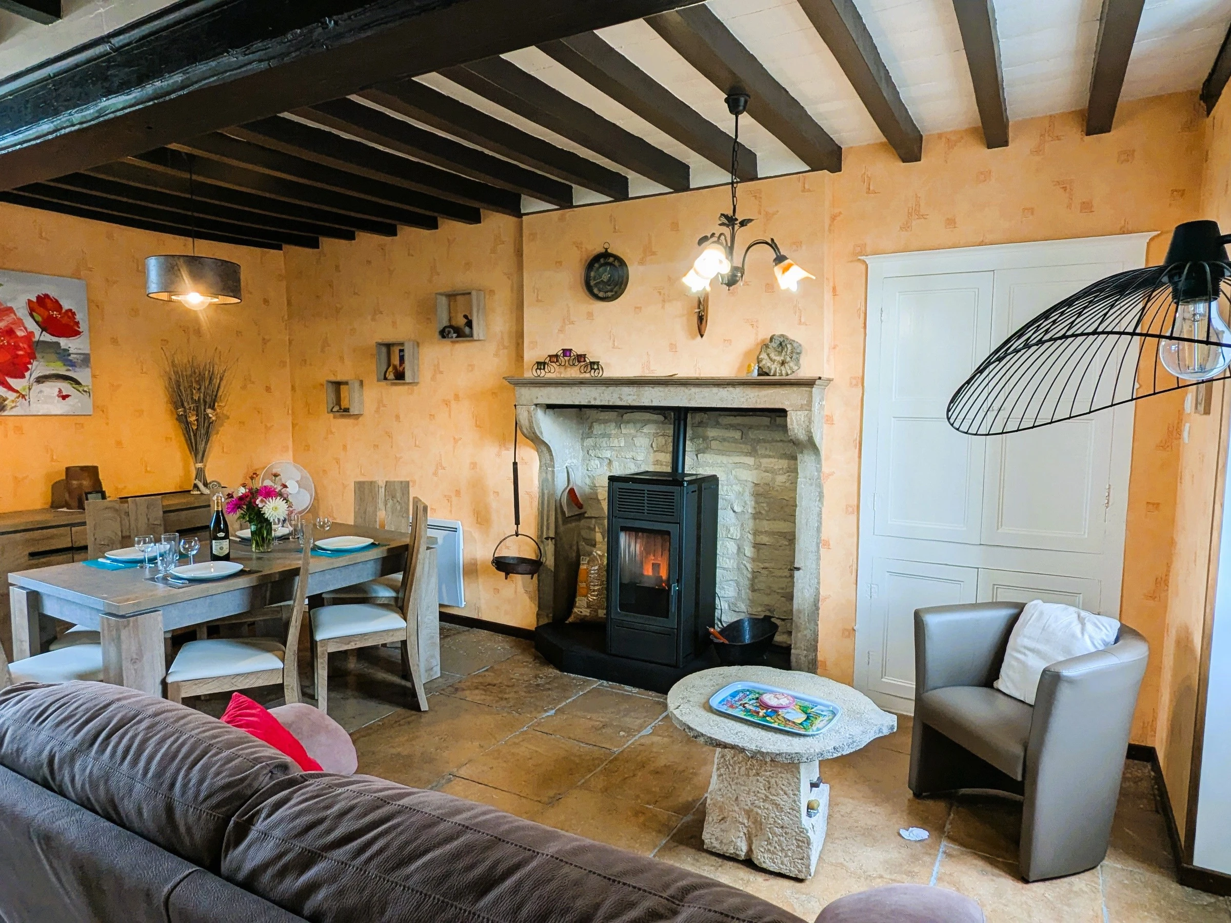 Le gîte rénové a su conserver ses plafonds à la française, ses dalles en pierre et ses tomettes. Le rez de chaussée vous accueille avec son lieu de vie muni d'un poêle à granulés et d'une TV grand écran, 1 chambre avec 1 lit 160 et salle de bains avec WC.