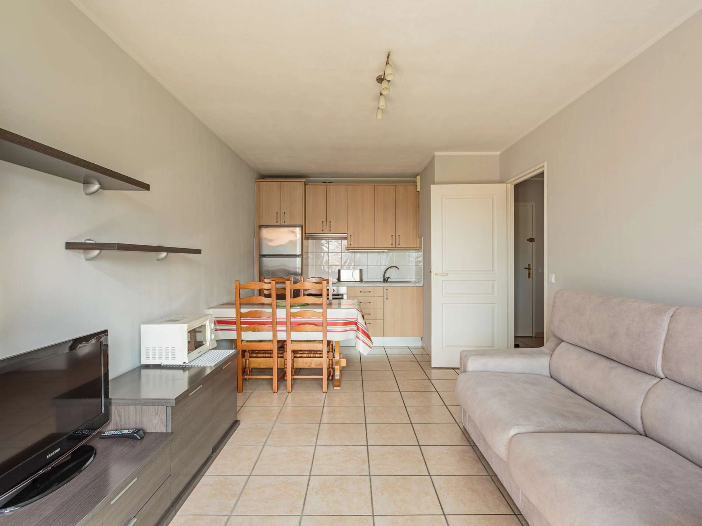 Ce bien se compose d'une pièce à vivre avec un balcon aménagé, un canapé convertible 2 personnes , une salle à manger et une cuisine équipée .