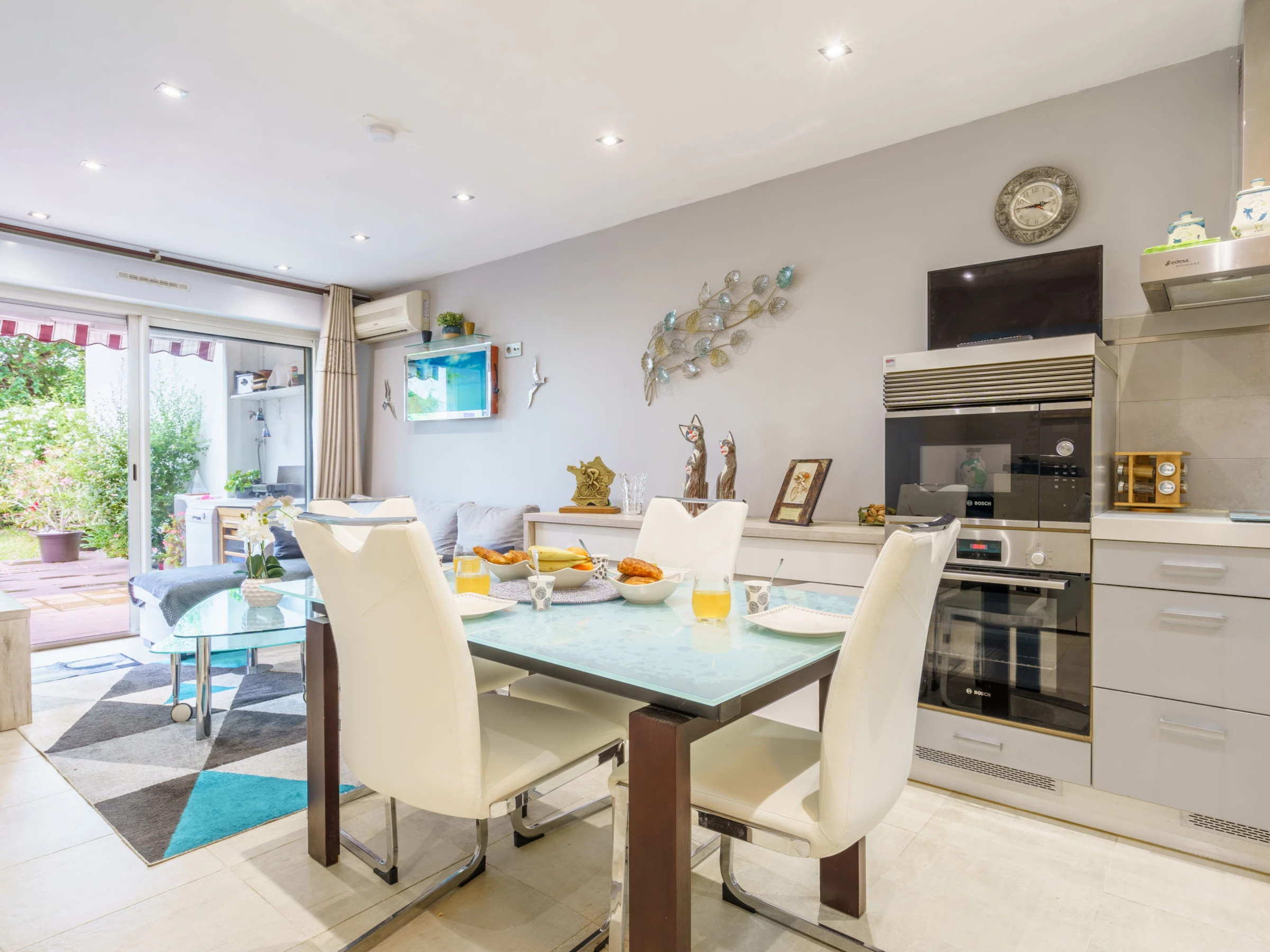 Apt 2 pièces 50 m2, au rez-de-chaussée. Aménagement fonctionnel et confortable: séjour/salle à manger avec 1 divan-lit double (140 cm, longueur 190 cm), TV (écran plat). Sortie sur le jardin. 1 chambre 16 m2 avec 1 grand-lit (160 cm, longueur 200 cm). Cuisine ouverte (four, lave-vaisselle, 2 plaques à induction, grille-pain, bouilloire électrique, cafetière électrique). Douche/WC. Chauffage électrique, air-conditionné. Petit jardin 20 m2. Meubles de terrasse, barbecue électrique. A disposition: lave-linge, fer à repasser, sèche-cheveux. Internet (Connexion WIFI, gratuit). Place de parking No 1 près de la maison. Veuillez noter: détecteur de fumée. [hidden]