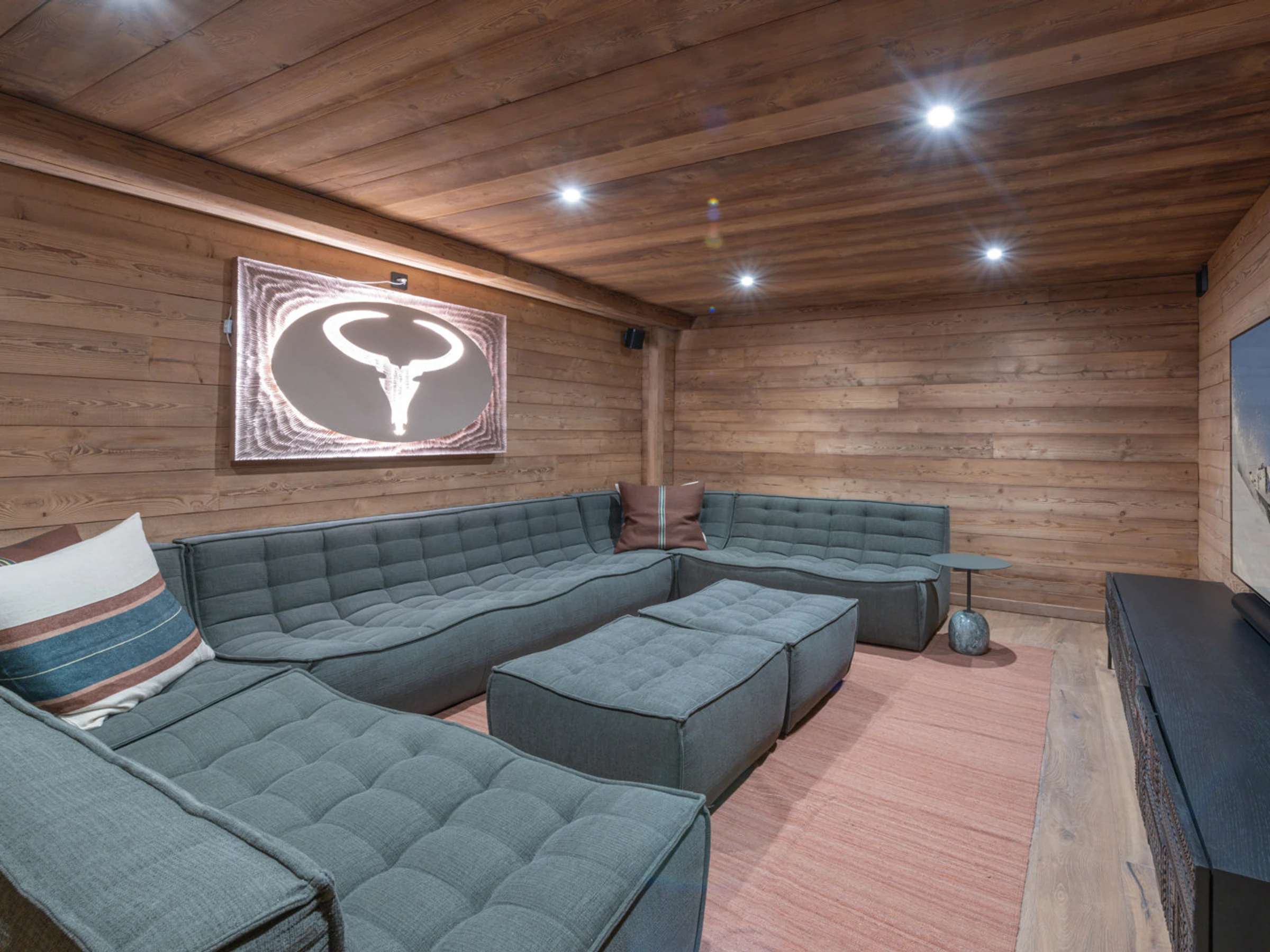 -Salle de cinéma avec une grande télévision et une Xbox reliée à l'Apple TV. Utilisation des chaînes et jeux avec les comptes personnels des locataires.
