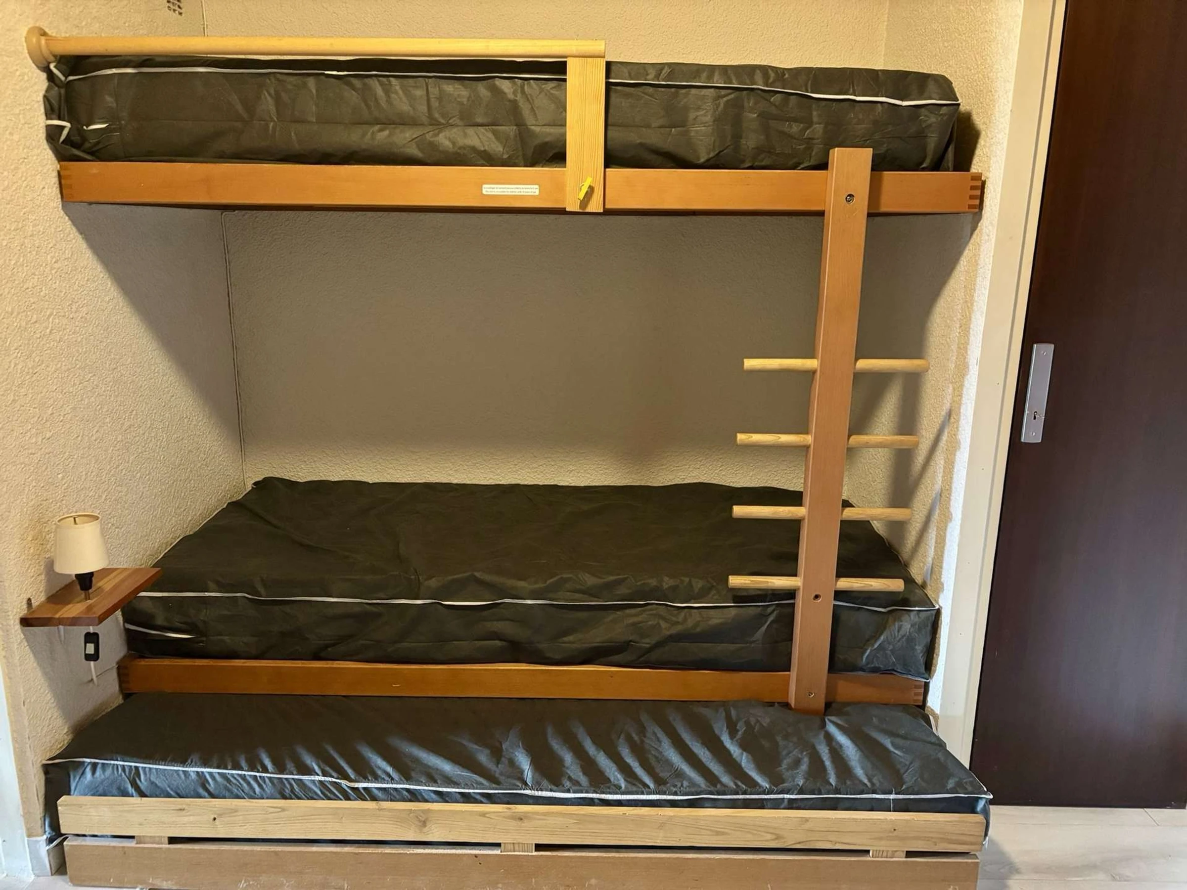 Hall habitable : un lit superposé (80 cm) et un lit tiroir (80 cm)