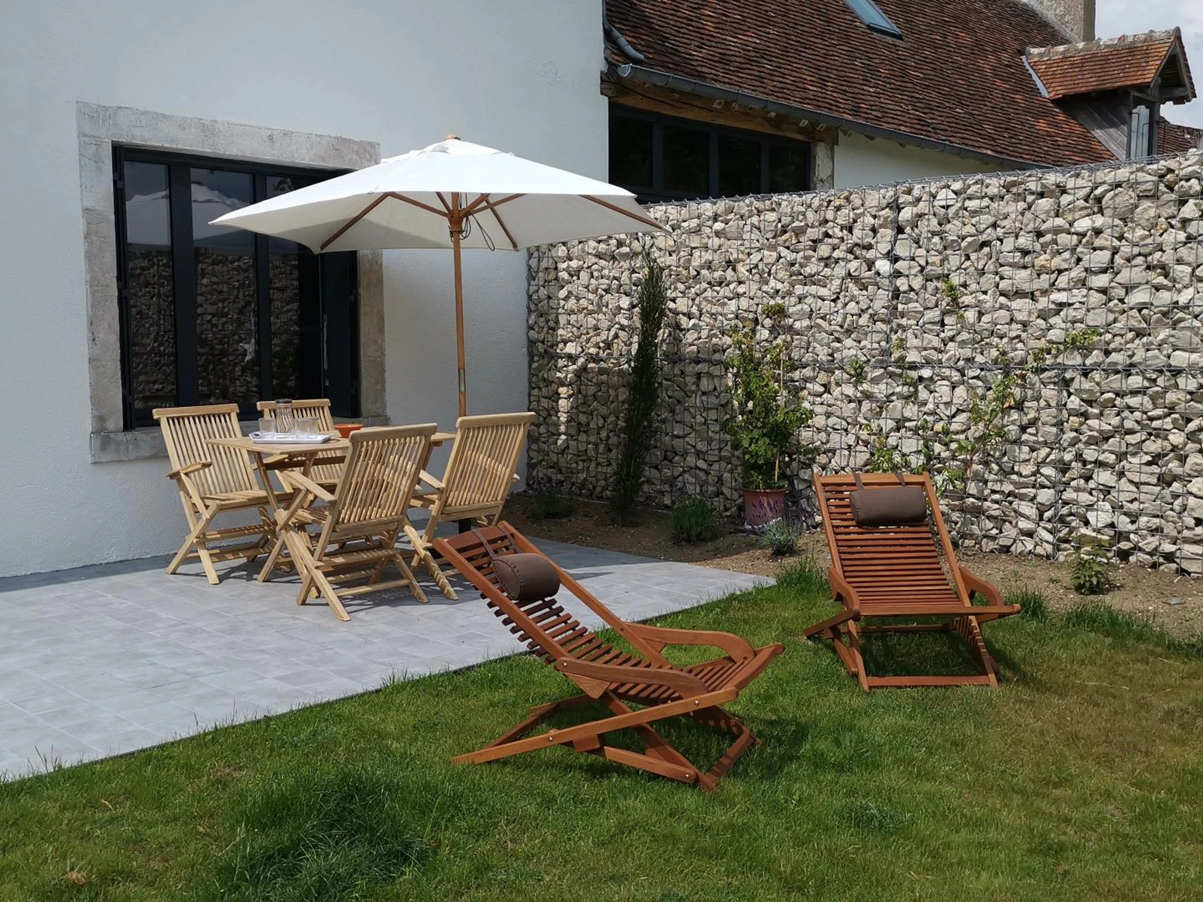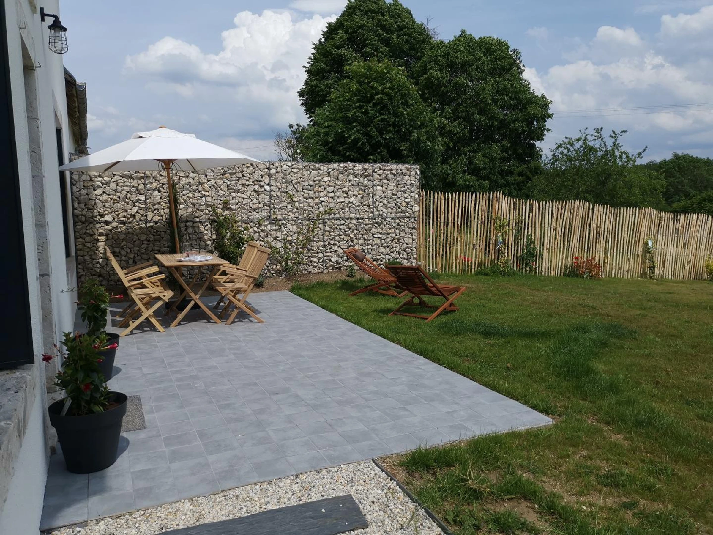 De la cour individuelle où vous pouvez garer aisément votre véhicule et vos vélos, vous accédez à un jardin et une terrasse vous permettant d'entrer dans le gîte.
