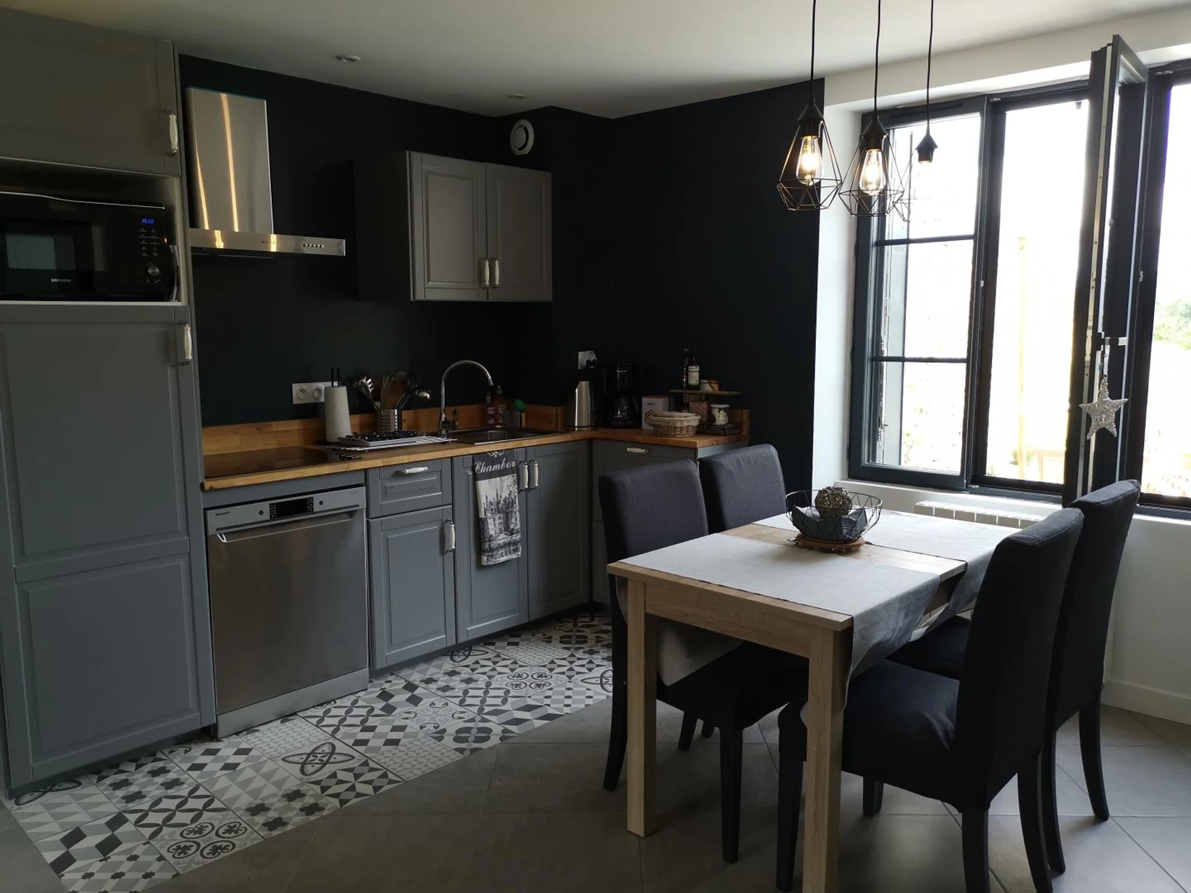 La cuisine est intégralement équipée (Lave-vaisselle, combiné four - micro ondes, plaque de cuisson induction, refrigérateur avec compartiment congélateur, cafetière, bouilloire) .
