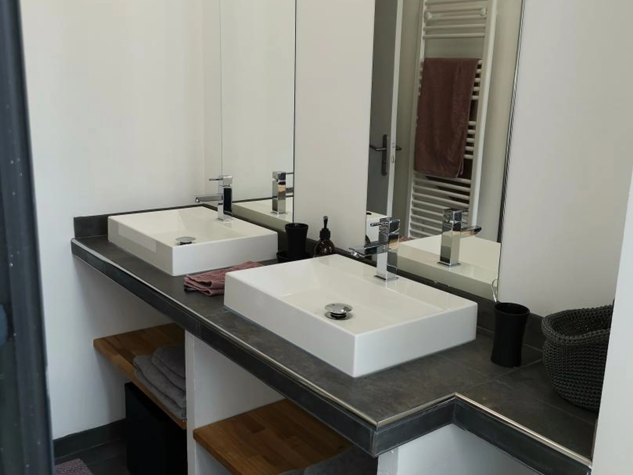 La salle de douche dispose d'un double vasque, d'une douche à l'italienne et d'un espace Lave Linge. Les WC sont séparés.