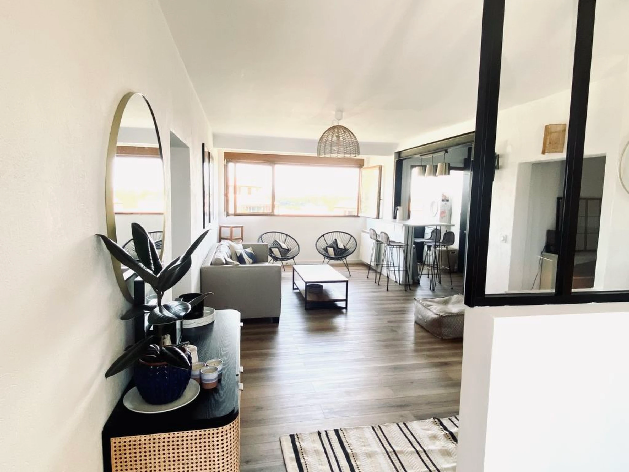 Apt 3 pièces 68 m2 au 4ème étage. Spacieux et clair, rénové en 2022, aménagement agréable et moderne: séjour/salle à manger, fenêtre donnant sur la cour avec TV (écran plat), radiateur électrique. Cabine avec 1 grand-lit (1 x 160 cm, longueur 200 cm). 1 chambre avec 1 lit gigogne (2 pers. 2 x 90 cm, longueur 190 cm). Cuisine ouverte (lave-vaisselle, 4 plaques à induction, bouilloire électrique, micro-ondes, congélateur, gril, ilot de cuisine). Salle de bains, WC séparé. Chauffage. Belle vue sur les alentours. A disposition: lave-linge. Internet (Connexion WIFI). Place de parking près de la maison. Veuillez noter: adapté(e) aux familles. Logement non-fumeur pas de parking. TV seulement FR. Détecteur de fumée. Au lieu d'une chambre fermée, des espaces de couchage sont situés dans un zone ouverte (galerie, alcôve...). Annonce d'un particulier (art 155, IV du CGI).