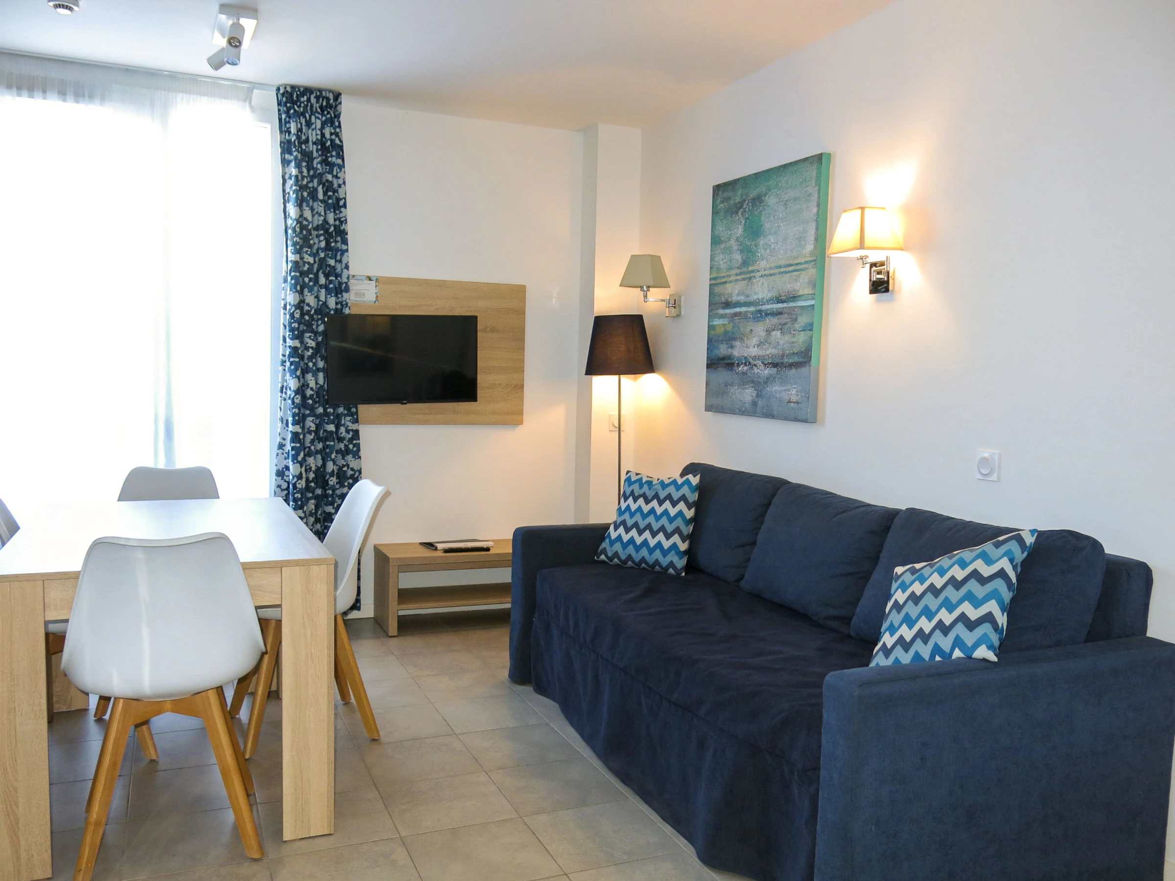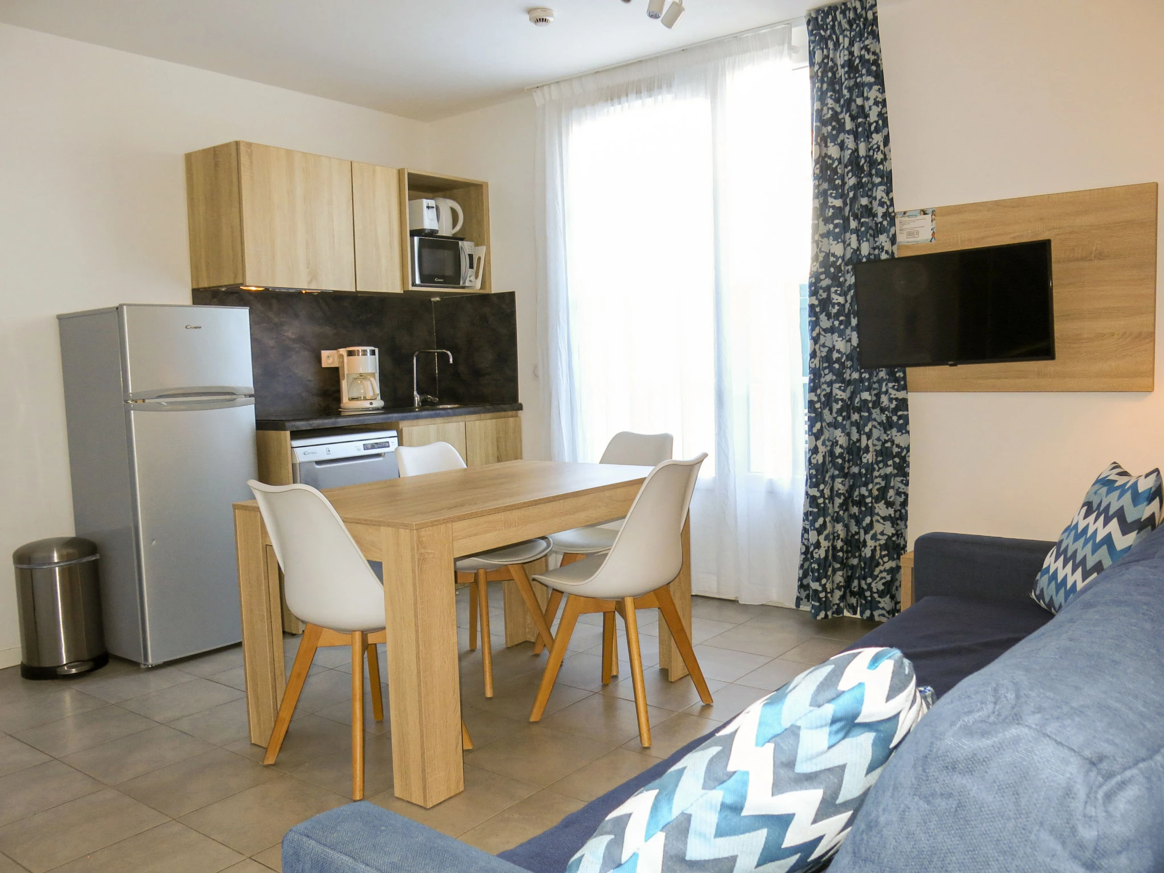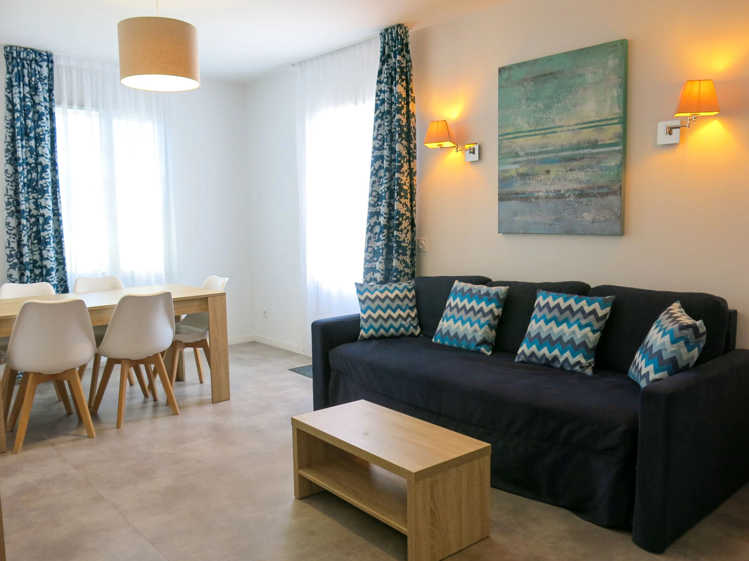 "Rêve d'Ile", apt 2 pièces 36 à 38 m2. Clair, aménagement fonctionnel: séjour/chambre à coucher avec 1 lit, 1 lit gigogne, table pour les repas et TV. 1 chambre avec 1 grand-lit (160 cm, longueur 190 cm). Petite cuisine ouverte (lave-vaisselle, 4 plaques vitrocéramiques, grille-pain, bouilloire électrique, four micro-ondes, congélateur, cafetière électrique). Bains/WC ou douche/WC. Chauffage électrique. Balcon ou terrasse. Meubles de terrasse, mobilier de balcon. A disposition: chaise haute pour enfant, lit bébé, sèche-cheveux. Internet (Connexion WIFI, gratuit). Veuillez noter: logement non-fumeur. Maximum 2 animaux/ chiens autorisés. Détecteur de fumée, extincteur. Cette location est un exemple de location / d'appartement.