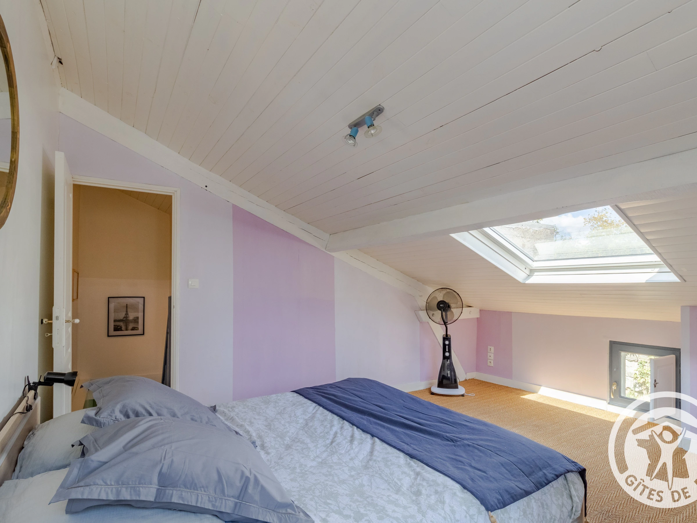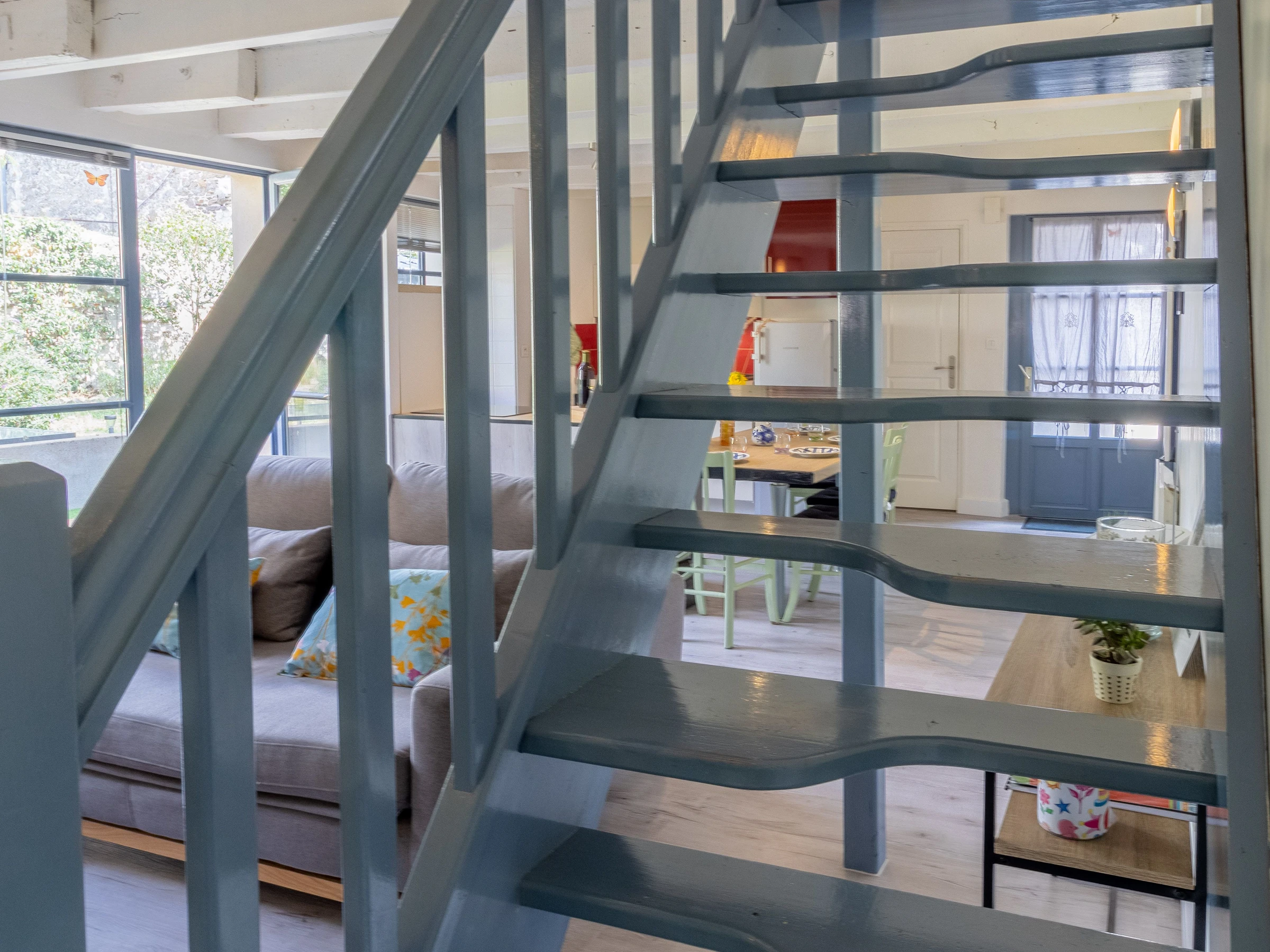 Empruntez l'escalier japonais pour vous rendre à l'étage où vous trouverez une petite chambre (8.50m² à hauteur d'1m80 et 16m² au sol) avec un lit de 160 x 200 cm matelas à mémoire de forme. La chambre est lumineuse grâce à ses 3 fenêtres. Une seconde pièce à l'étage comporte une grande penderie ainsi que 2 lits de 90 x 190 cm pouvant accueillir 2 enfants sur demande.
