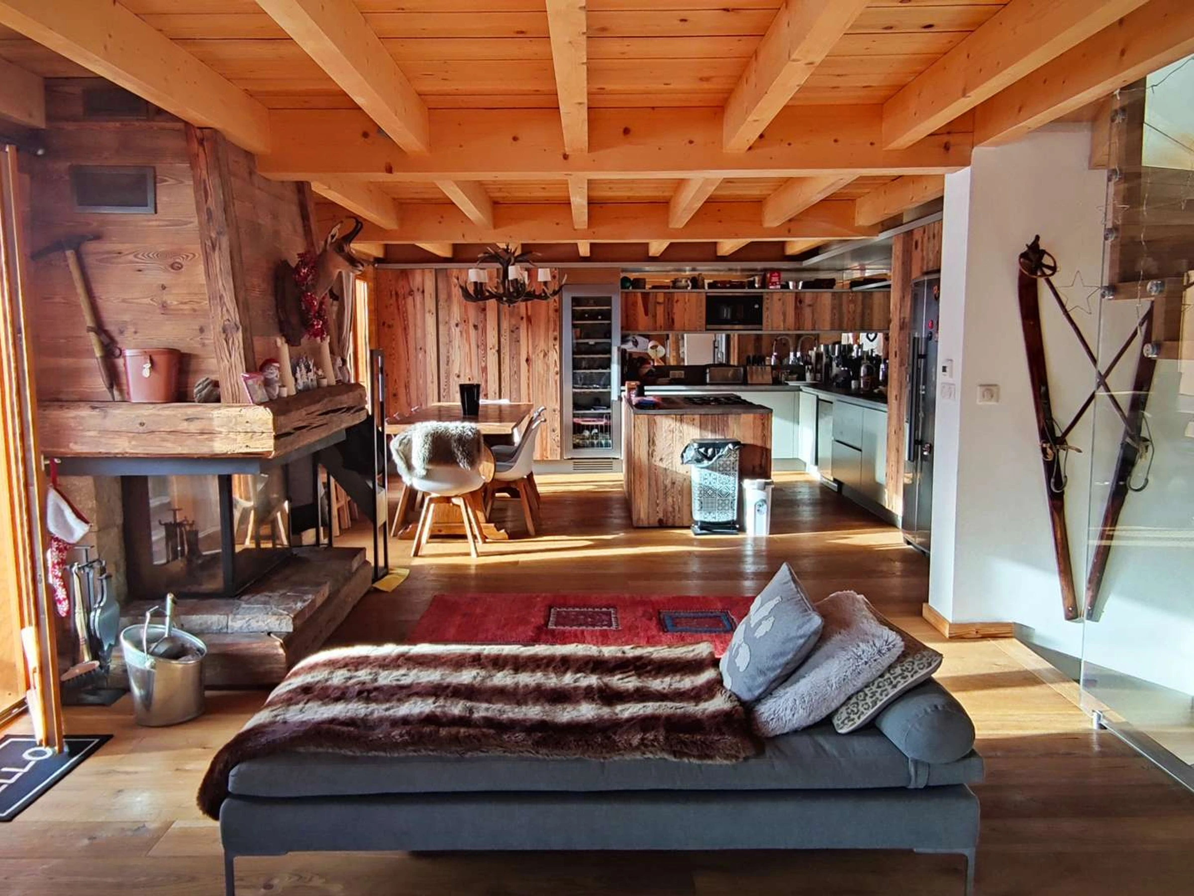 CM6 Magnifique chalet individuel de 150 m², entièrement rénové, de qualité haut de gamme, comprenant 5 chambres, 2 salles de bains, 2 salles d'eau, salon salle à manger avec cheminée et terrasse, cuisine américaine, situé sur les hauteurs de la station, avec vue panoramique sur les pistes et la montagne. Garage dans le chalet + 1 parking.