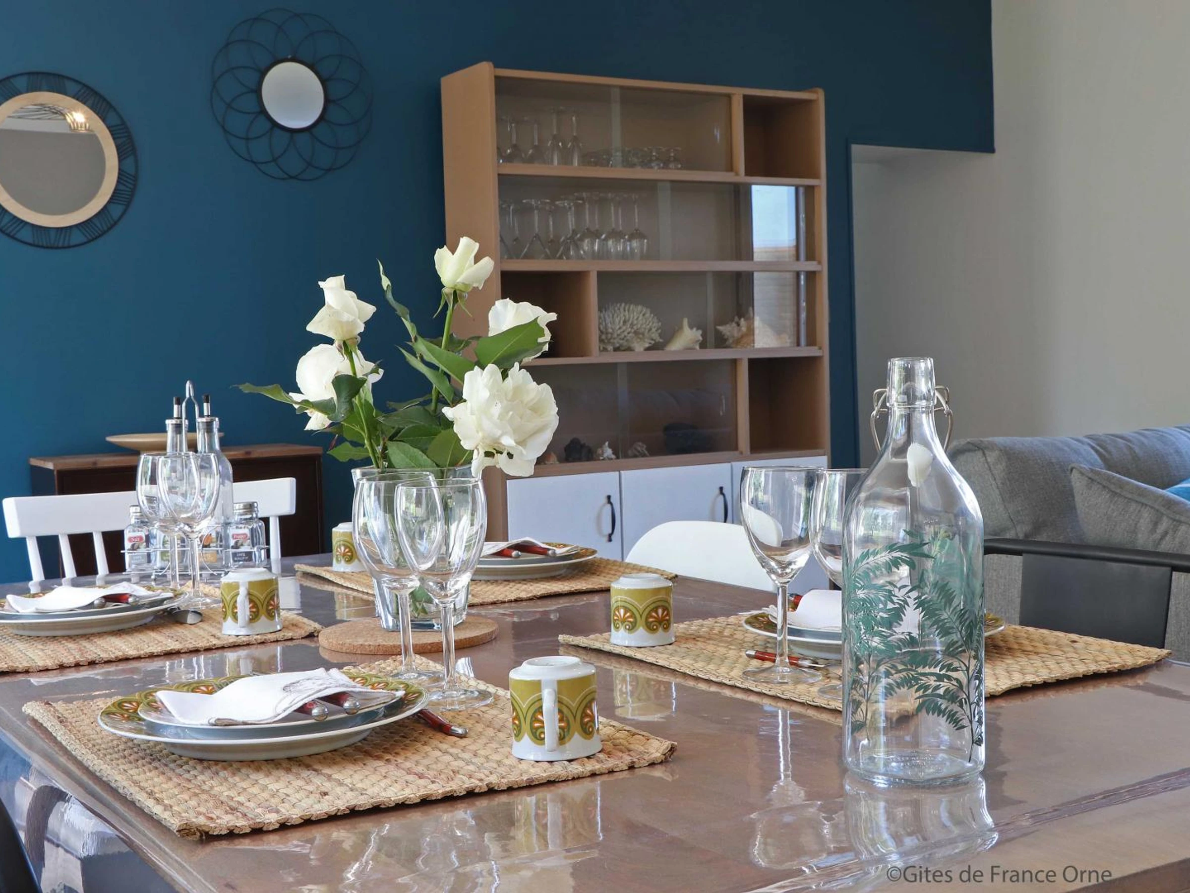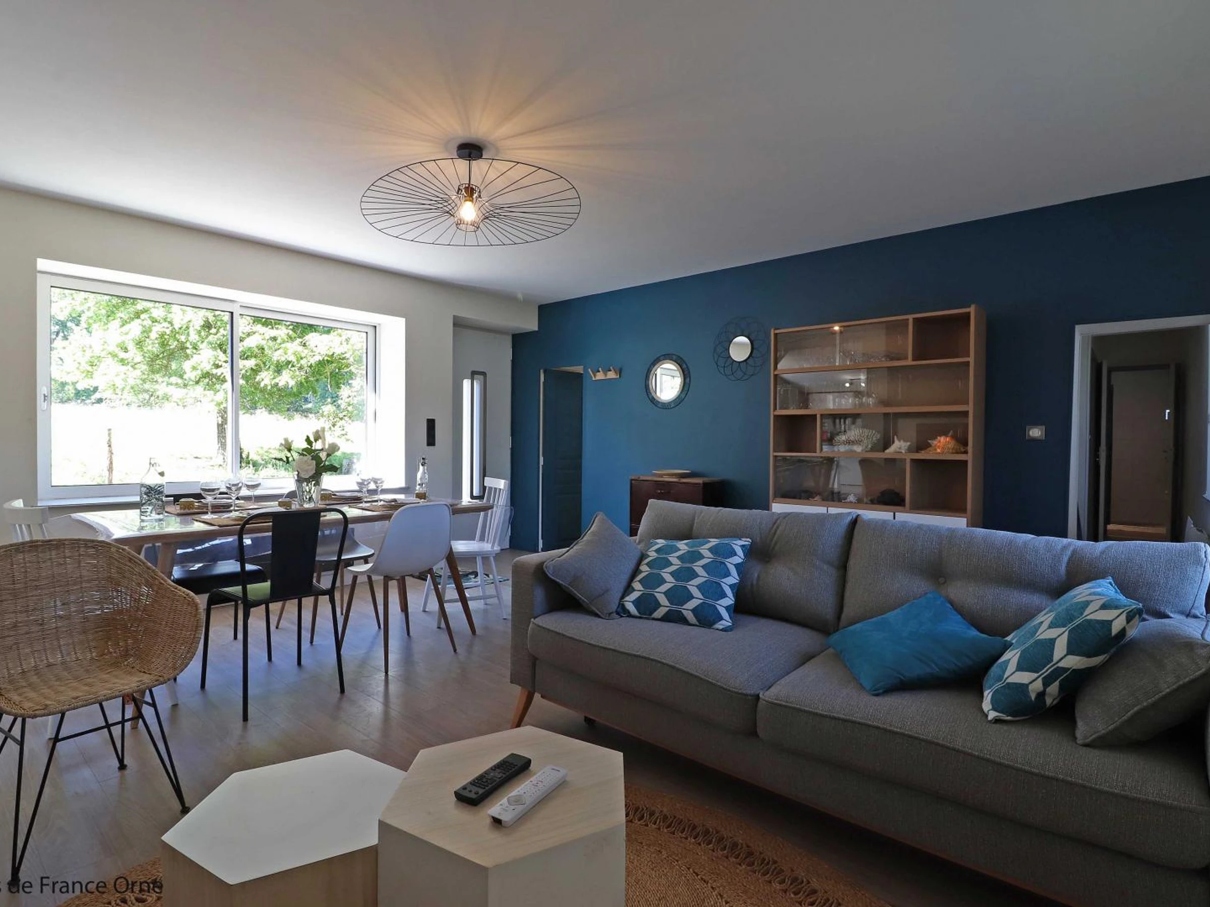 Maison de pays indépendante de plain pied. Séjour avec insert (bois fourni gratuitement) et canapé convertible 2 personnes , smart TV ambilight connectée, et cuisine toute équipée, 1 chambre (lit 2 personnes), 1 chambre (2 lits 1 personne), salle d'eau avec douche à l'italienne, wc indépendants. Excellente connexion Internet (fibre). Terrasse et cuisine d'été équipée (combiné plancha-barbecue , réfrigérateur et micro-ondes), table à manger de jardin avec 6 chaises, salon de jardin, 4 bains de soleil, 2 transats. Le chauffage est inclus dans le prix. Jardin arboré et verger entouré d'herbages.