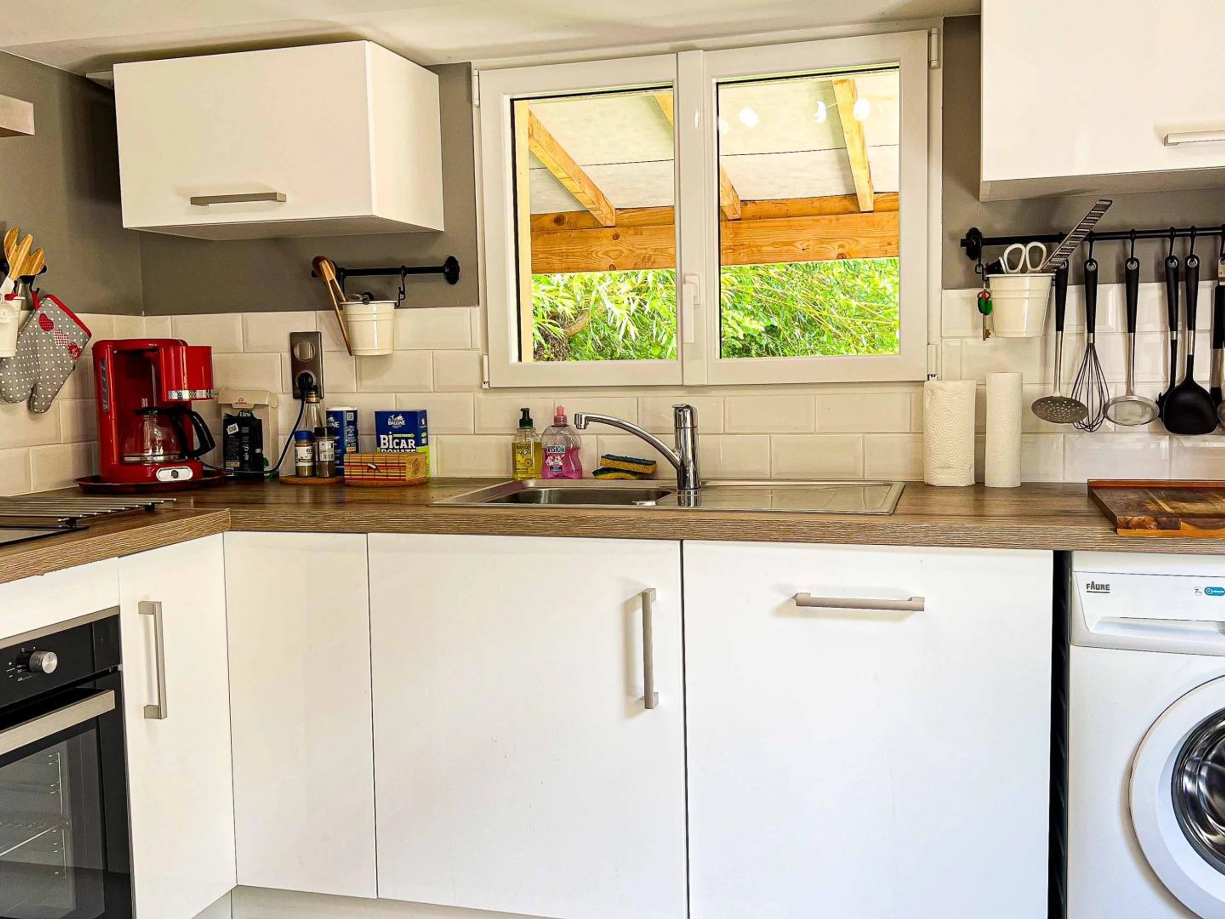 Abri pour vélos et voiture. Ping-pong et jeux de möllky, fléchettes, raquettes badminton, pétanque. Prise de recharge renforcée pour véhicule électrique (facturation à la consommation réelle). Petit chien accepté sur demande préalable auprès du propriétaire avec majoration de la caution.