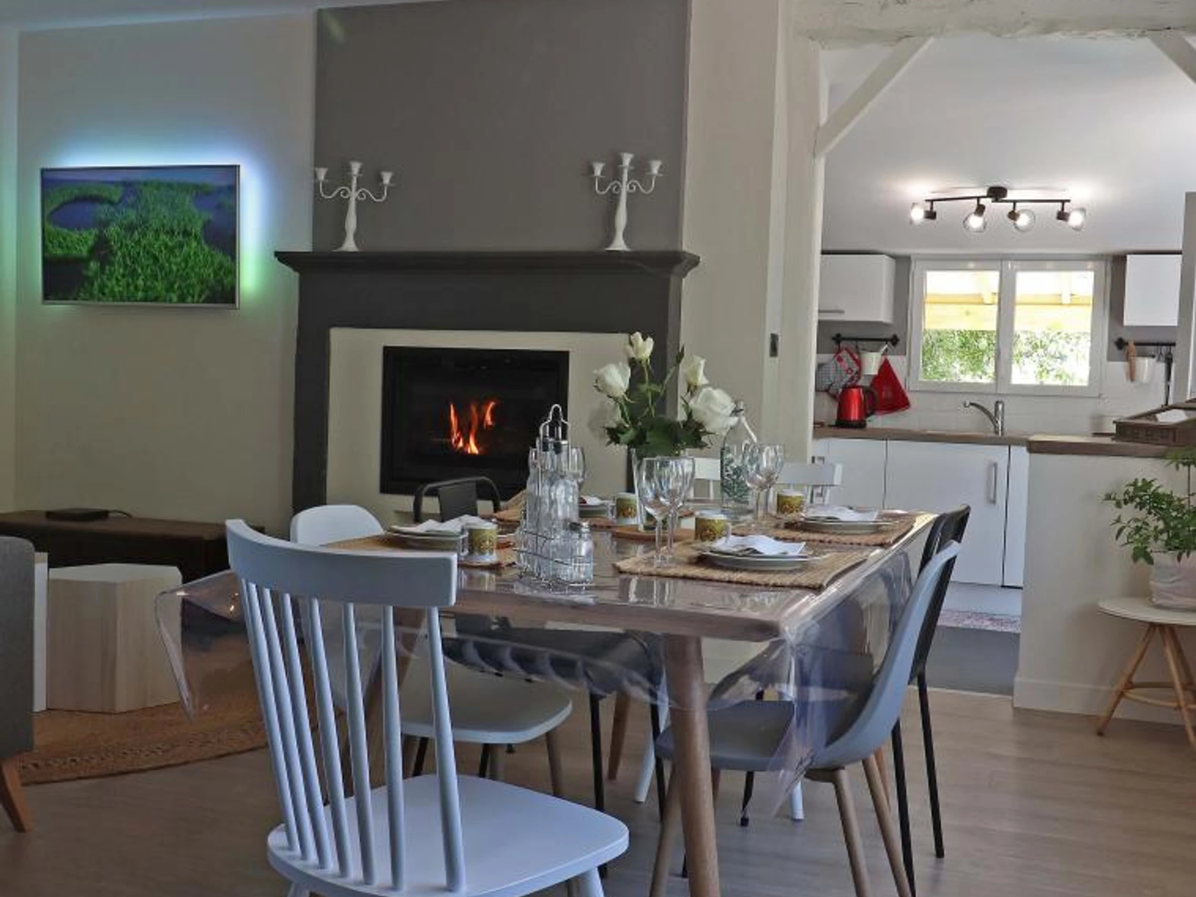 WIFI, Plain pied, chambre rez chaussée, Terrain clos, Salon de jardin, Barbecue, jeux extérieurs, Recharge véhicule électrique, Terrasse, Jardin, Caution animal, Congélateur, Télévision, Insert, Lave-vaisselle, Micro-ondes, Lave-linge, Maison Individuelle, Chauffage compris, Draps inclus.