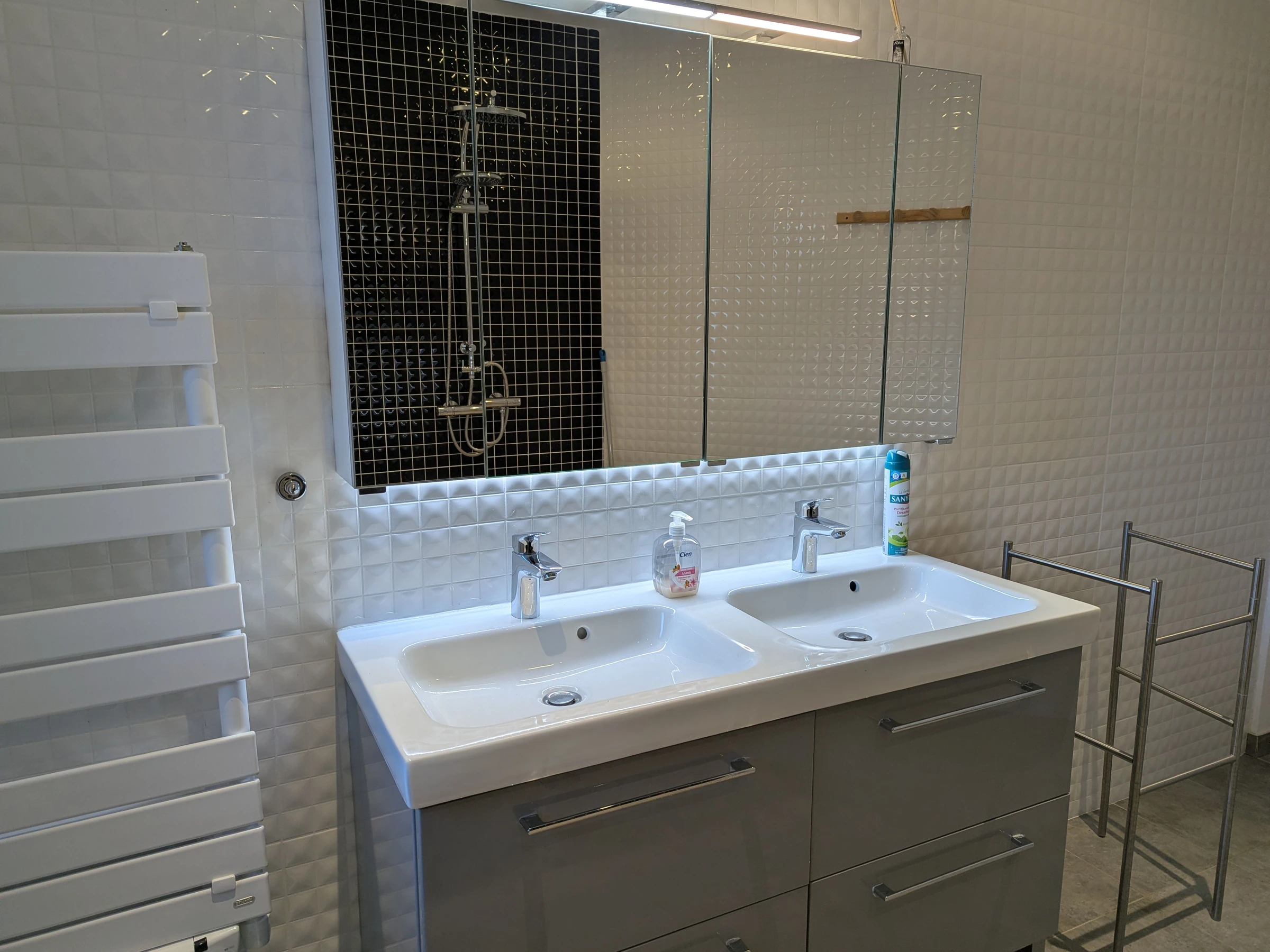 - Salle d'eau n°1 (douche de plain pied, meuble double vasque).