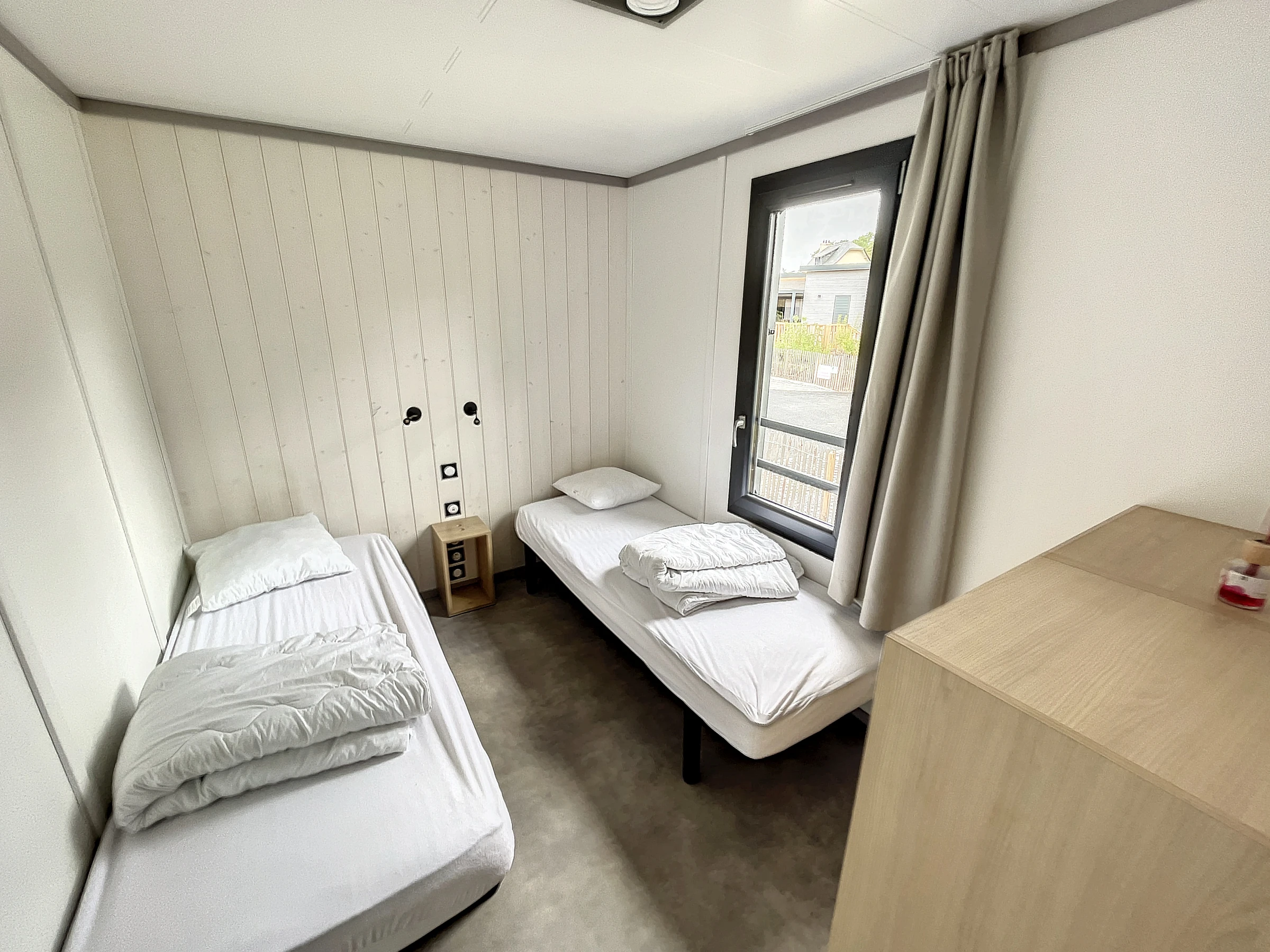 Laissez-vous tenter par ce chalet composé d’une pièce de vie avec un coin séjour-salon, un coin cuisine entièrement aménagée et équipée, une chambre parentale avec sa salle d'eau attenante et wc, une deuxième chambre avec 2 lits simples, une troisième et dernière chambre avec un lit superposé et un second lit simple, une deuxième salle d'eau ainsi que des deuxièmes wc séparés et d'un lave linge.