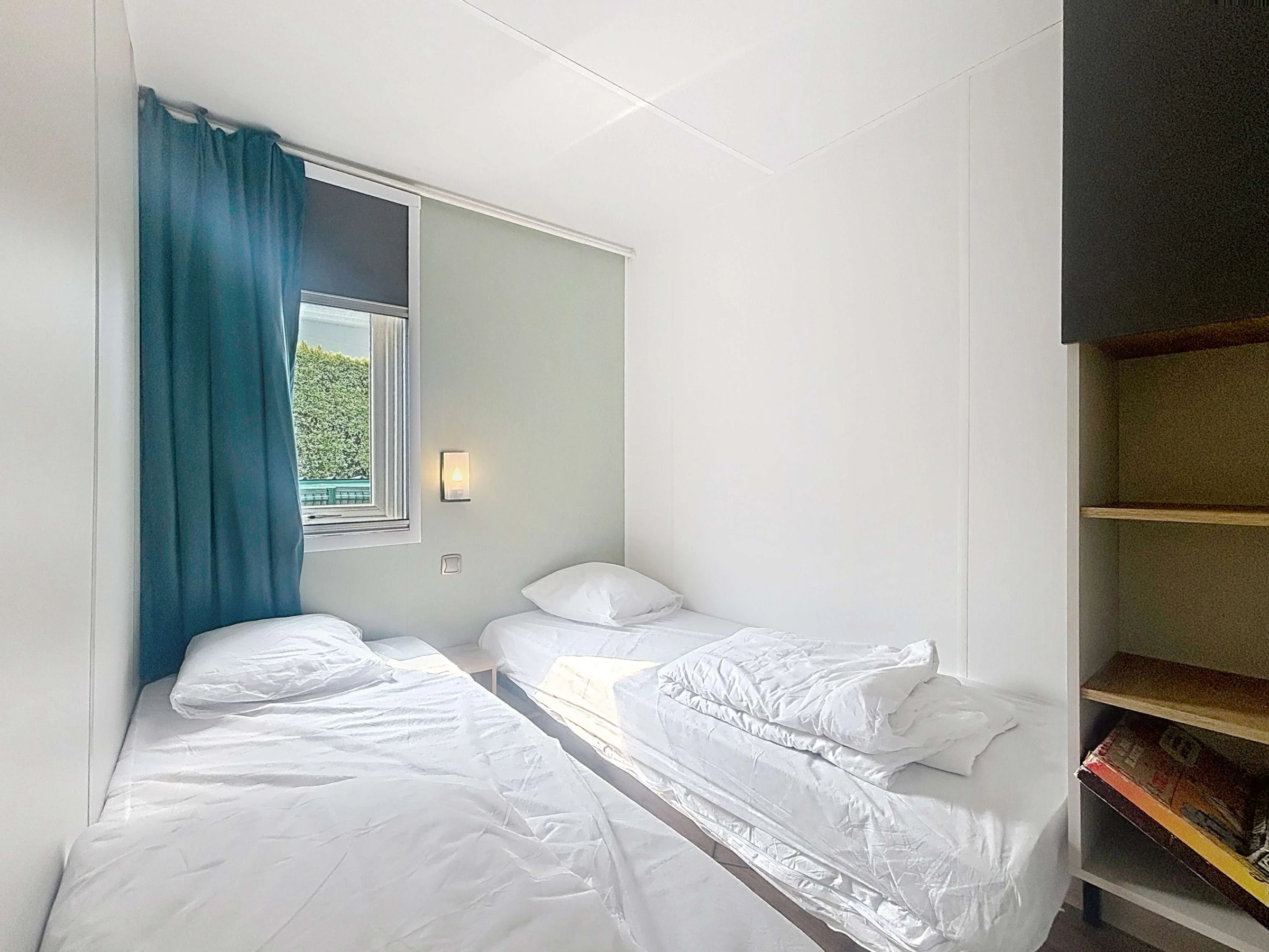 Laissez-vous séduire par ce Mobile-home 2 chambres, Grand confort, 4 personnes d'une surface de 31,6m² composé d’une pièce de vie avec un coin cuisine aménagée et équipée ( mini-four) , d’un coin salon avec Tv et canapé ( convertible ), d’une chambre équipée d’un lit double (160x200), d’une deuxième chambre avec deux lits simples (90), une salle d’eau et wc séparé. Vous pourrez profiter de la terrasse en bois équipée d'une pergola avec paravent avec un accès direct sur la cuisine. Un emplacement de parking est disponible sur la parcelle, uniquement pour un seul véhicule.