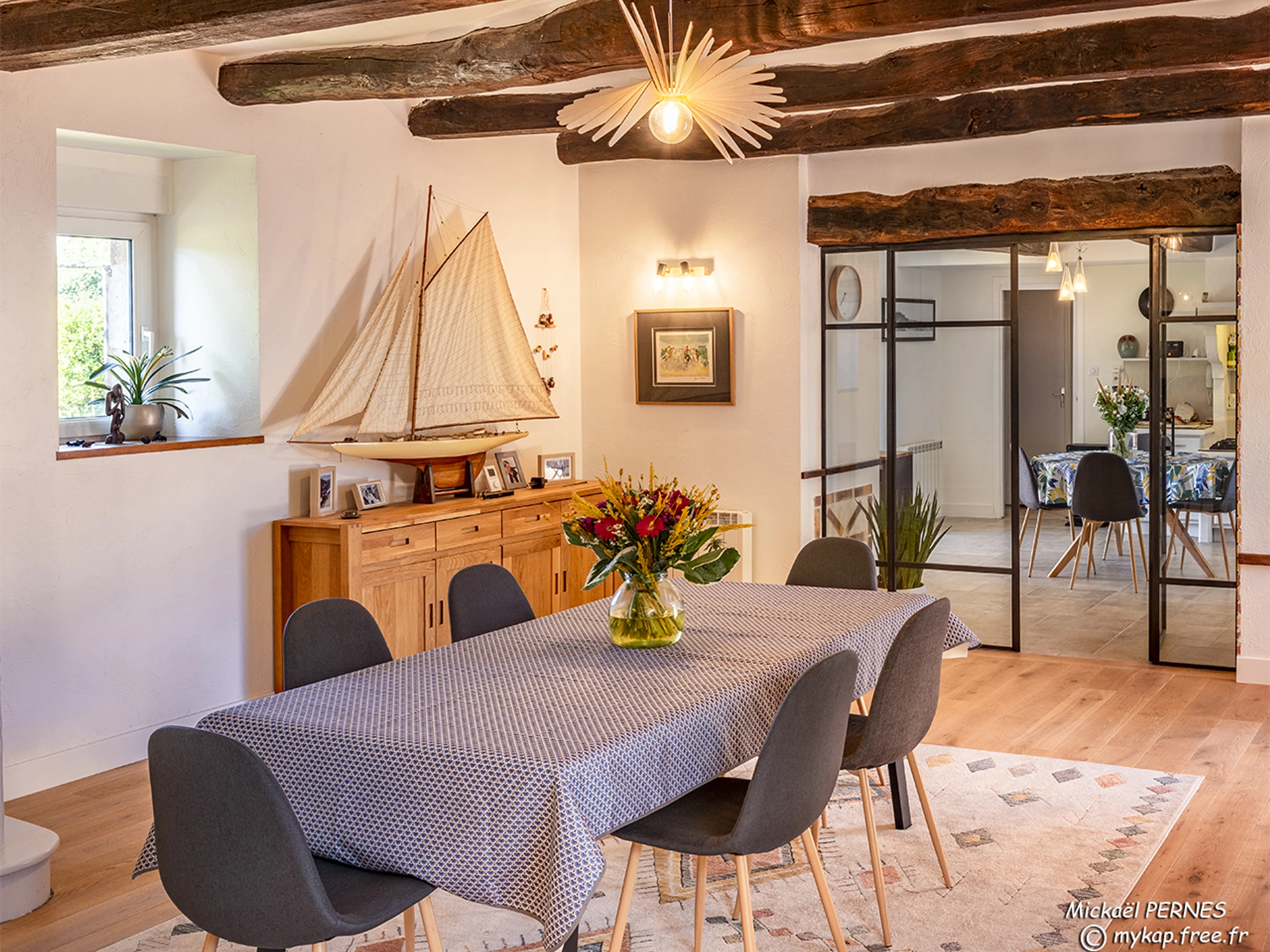 Charme et authenticité pour cette sublime propriété divisée en 2 logements à location saisonnière bénéficiant chacun d'une entrée indépendante, construite en pierres du 19ème siècle de 1838, réhabilitée dans son style d'origine. Érigée sur un parc paysager de plus de 5500 m2, chacun bénéficie d'une partie et d'un coin jardin intimiste. Cette dernière bénéficie d'une cuisine aménagée et équipée ouverte sur salon séjour avec poêle donnant sur terrasse avec un accès exclusif à la piscine non chauffée 8x4 . L'étage accueille une bibliothèque et accueille 3 chambres (160-2x80-2x90) avec chacune une salle d'eau privative + baignoire pour l'une d'entre elle. Une aire de stationnement de 2 véhicules est possible sur la propriété. Vous serez séduits par son environnement et son magnifique jardin fleuri, les couleurs de toutes beautés mêlées aux parfums variés, un seul mot ...Véritable havre de paix ...Votre intimité reste préservée dans ce cadre idyllique...tout en étant partagé.