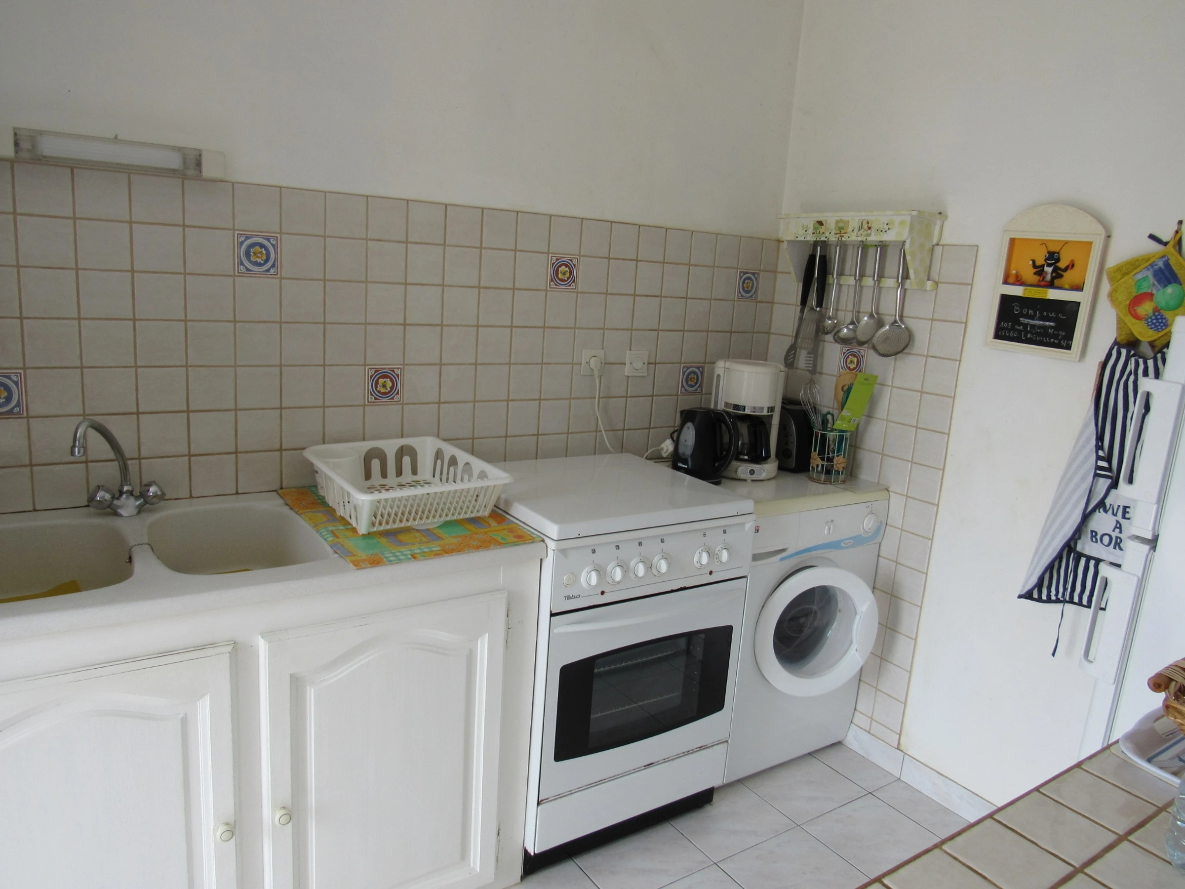 Cuisine ouverte équipée (gazinière - four électrique - réfrigérateur/freezer - lave-linge)