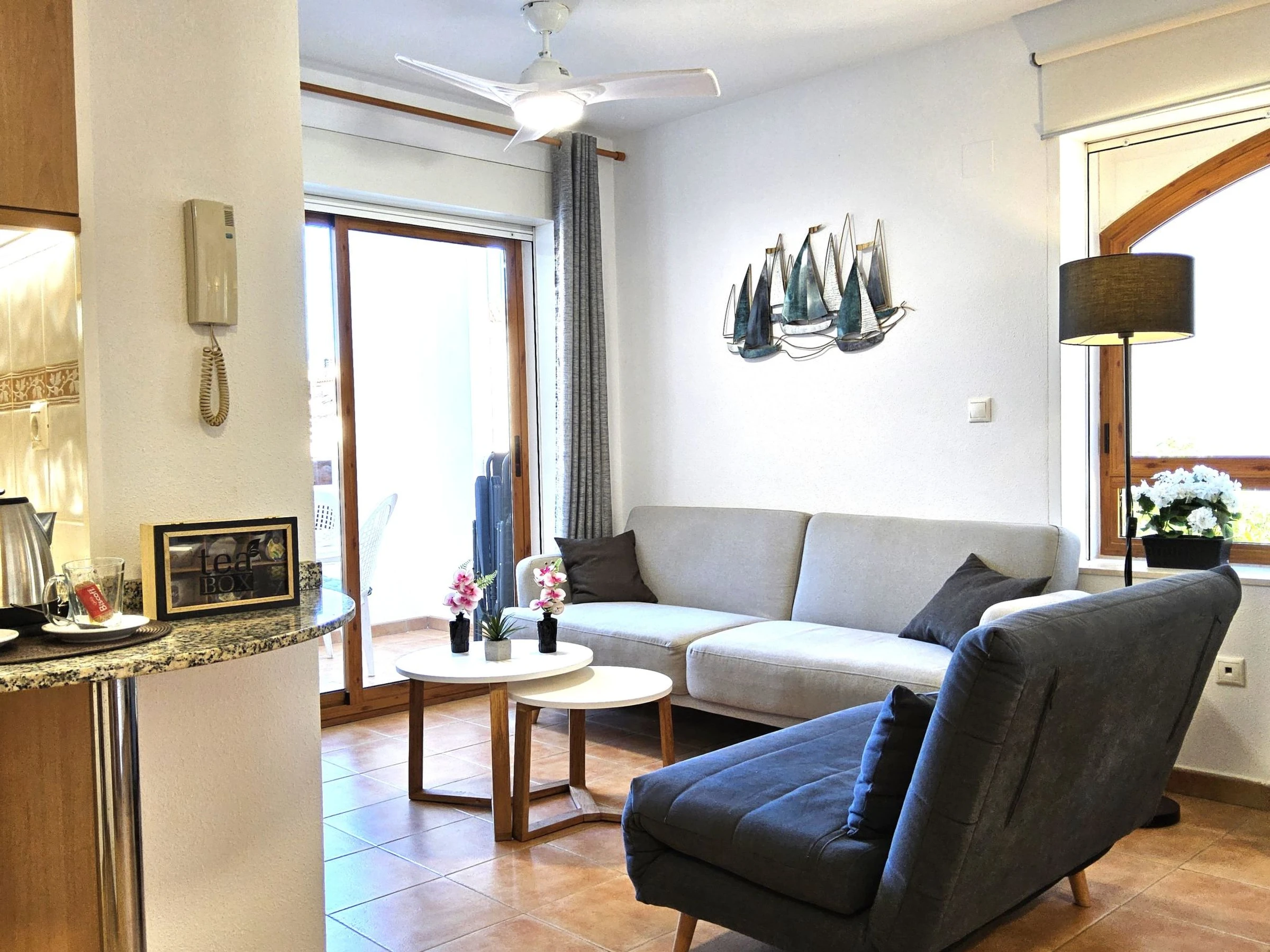 "Font Rotja", apt 2 pièces 68 m2. Logement idéal pour 2 adultes + 1 enfant. Clair, aménagement fonctionnel et confortable: séjour/salle à manger 15 m2 avec 1 divan-lit (190 cm, longueur 105 cm), Télévision numérique, air-conditionné et chauffage à air chaud. Sortie sur la terrasse. 1 chambre 12 m2 avec 1 grand-lit (150 cm, longueur 190 cm), Télévision numérique, air-conditionné et chauffage à air chaud. Coin cuisine 6 m2 (four, 3 plaques à induction, grille-pain, bouilloire électrique, micro-ondes, congélateur, cafetière électrique). Douche/WC. Terrasse. Meubles de terrasse. Vue sur la piscine et le jardin. A disposition: lave-linge, fer à repasser, sèche-cheveux. Internet (Connexion WIFI, gratuit). Place de parking (couvert). [hidden] // Reg. Nr.: ESFCTU0000030300002144180000000000000CV-VUT0430065-A5