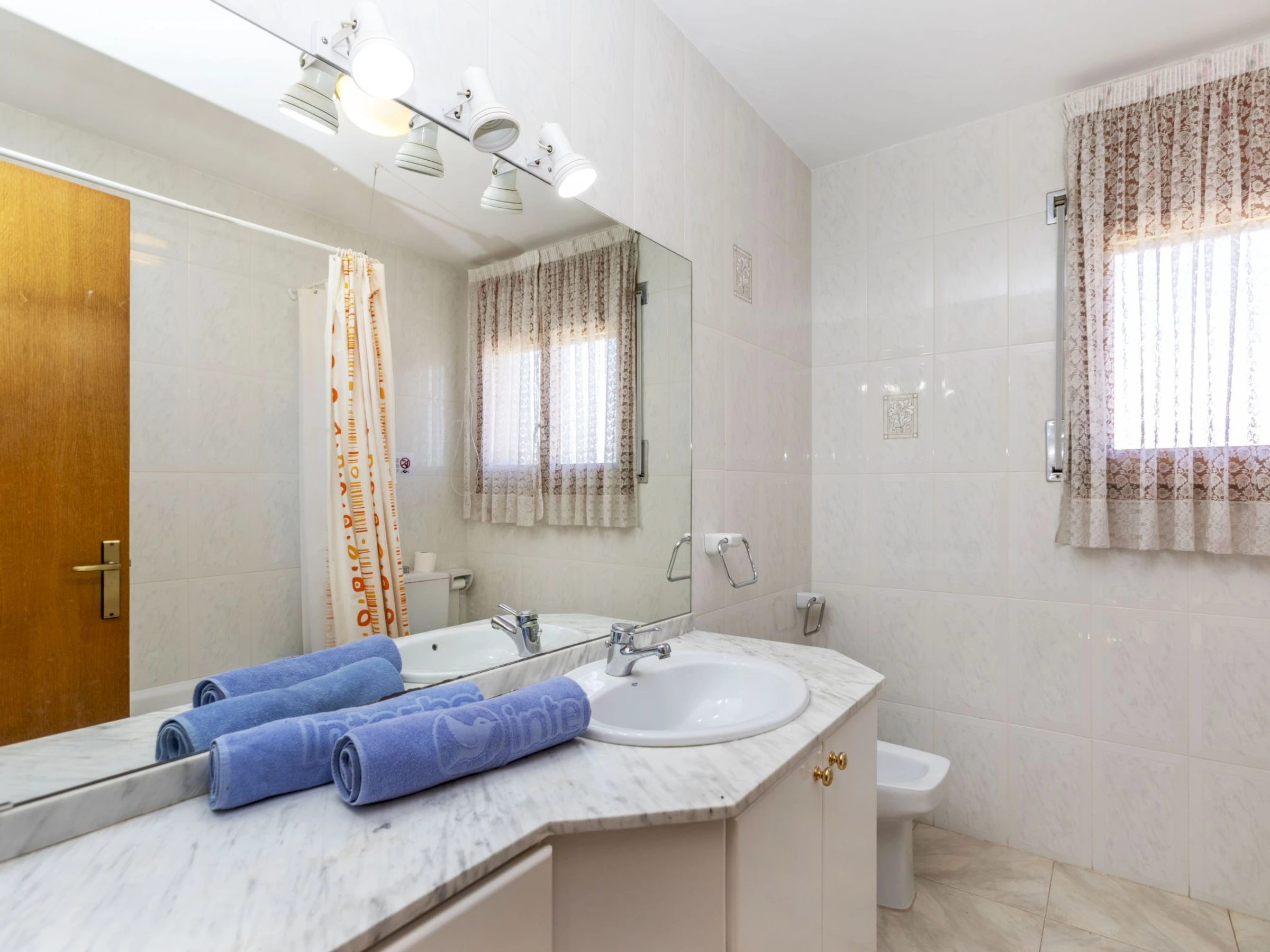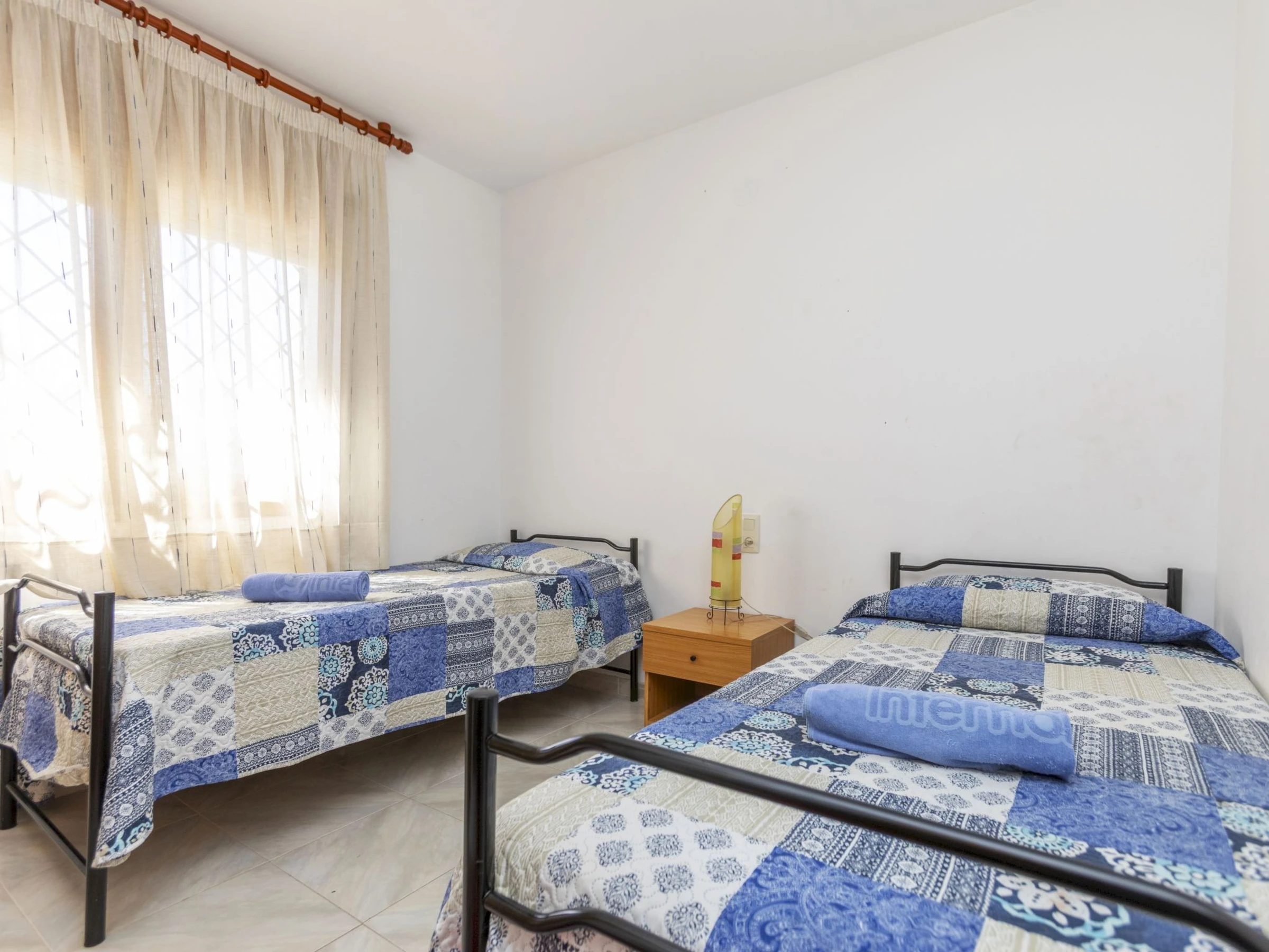"Villa Palmera I", villa 5 pièces 170 m2 sur 2 niveaux. Aménagement confortable et plaisant: séjour/salle à manger avec table pour les repas, TV (satellite) et Télévision numérique. Sortie sur la terrasse. 1 chambre avec 1 grand-lit (150 cm, longueur 190 cm). 1 chambre avec 2 lits (90 cm). Cuisine ouverte (4 plaques de cuisson, four, lave-vaisselle, grille-pain, micro-ondes, cafetière électrique, Capsules pour machine à café (Dolce Gusto) (NON INCLUSES)). Douche/bidet/WC. Pas de chauffage. À l'étage supérieur: 1 chambre avec 1 grand-lit (160 cm, longueur 190 cm). 1 chambre avec 2 lits (90 cm, longueur 190 cm). Sortie sur la terrasse. Bain/bidet/WC. Grand jardin. Meubles de terrasse, chaises longues. A disposition: lave-linge, fer à repasser, sèche-cheveux. Internet (Connexion WIFI, gratuit). [hidden]