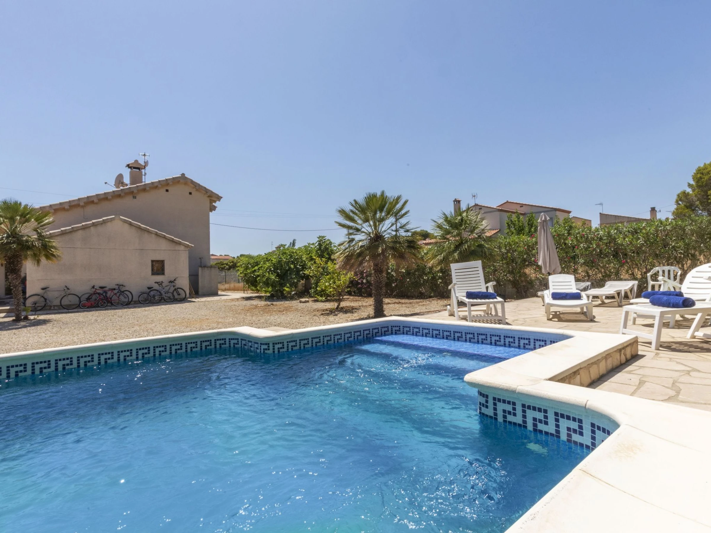 Urb. Tres Cales à 4 km de L'Ametlla de Mar: Villa accueillante, confortable "Palmera I", de 2 étages. En-dehors de la localité, à 4.8 km du centre de L'Ametlla de Mar, situation tranquille, ensoleillée, à 1.1 km de la mer, à 1.1 km de la plage. A usage privé: terrain à l'état naturel (clôturé), piscine rectangulaire (8 x 4 m, profondeur 80 - 190 cm, disponibilité saisonnière: [hidden] - [hidden] Meubles de jardin, entretien de la piscine par le propriétaire/jardinier. Magasin d'alimentation, supermarché, restaurant, bar 700 m, arrêt de bus 600 m, gare ferroviaire "Ametlla de Mar" 4.8 km, plage de sable 1.1 km. Attractions à proximité: Parque Portaventura 48 km, parque Aquopolis 51 km, parque natura del Delta del Ebro 35 km, Tarragona 57 km, Reus 48 km, Barcelona 153 km. Veuillez noter: voiture recommandée. Groupes de jeunes sur demande seulement.
