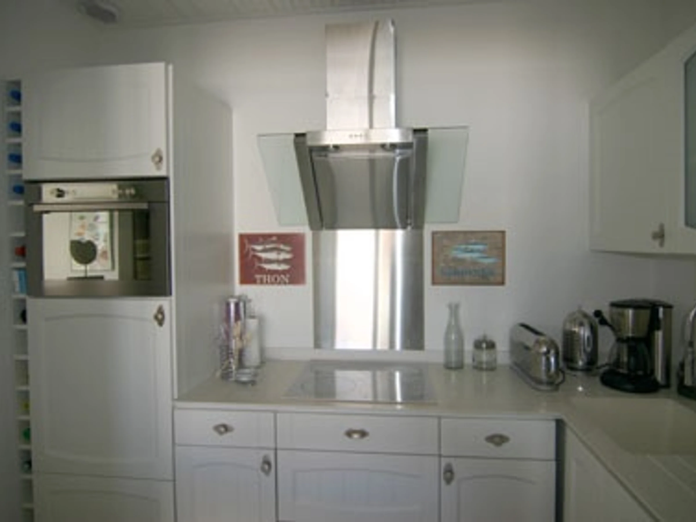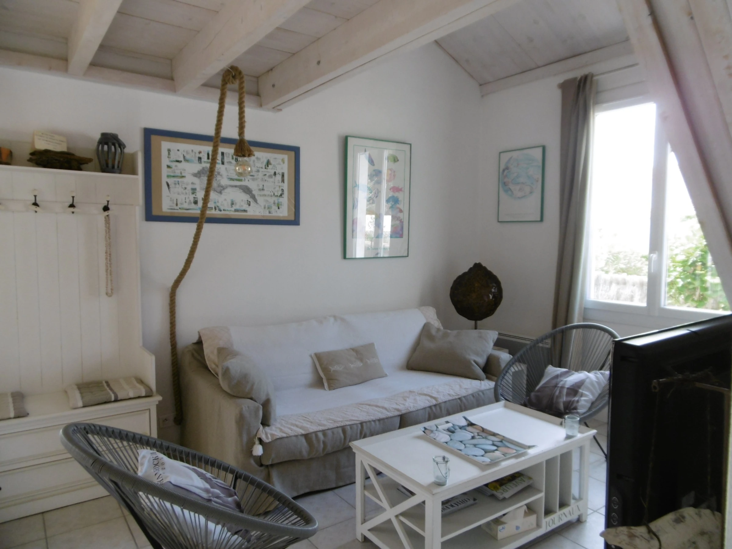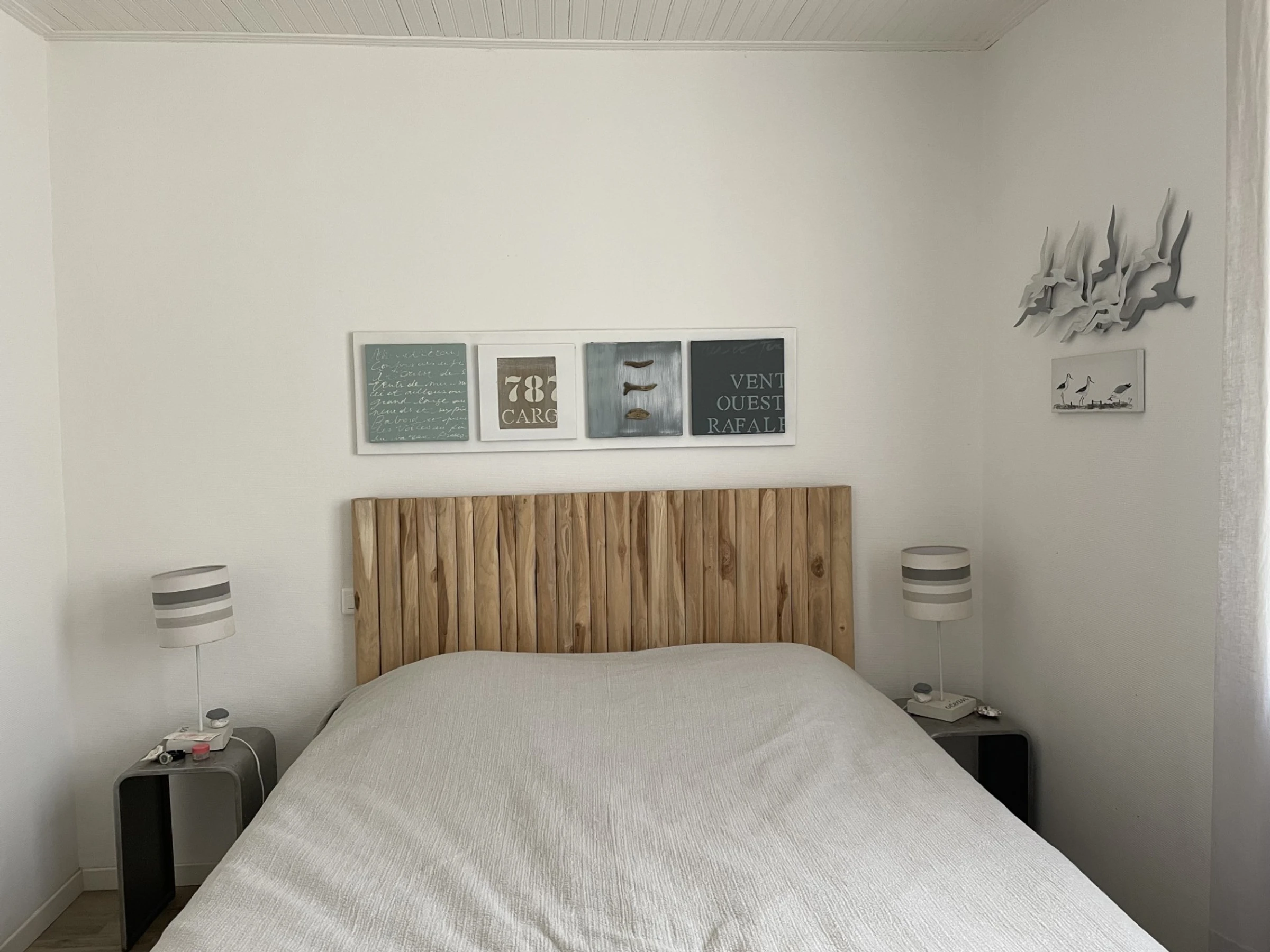 Maison des années 1950 complétement rénovée de très bon confort - 78 m² environ - 6 personnes comprenant belle pièce de vie avec coin salon, coin cuisine aménagé et équipé, une chambre 1 lit en 160, une chambre 2 lits en 80 avec salle d'eau privée & sèche-serviettes, mezzanine avec 1 lit en 160, salle d"eau, wc - Lave-linge-séchant, lave-vaisselle, combiné four/micro-ondes, accès wifi indiqué sur place, télévision écran plat x 80 cm - Jardin clos, terrasse carrelée sous le auvent - Stationnement sur propriété - Animaux non admis - Possibilité forfait ménage : 108 €.