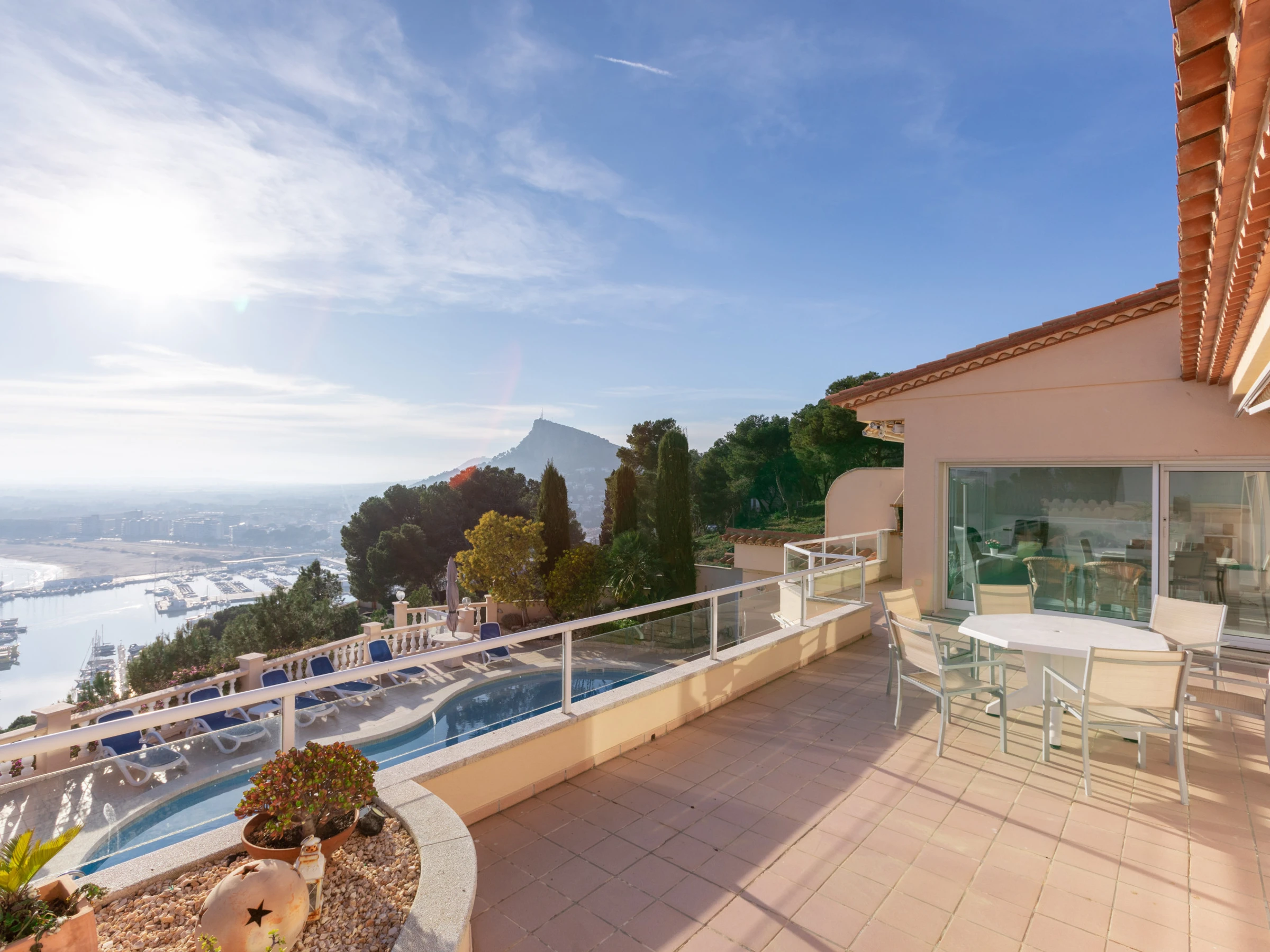 Avec une superficie de 312 m², la villa a été conçue pour garantir l'espace, le confort et la luminosité dans chaque coin. Elle dispose de 3 chambres et peut accueillir 6 personnes, un salon élégant avec un accès direct aux terrasses ensoleillées, un jardin avec mobilier extérieur et une piscine privée avec vue sur la mer. De plus, elle offre une zone de barbecue, un terrain clôturé et deux places de parking en plein air, le tout dans un environnement serein et entouré de montagnes.