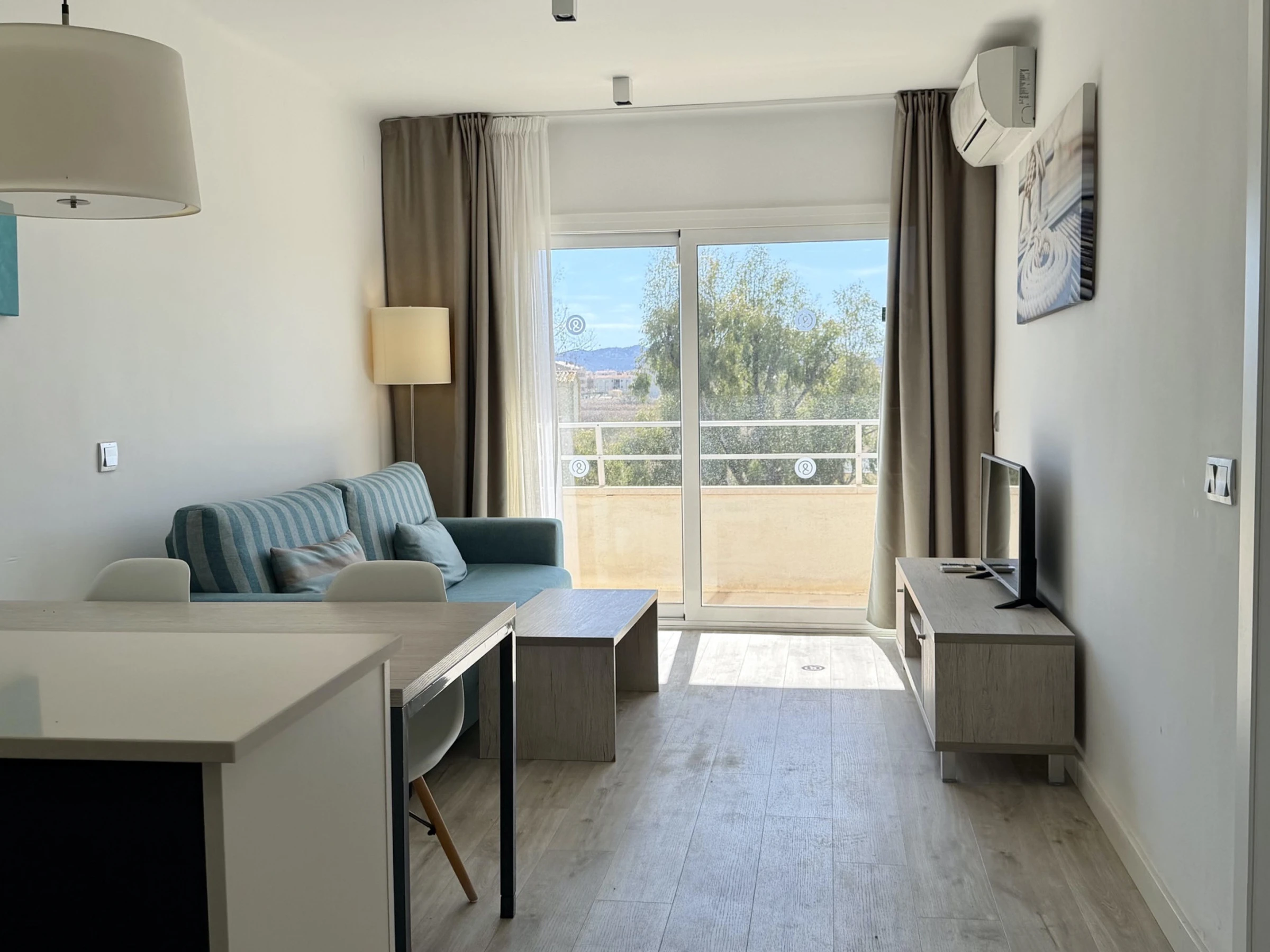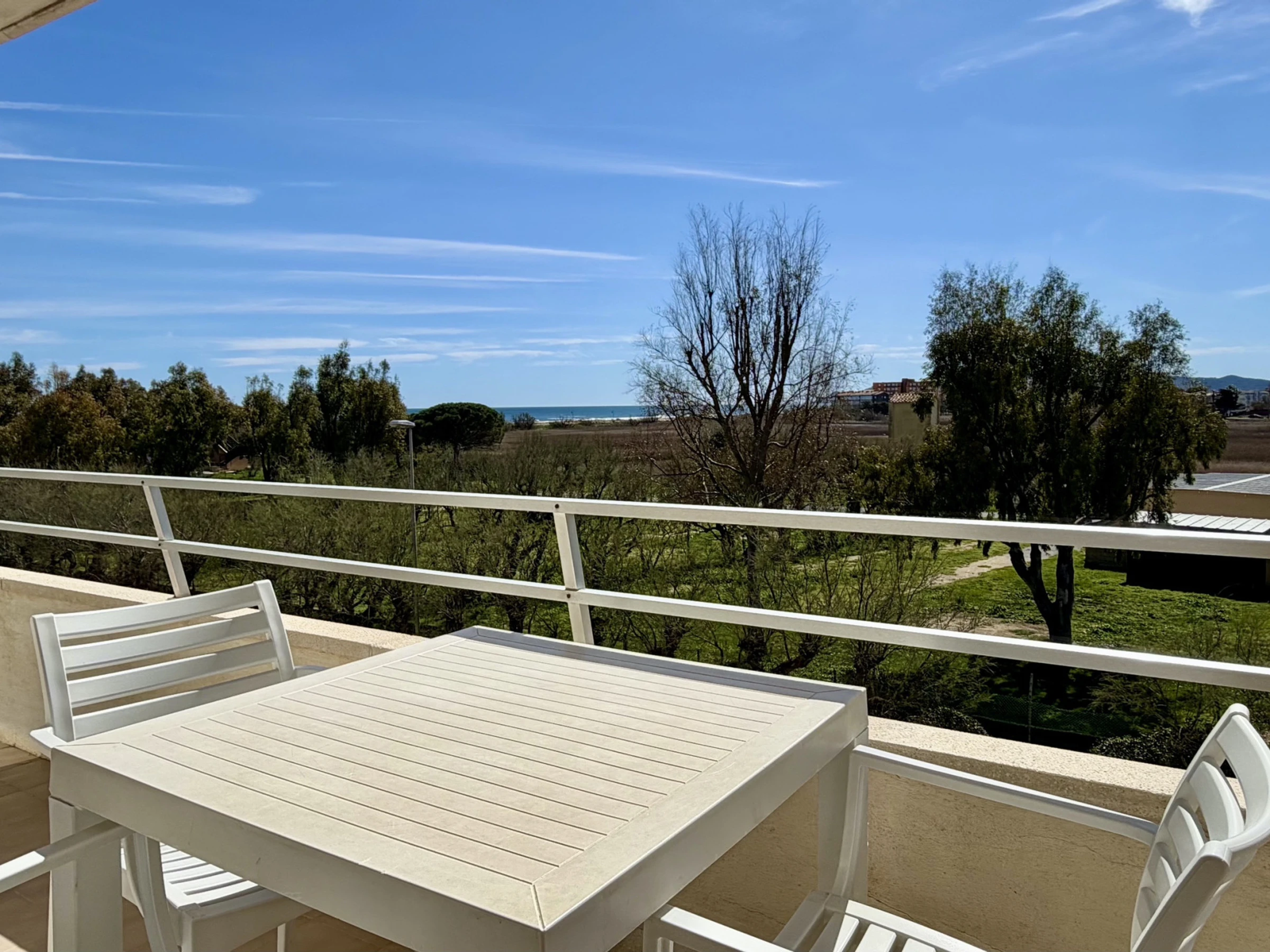 L'appartement dispose d'une terrasse idéale pour profiter de moments en plein air, parfaite pour prendre un café le matin ou un verre au coucher du soleil. Le séjour est équipé de la climatisation et d'une pompe à chaleur pour garantir votre confort à toute époque de l'année.