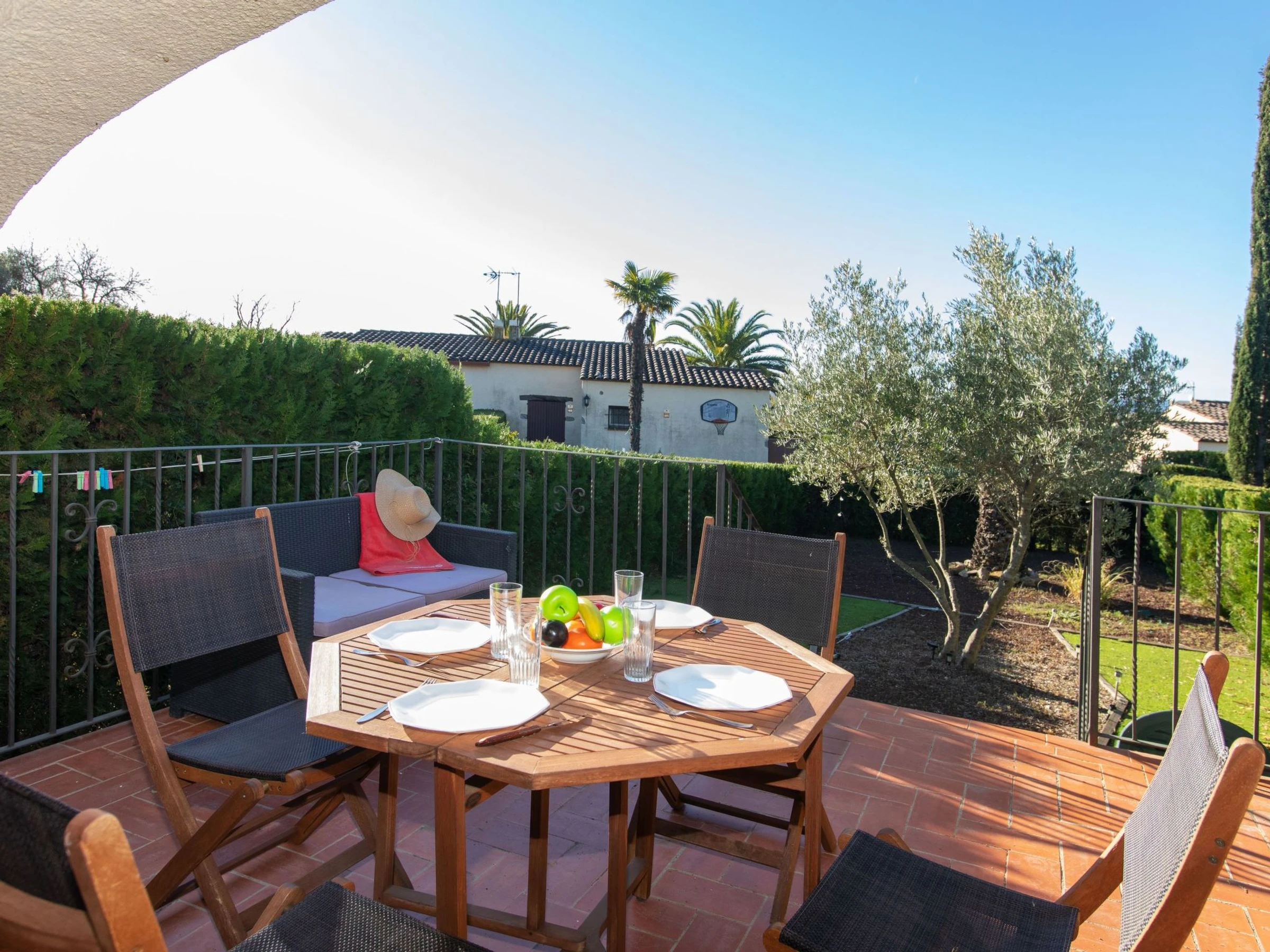 URB. TORRA GRAN: **Les clés doivent être récupérées à notre bureau de Ronda del Pedró,[hidden] L'Escala** maison mitoyenne "Les Palmeres". En bordure de la localité, à 4 km du centre de L'Estartit, situation tranquille, ensoleillée, à 4 km de la mer, à 4 km de la plage. En commun: piscine (25 x 12 m, profondeur 120 - 180 cm, disponibilité saisonnière: [hidden] - [hidden] Piscine de forme irrégulière. A usage privé: jardin sur plusieurs niveaux avec plantes et arbres, place de parking près de la maison. Supermarché 200 m, restaurant 1.3 km, arrêt de bus 4.6 km, plage de sable "Platja de L'Estartit" 4 km, centre de plongée 4.2 km. Port plaisance 3.4 km, ecole de voile 3.4 km, tennis 1.3 km, centre équestre 4.5 km. Attractions à proximité: Ruinas greco-romanas d'Empùries 18 km, Pitch and Putt Gualta -18 hoyos 5.7 km, Parque acuatico Aquadiver Platja d'Aro 37 km, Aeroclub L'Estartit 4.4 km, Karting 3.7 km, Museo Dalí Figueres 41 km.