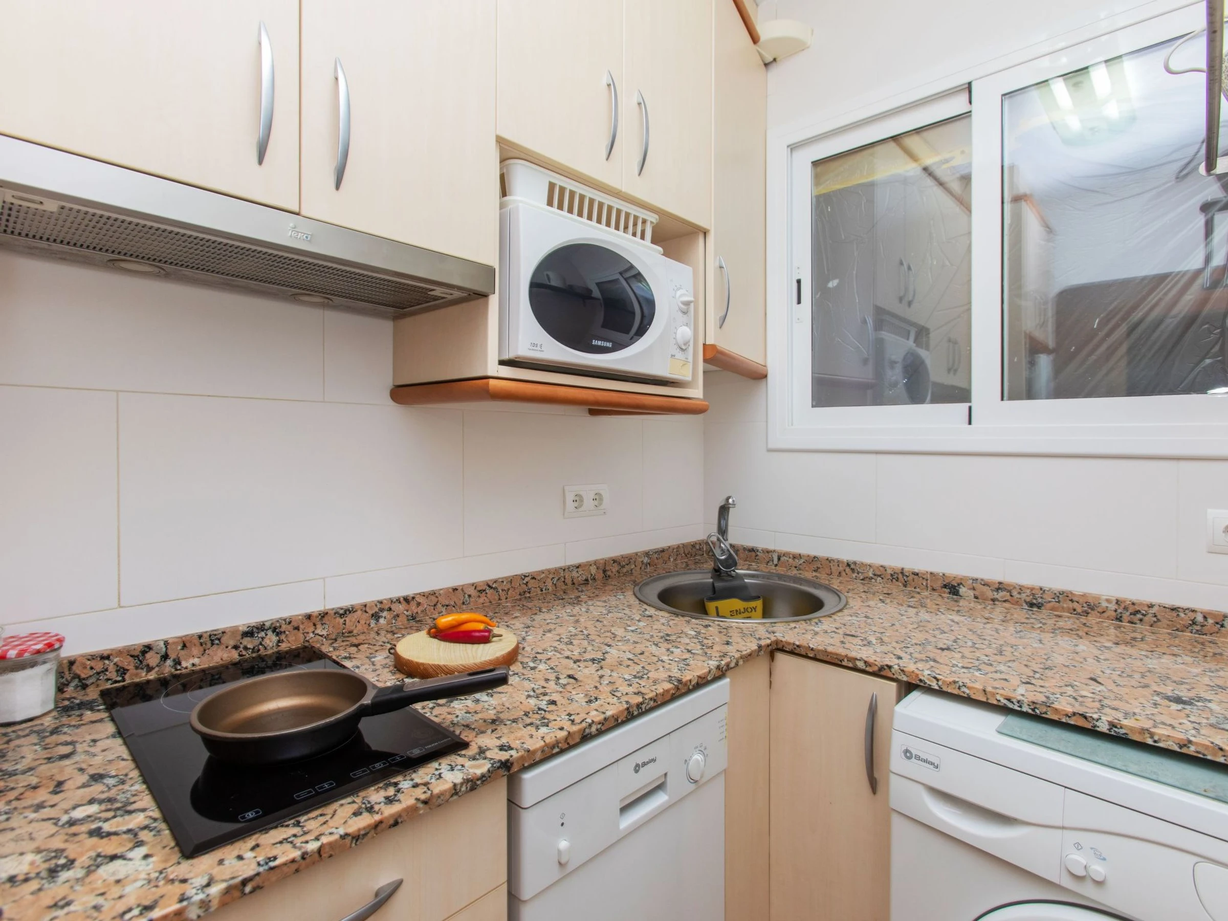 Apt 3 pièces 66 m2 au 1er étage. Clair, aménagement confortable et plaisant: séjour/salle à manger avec table pour les repas, Télévision numérique et écran plat. Sortie sur la véranda. 1 chambre avec 1 grand-lit (150 cm, longueur 190 cm). 1 chambre avec 2 lits (80 cm, longueur 180 cm). Cuisine (lave-vaisselle, 2 plaques vitrocéramiques, grille-pain, bouilloire électrique, micro-ondes, congélateur, cafetière électrique). Bain/bidet/WC. Pas de chauffage. Vue latérale sur la mer. A disposition: lave-linge, fer à repasser, sèche-cheveux. Internet (Connexion WIFI, gratuit). Veuillez noter: TV seulement ES. [hidden] // Reg. Nr.: ESFCTU000017007000469660000000000000000000[hidden]2