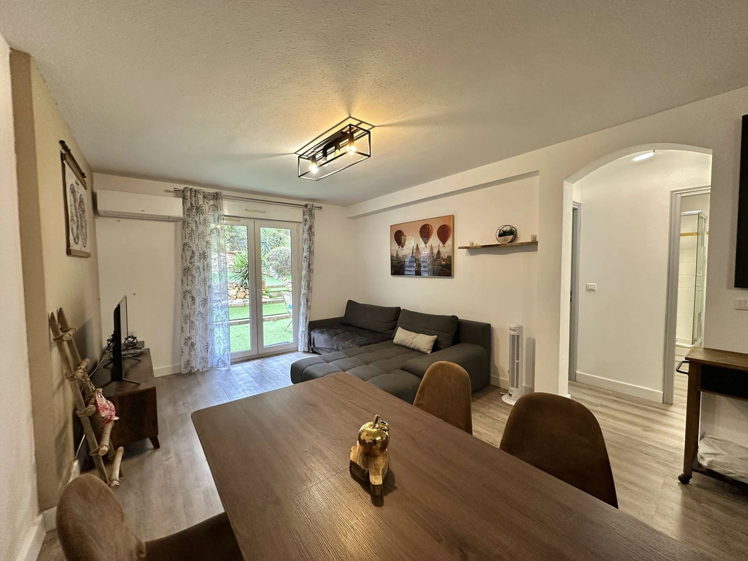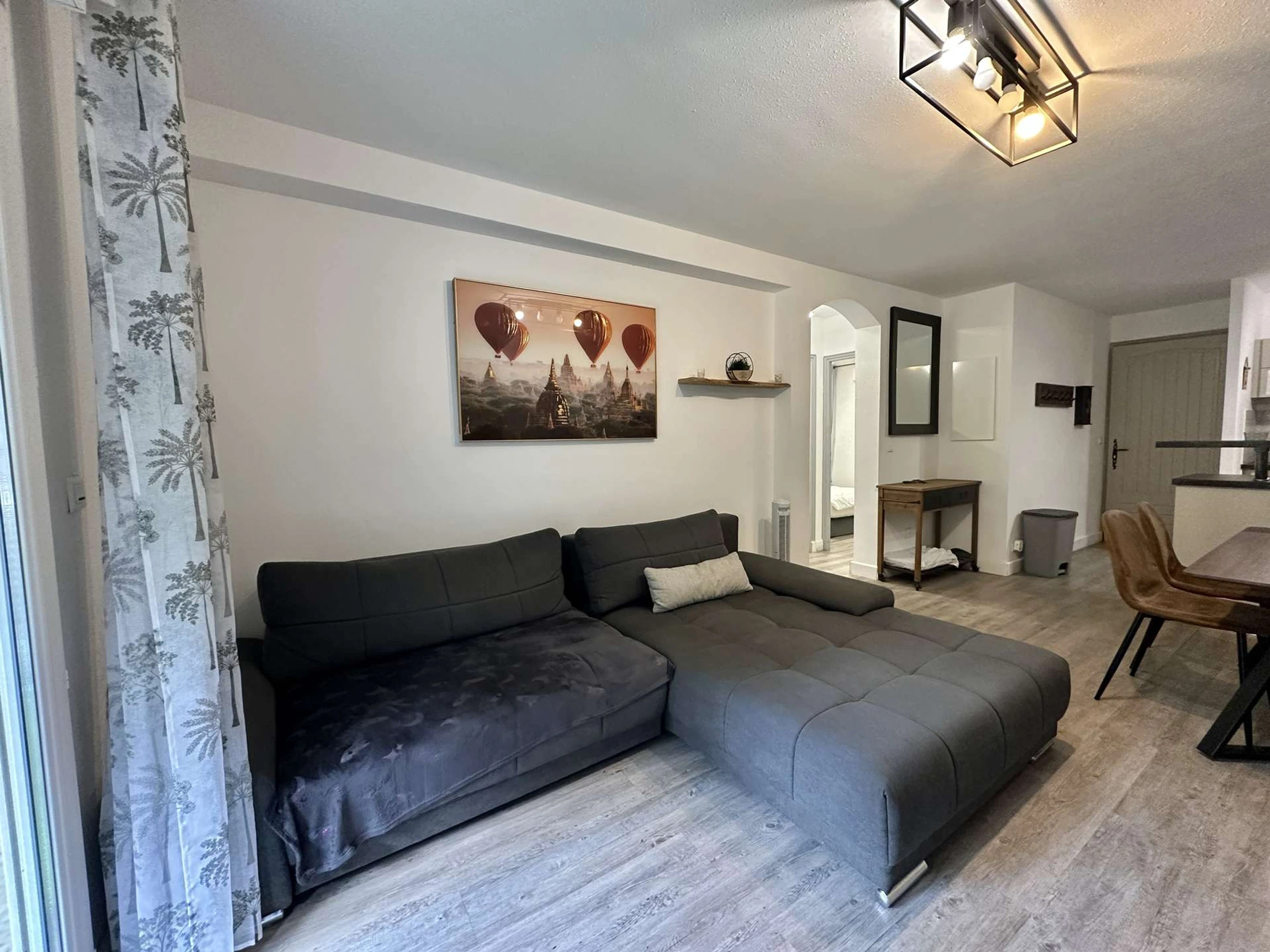 L'appartement est composée d'une cuisine équipée, d'un salon avec climatisation, d'une salle d'eau avec WC, de deux chambres avec un lit double.