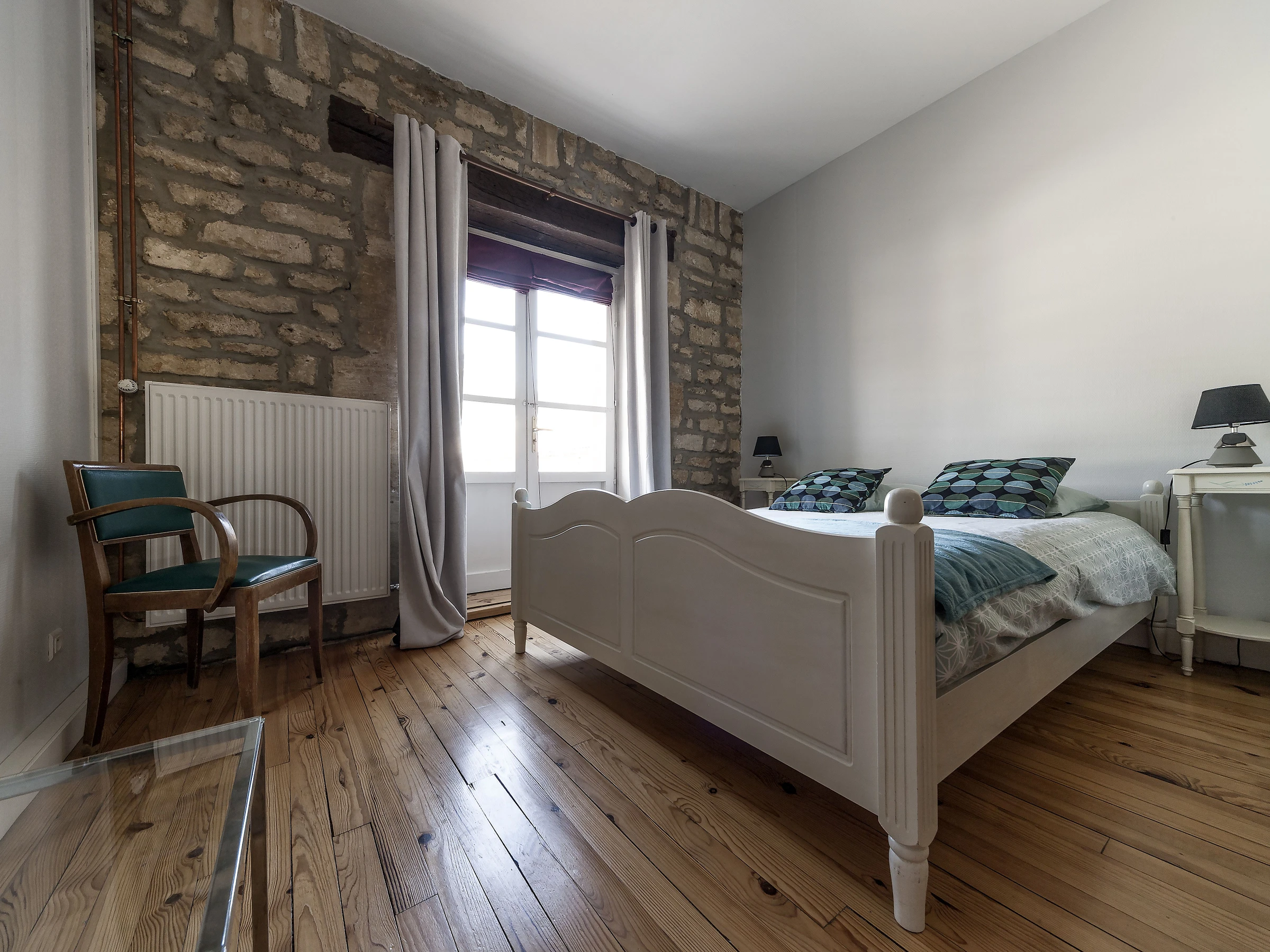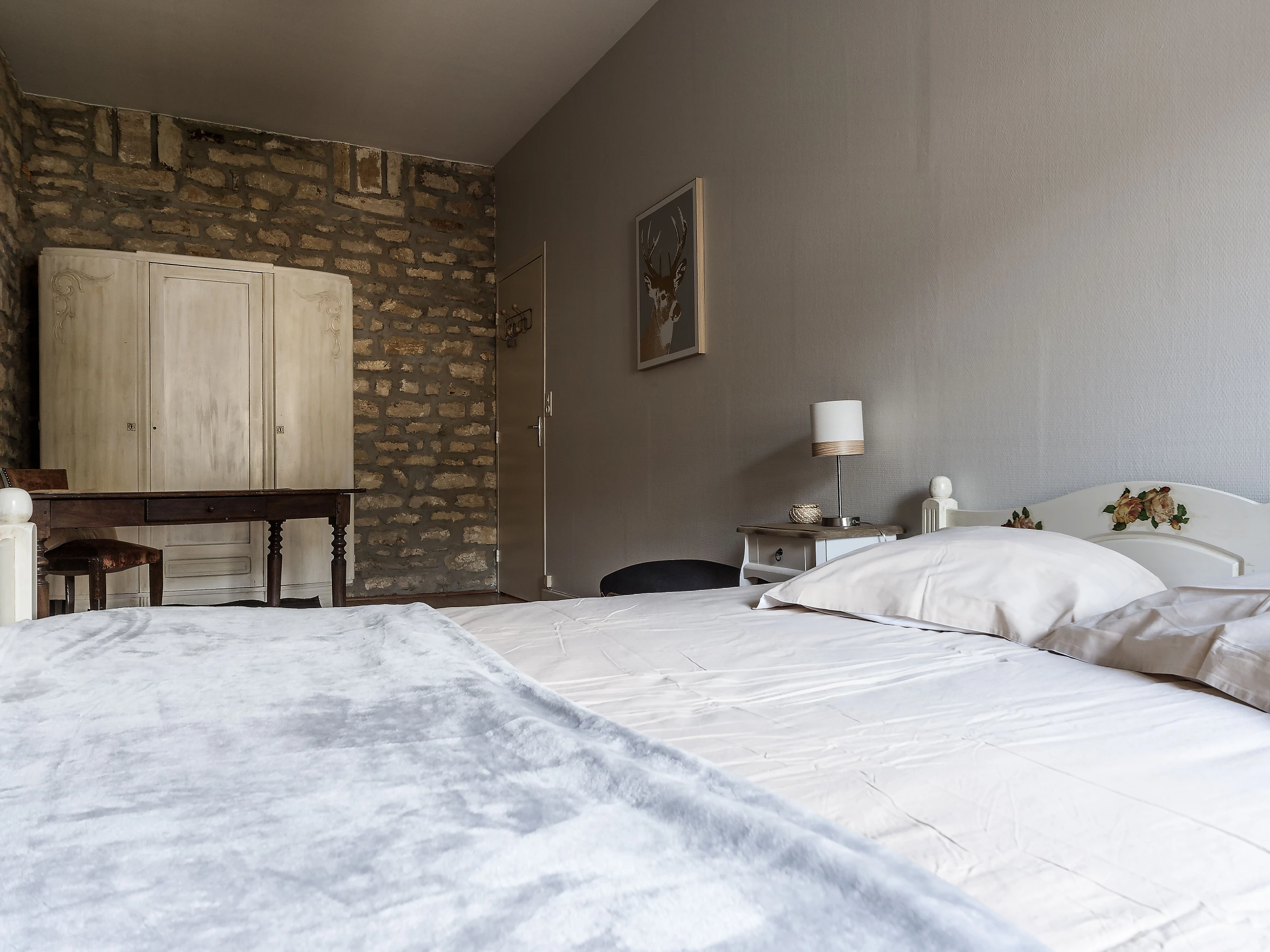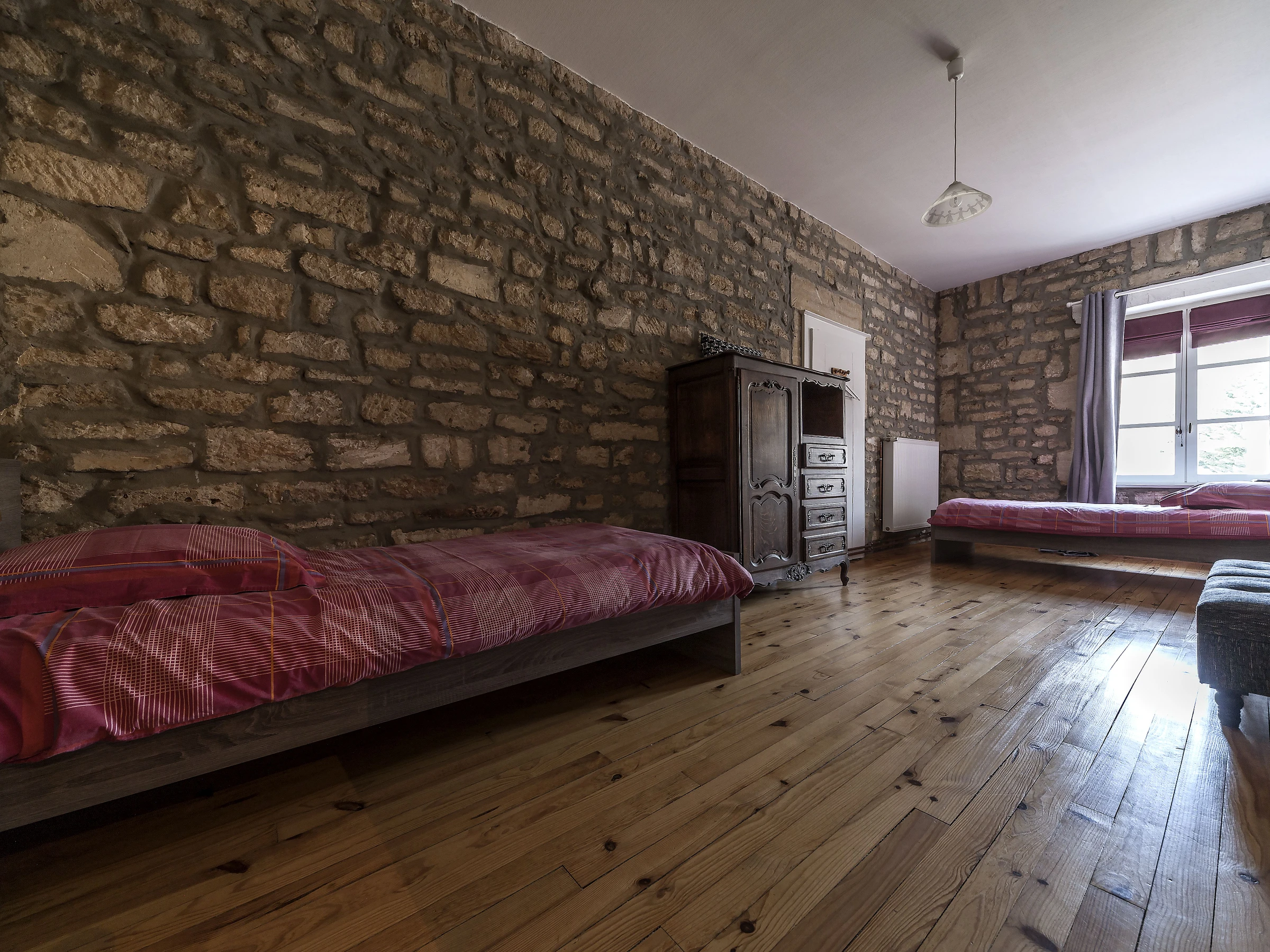 A l'étage : chambre bureau avec un lit de 160x200, chambre double avec un lit 160x200 et une chambre avec deux lits individuels de 90x190.