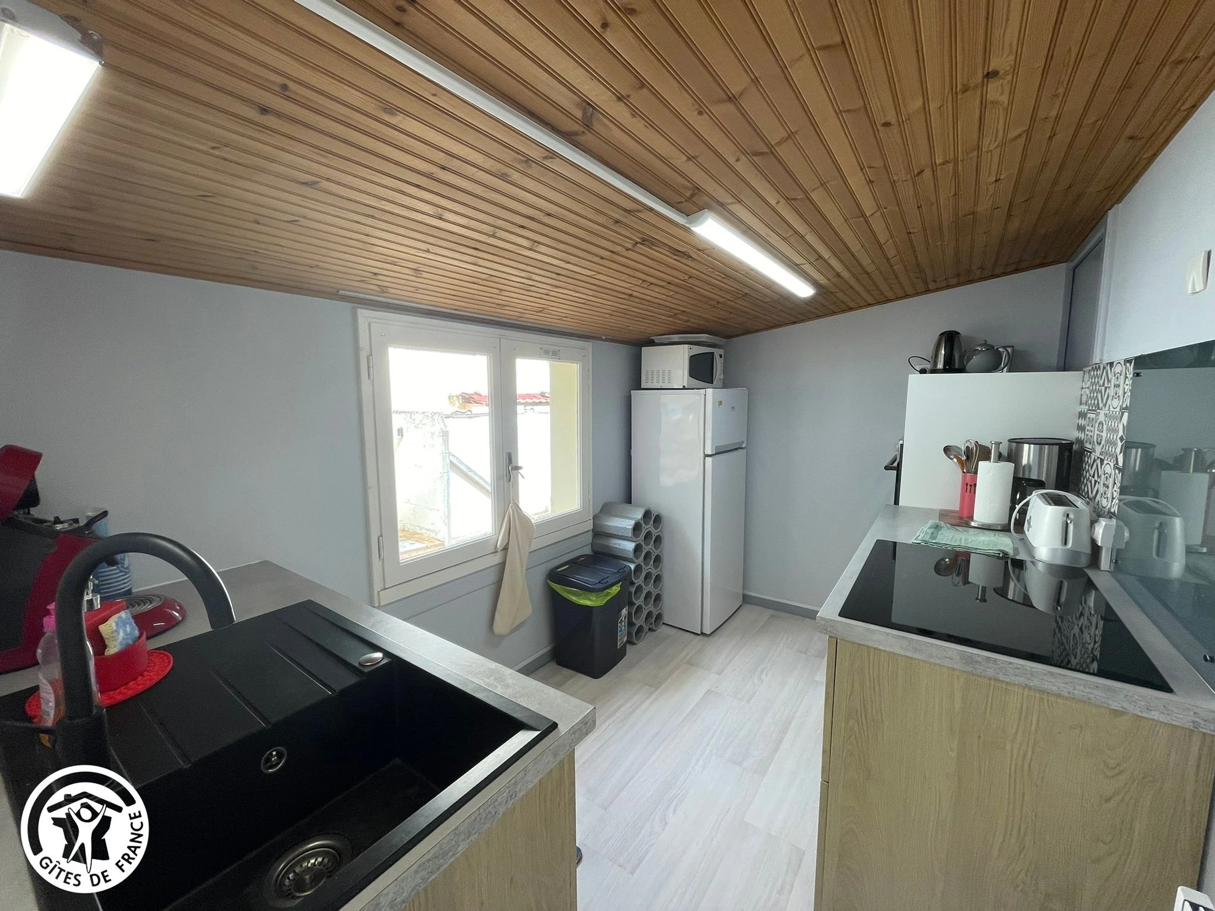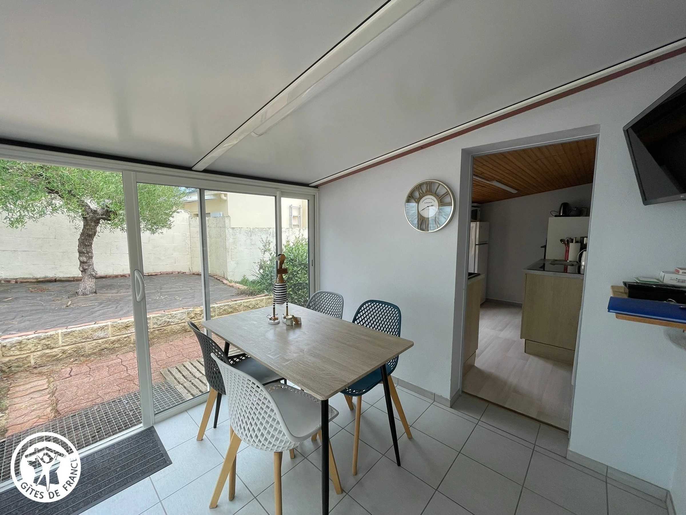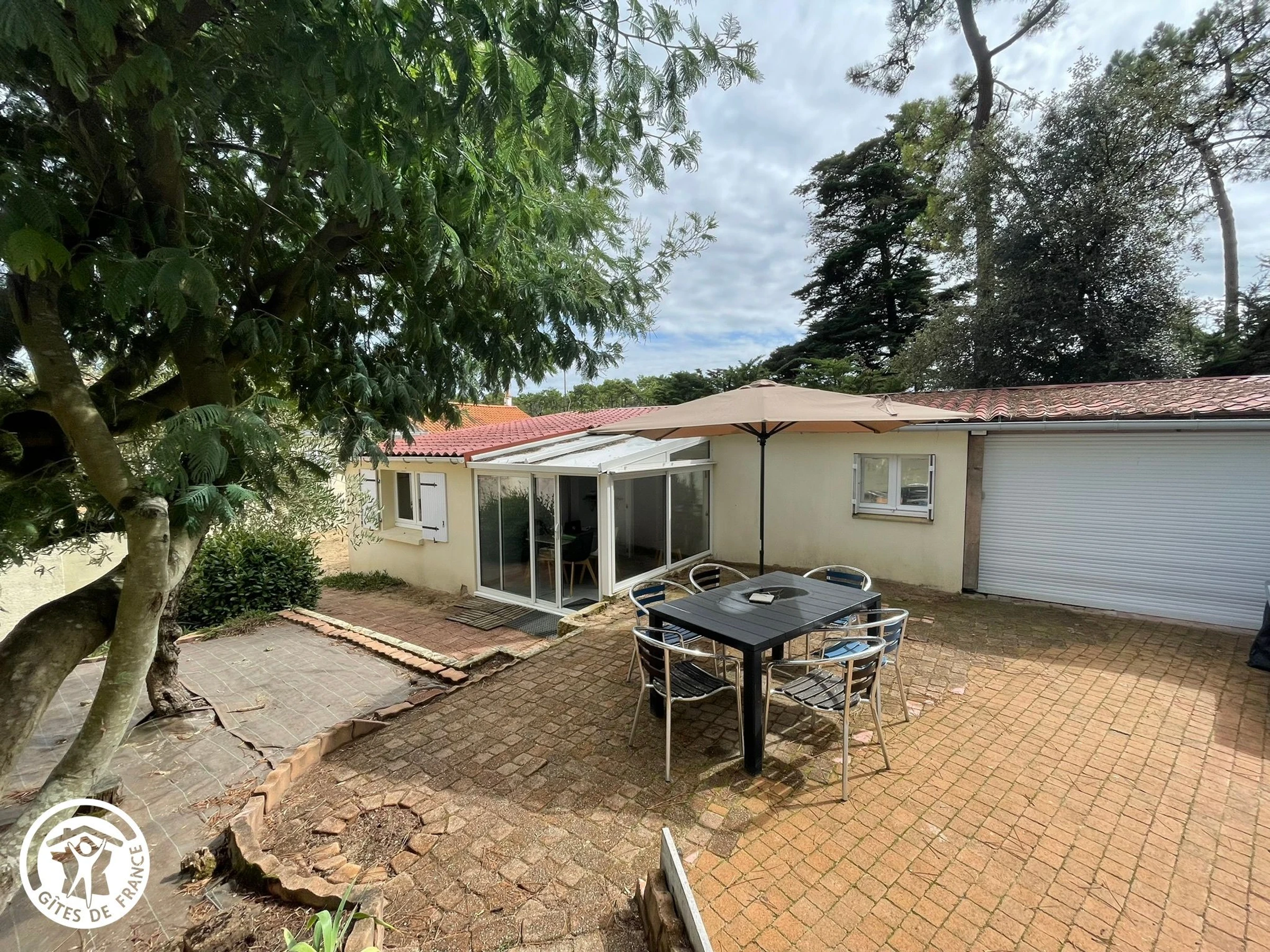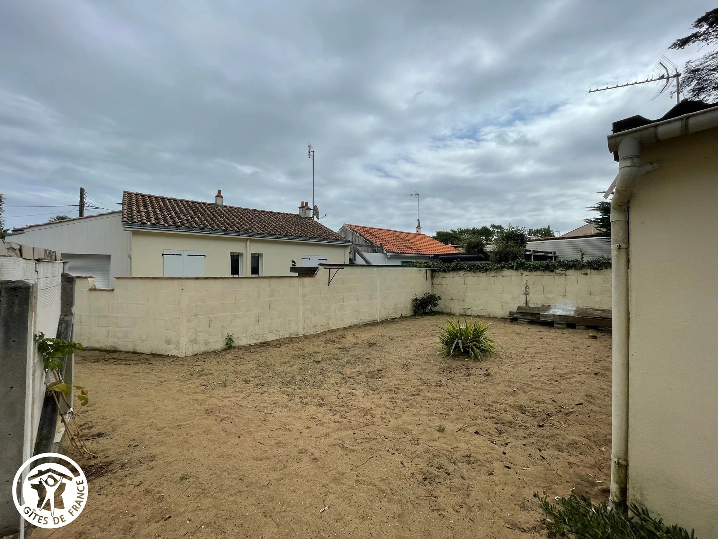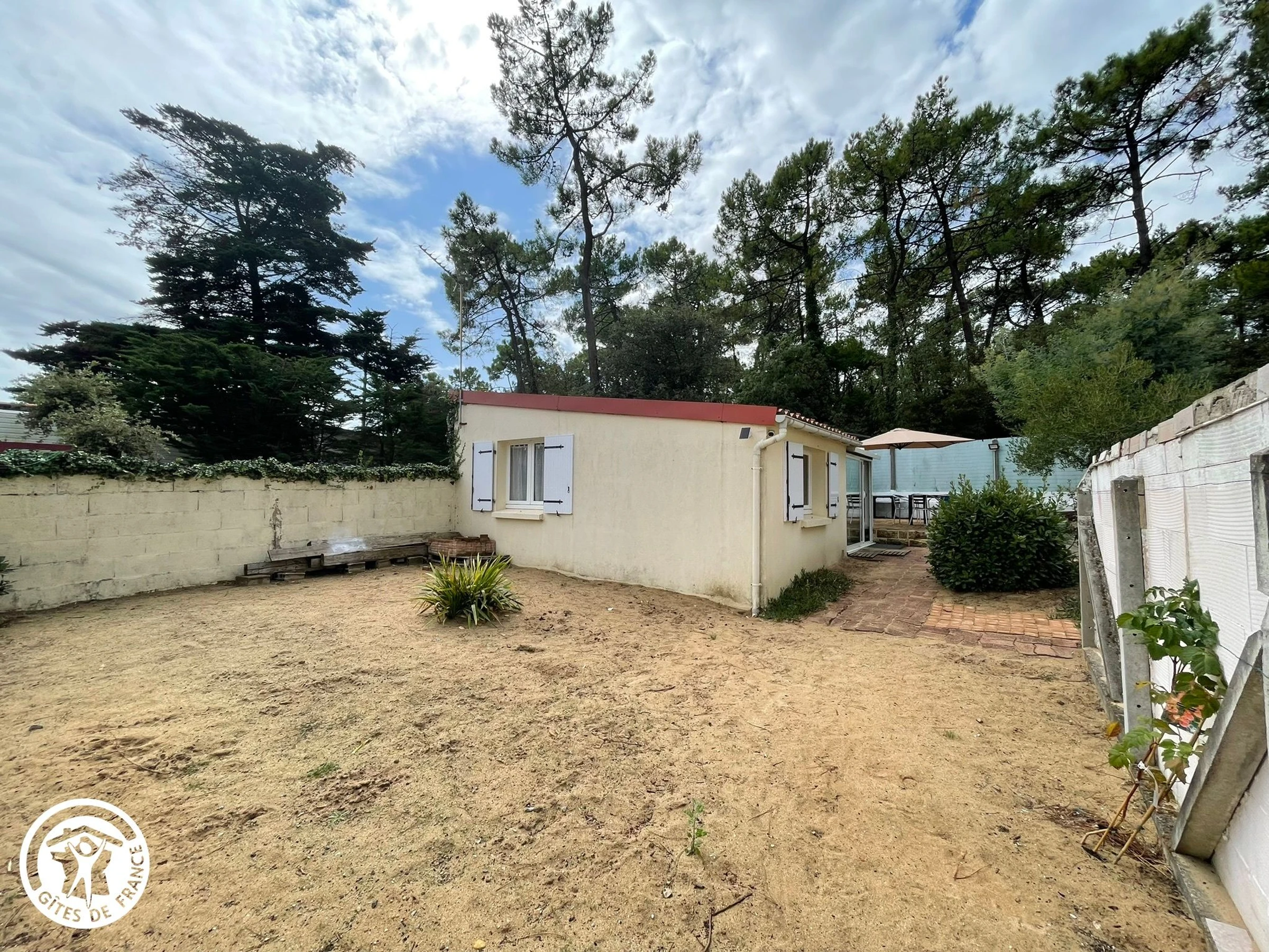 En lisière de forêt, ce gîte vous offre un séjour à 1,1 km de la plage de Fromentine. Vous profiterez d'une situation idéale pour découvrir les îles vendéennes : l'île d'Yeu (embarcadère à 1,6 km) et Noirmoutier (pont à 3,5 km). Cette maison se compose d'un séjour dans une véranda (véranda non-chauffée), d'une cuisine, d'une chambre équipée de deux lits 90 avec coin salon et TV, d'une seconde chambre équipée d'un lit 140 et d'une salle d'eau/WC. L'accès à la chambre 2 et à la salle d'eau se fait en traversant la chambre 1. A l'extérieur, vous bénéficierez d'un terrain sablonneux clos, avec terrasse accessible par 2 marches où vous trouverez un salon de jardin et une plancha électrique. Un abri fermé est également à votre disposition sur la terrasse pour le rangement de vos vélos. Le terrain dispose d'un portillon à l'arrière permettant l'accès direct à la forêt. Vous pourrez stationner votre véhicule dans l'allée menant au logement.
