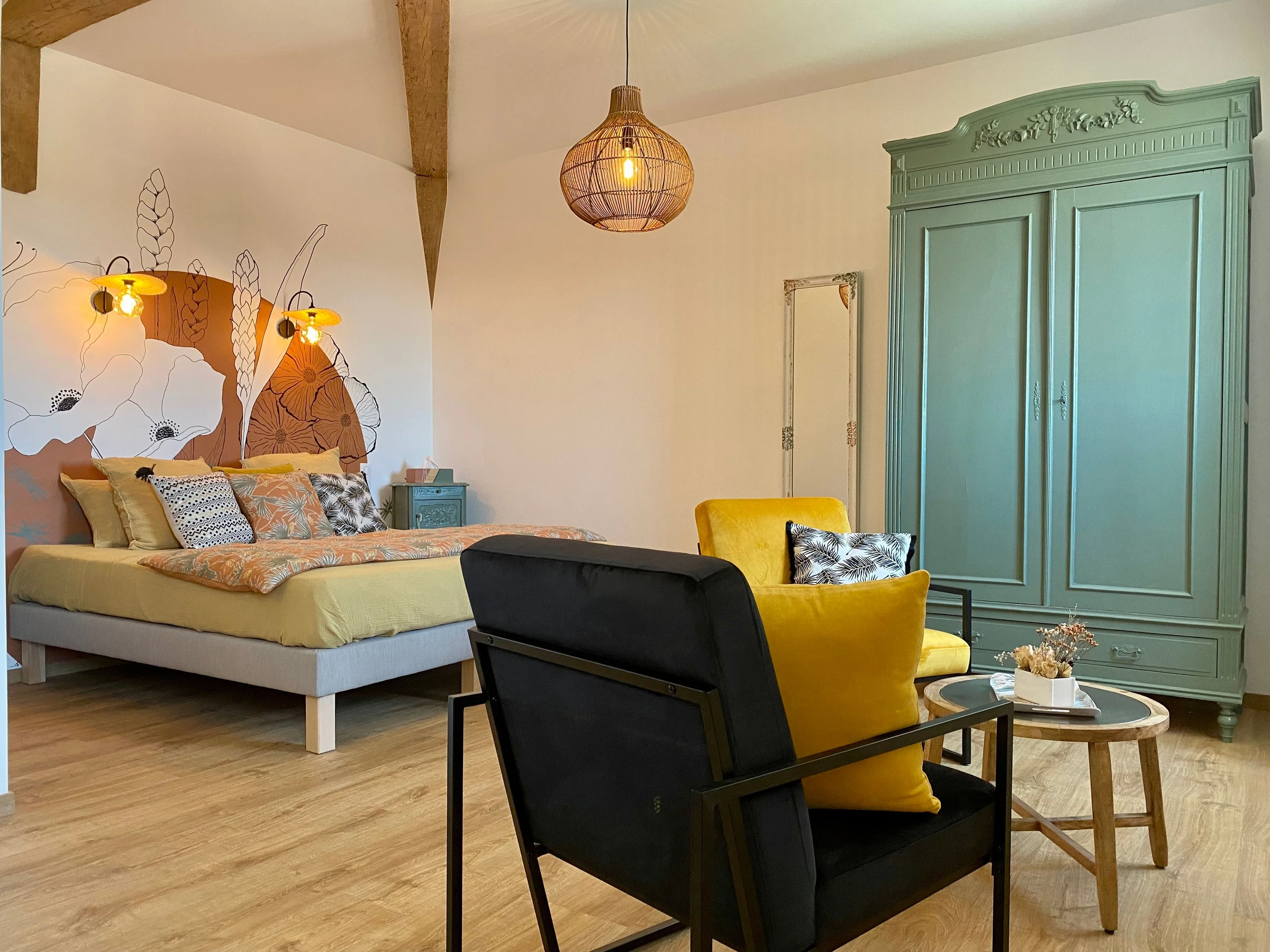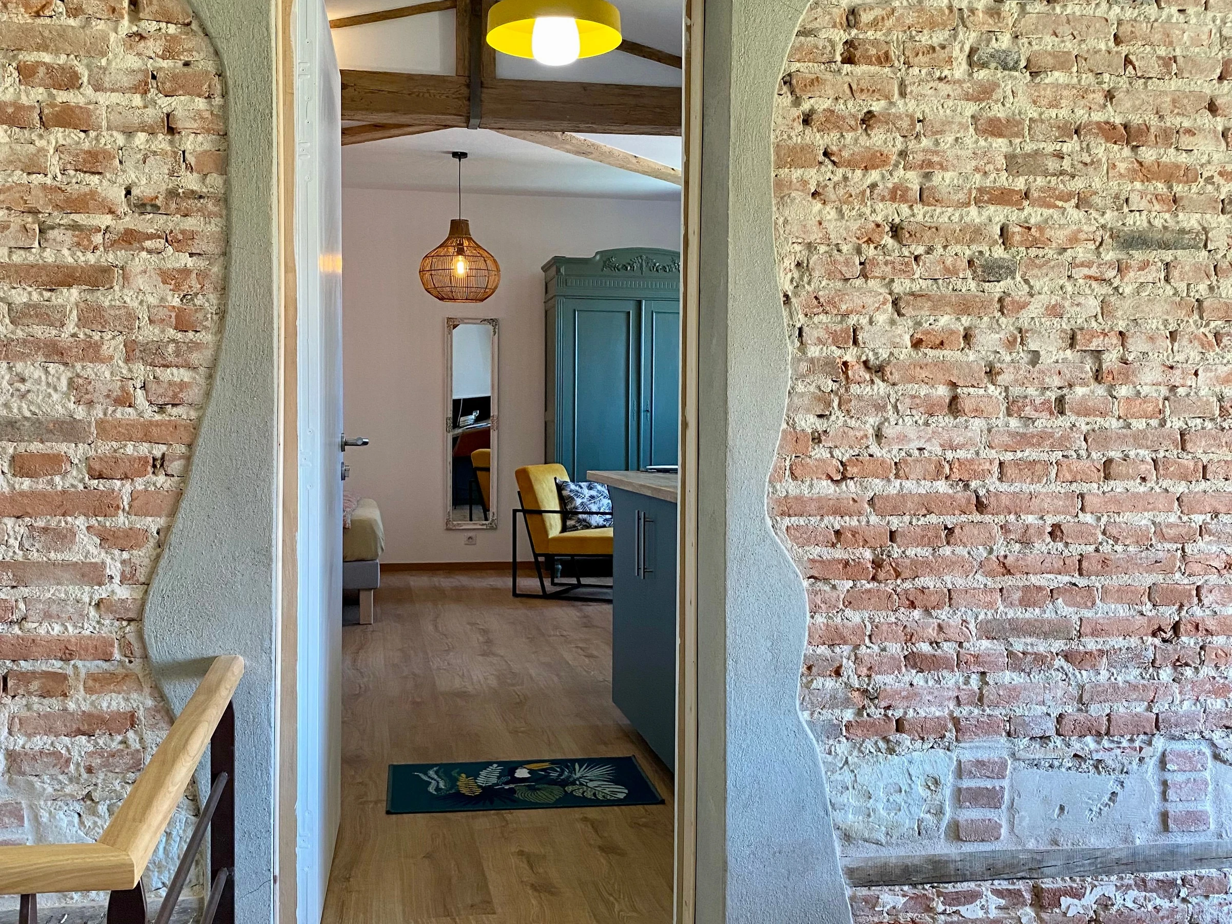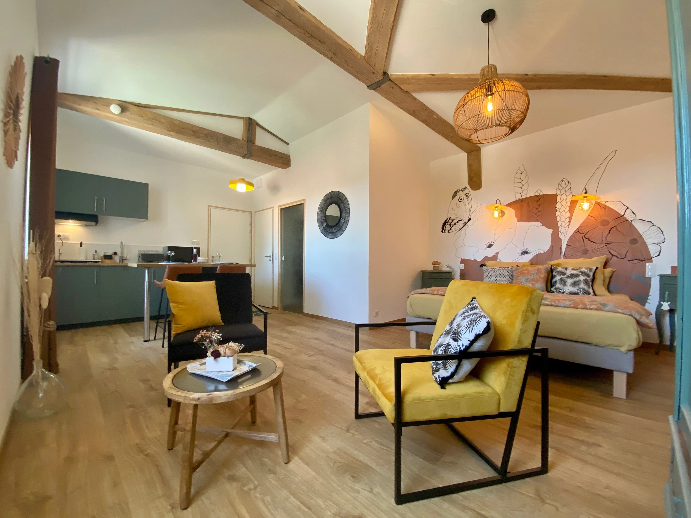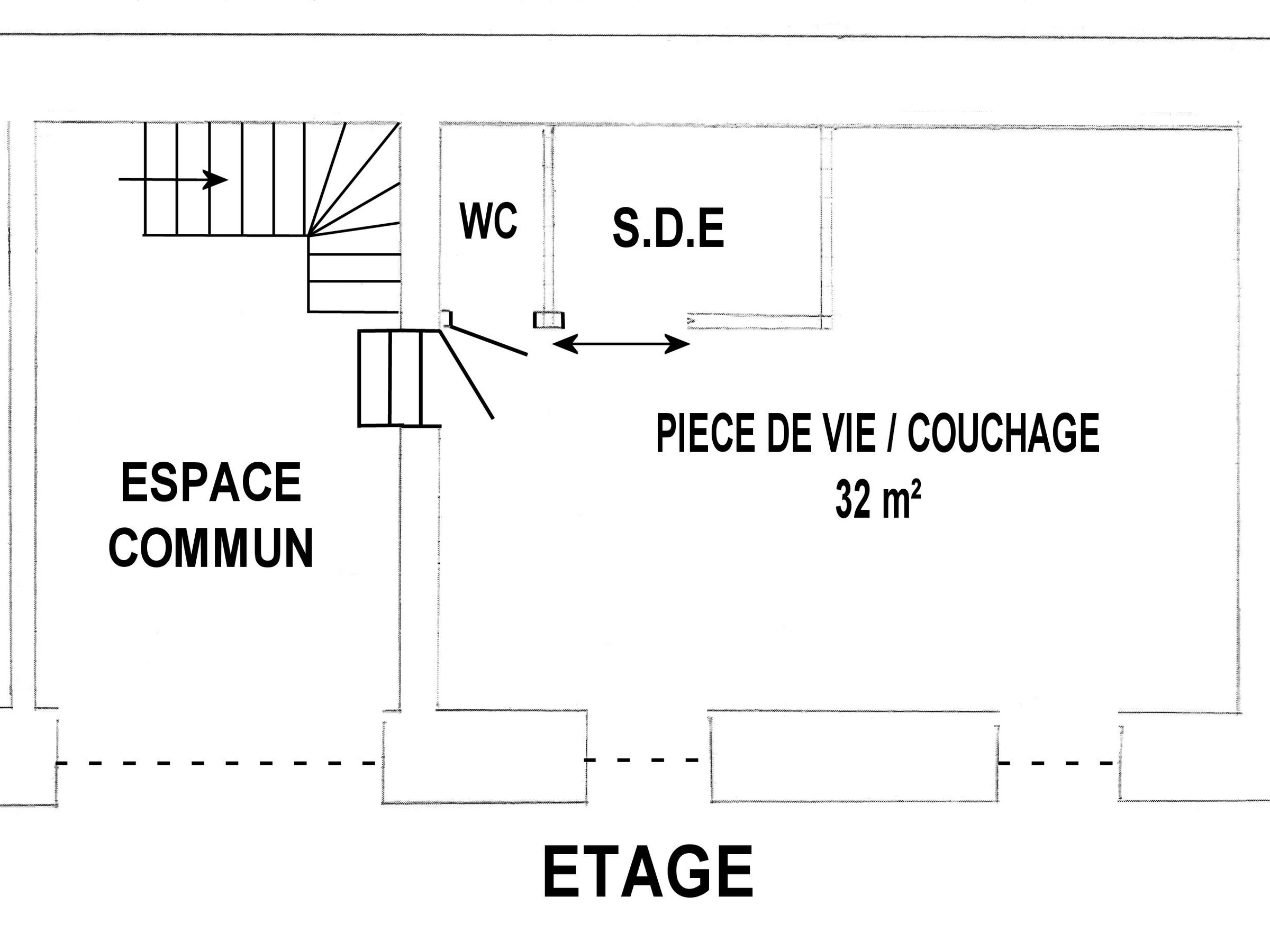 Accès au 1er étage par l'espace accueil commun : pièce de vie/cuisine avec coin nuit (lit 180x200) et coin salon, salle d'eau et WC indépendant.
