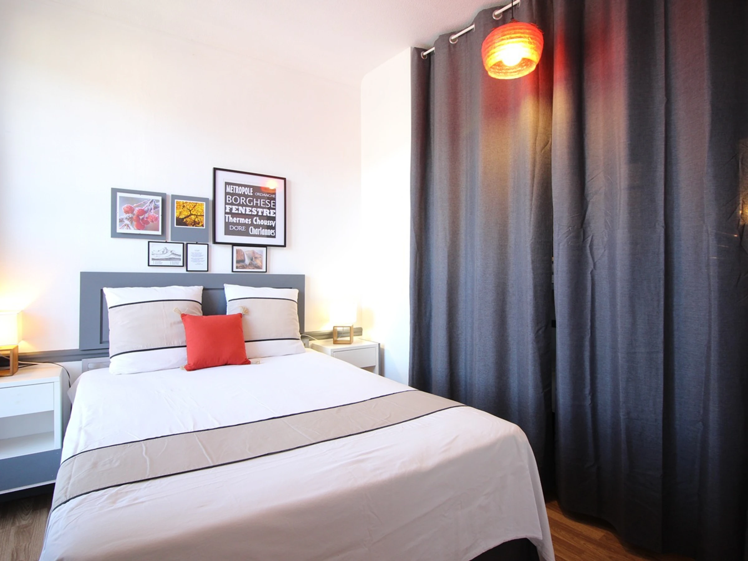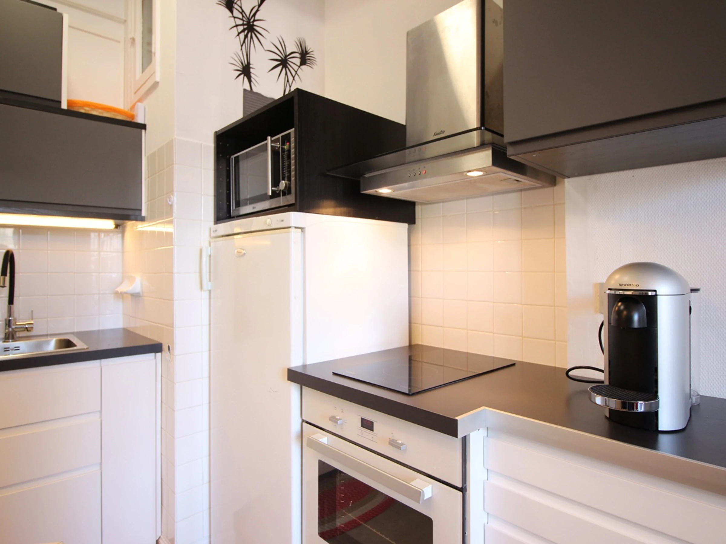 Cet appartement est composé d'une lumineuse piéce à vivre bénéficiant d'une porte fenêtre, équipée d'un convertible en couchage double type rapido,