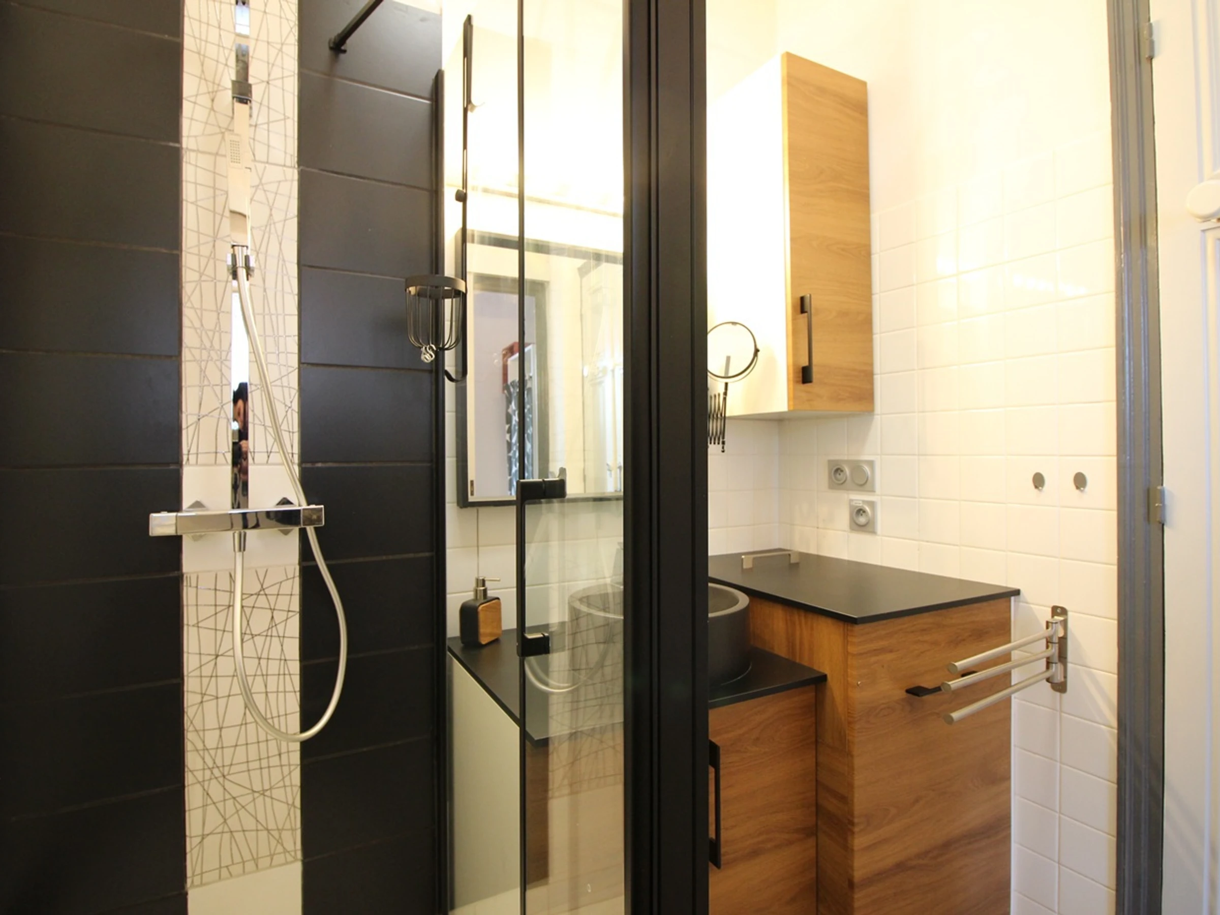 Salle d'eau (douche) avec séche-serviettes et lave-linge,