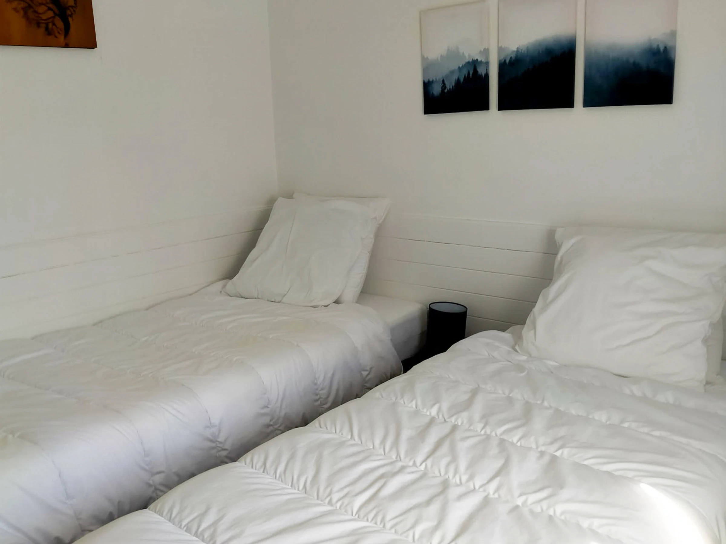 - à l'étage, un dégagement desservant une salle de bain avec wc et 3 chambres. La première équipée d'un lit en 160x200, la deuxième et la troisième de 2 lits de 90x200 chacune. Vous bénéficierez également du Wifi gratuit et d'un garage privatif, vous permettant de garer votre voiture et de stocker votre matériel de ski ou vos vélos. À l'extérieur, vous pourrez profiter de la terrasse privative de 56 m² dont l'accès se fait par la pièce de vie.