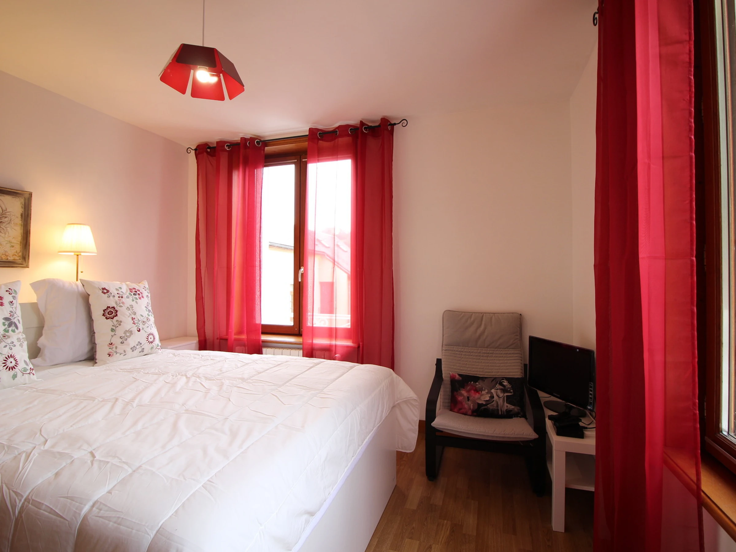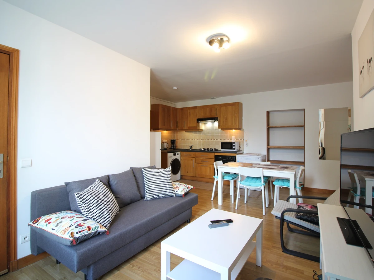 Cet appartement est composé d'une pièce à vivre avec canapé convertible, télévision, lecteur DVD ...