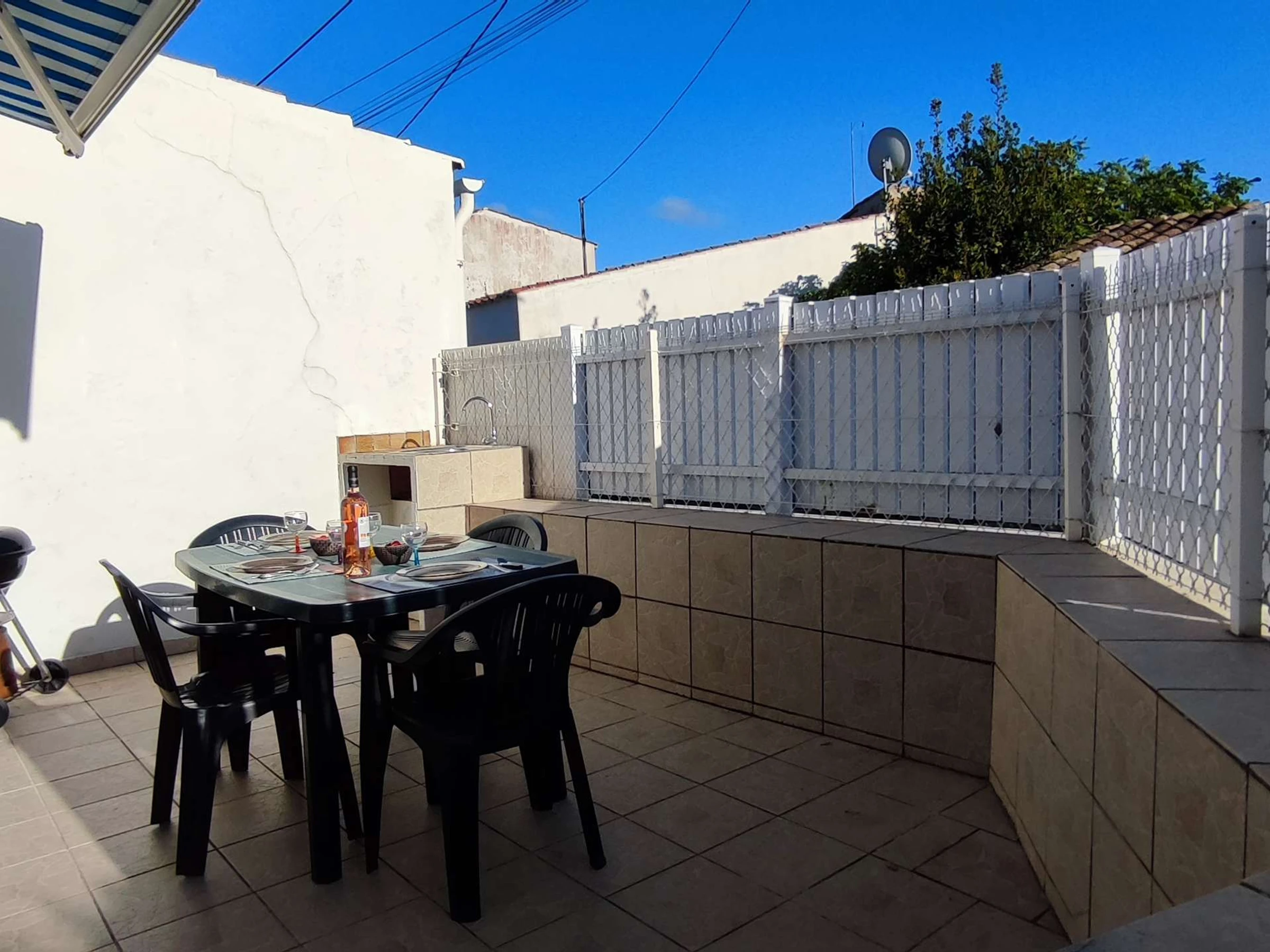 Petite maison située dans le centre bourg de la Brée-les-bains se composant d’une pièce de vie avec coin cuisine équipé et aménagé, d’une première chambre traversante trois couchages avec un lit superposé (90) et un BZ (140), d’une seconde chambre avec deux couchages (160), d’un cellier avec lave-linge, d’une salle d’eau avec douche cabine, WC indépendant. En extérieur, petite cour avec mobilier de jardin, store, évier. Stationnement à 300m de la maison.