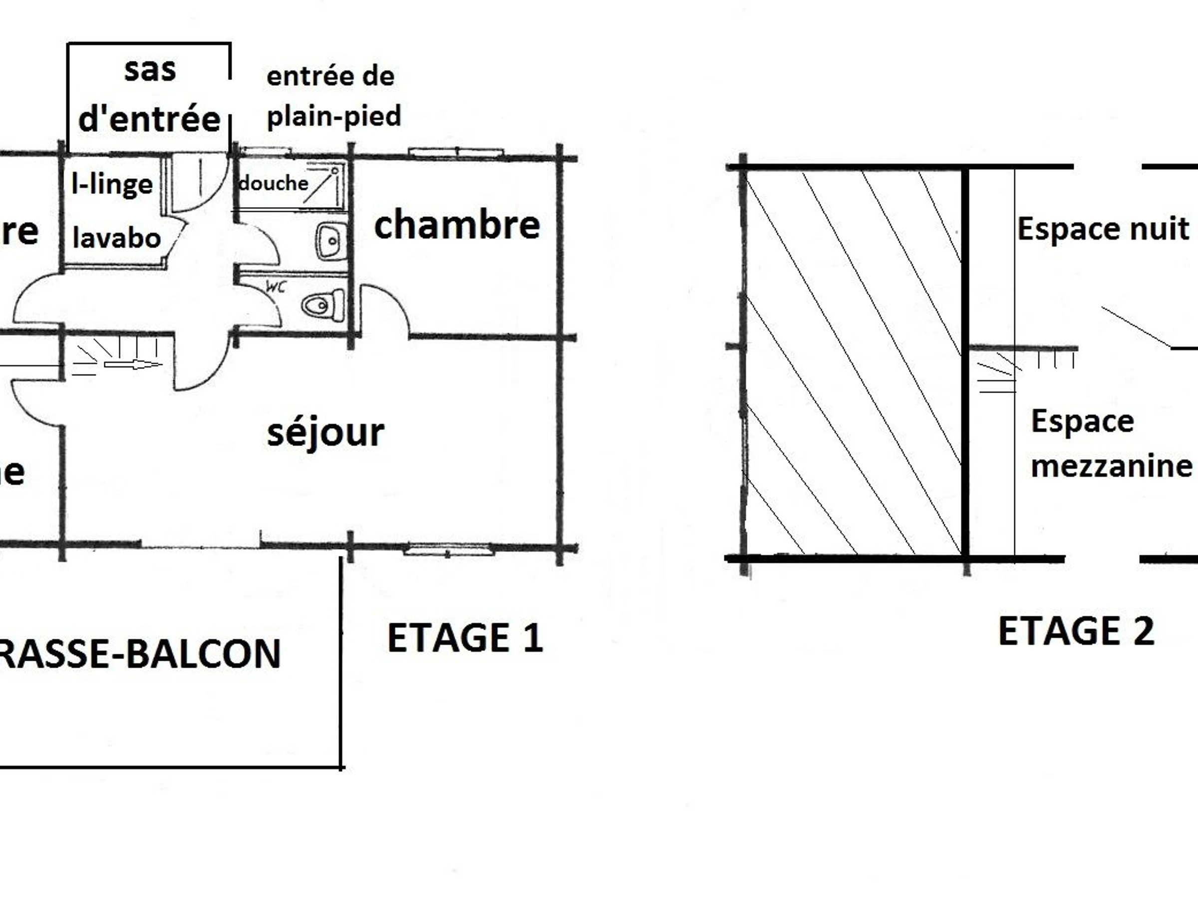 2 chambres (1 lits 2 pers.). 1 chambre (1 lit 1 personne) et mezzanine coin-détente (fauteuils et table basse).